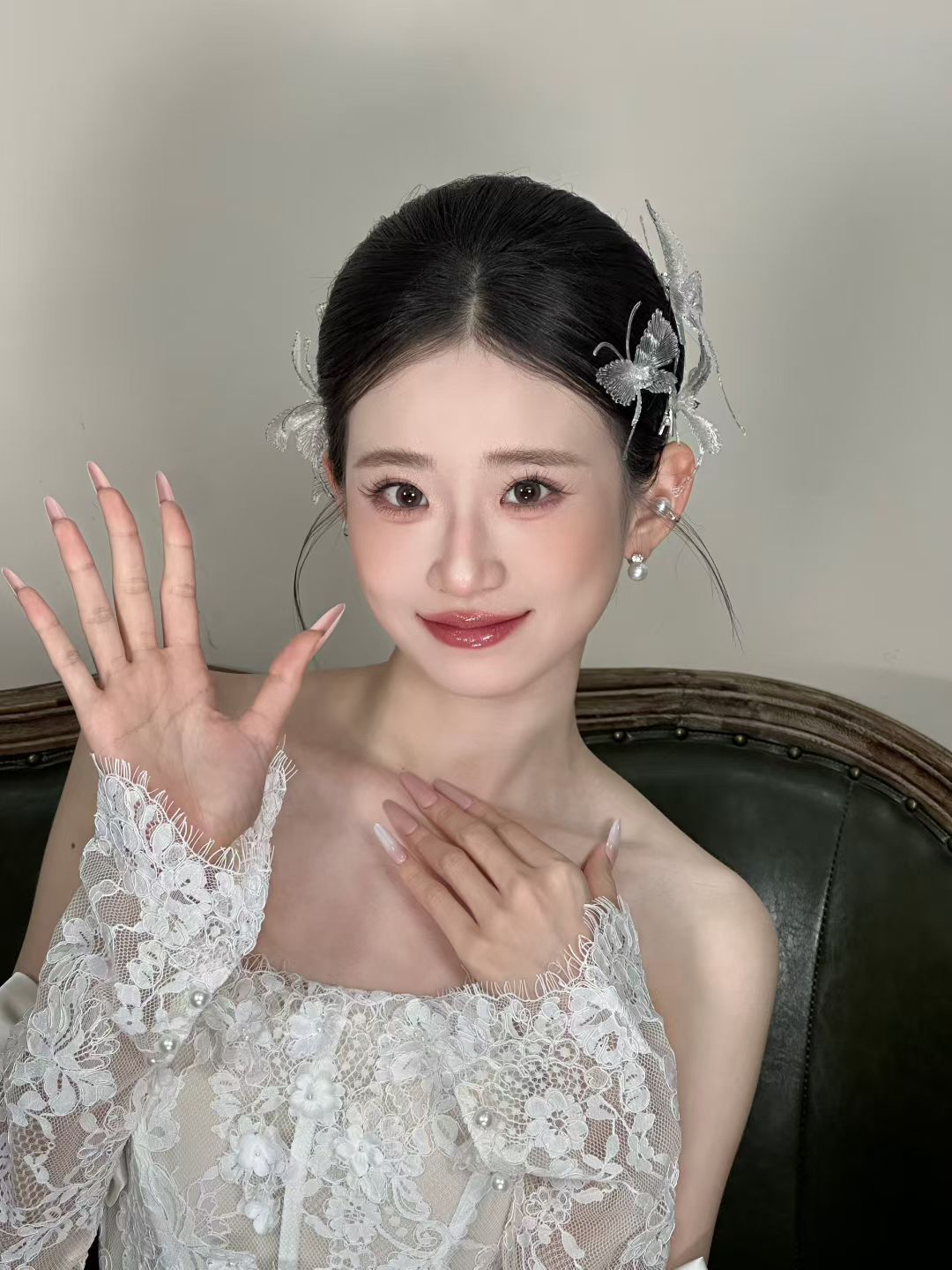 “我的跟妆师简直是宝藏!试妆时耐心调整细节,连我在意的泪沟都遮得很完美,腮红和高光打得特别自然,显得皮肤通透有光泽。婚礼当天换了三套造型,每套妆容都很惊艳,而且全程帮我补妆、整理发型,让我安心做最美的新娘!