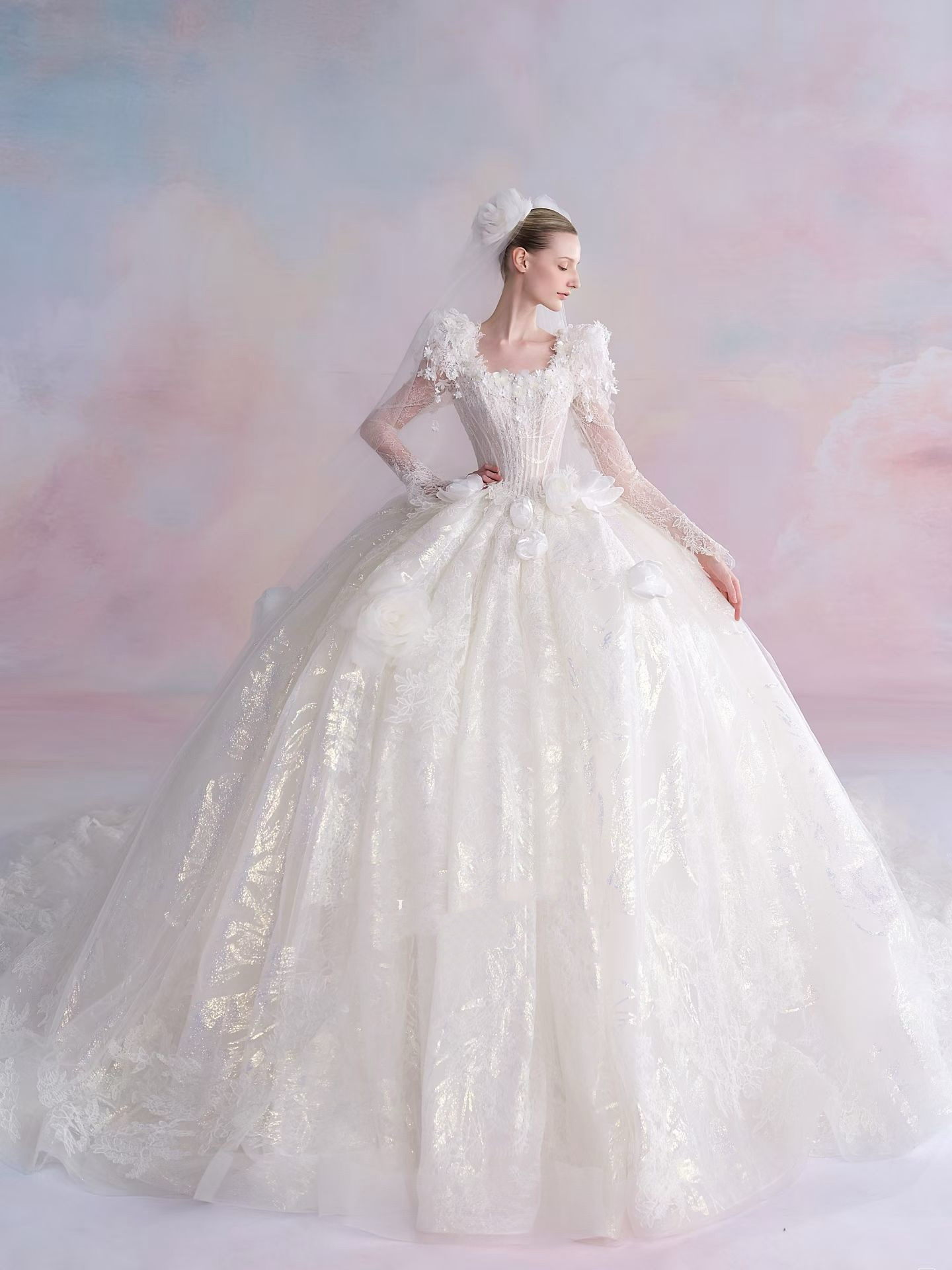 “今天终于穿上了梦想中的婚纱,站在镜前的那一刻,连自己都有些恍惚——层叠的轻纱如月光织就的云朵,细腻的蕾丝沿着腰线蔓生出精致的花枝,恰到好处的剪裁让整个人都在发光。不得不夸赞这家婚纱店的礼服,每一处细节都藏着温柔的心意,仿佛它们不是被制作出来,而是为了见证重要时刻而自然生长的。谢谢你们,让我遇见了最美的自己。