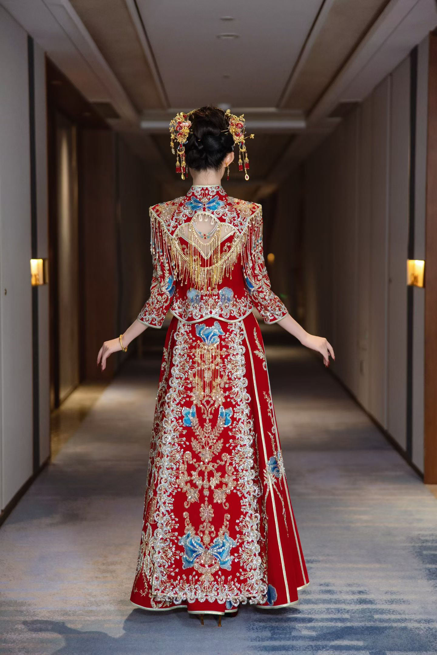 “真的被这套国泰民安的婚服给惊艳到了,中式婚礼独有的气场和魅力,凤冠霞帔,城墙鼓楼。红蓝配色更加明艳高级,华丽凤冠,浓郁色彩交织出东方气质,刺绣长拖尾勾勒出华美风尚,三书六礼,凤冠霞帔,体验一场沉沦世纪的东方文化。