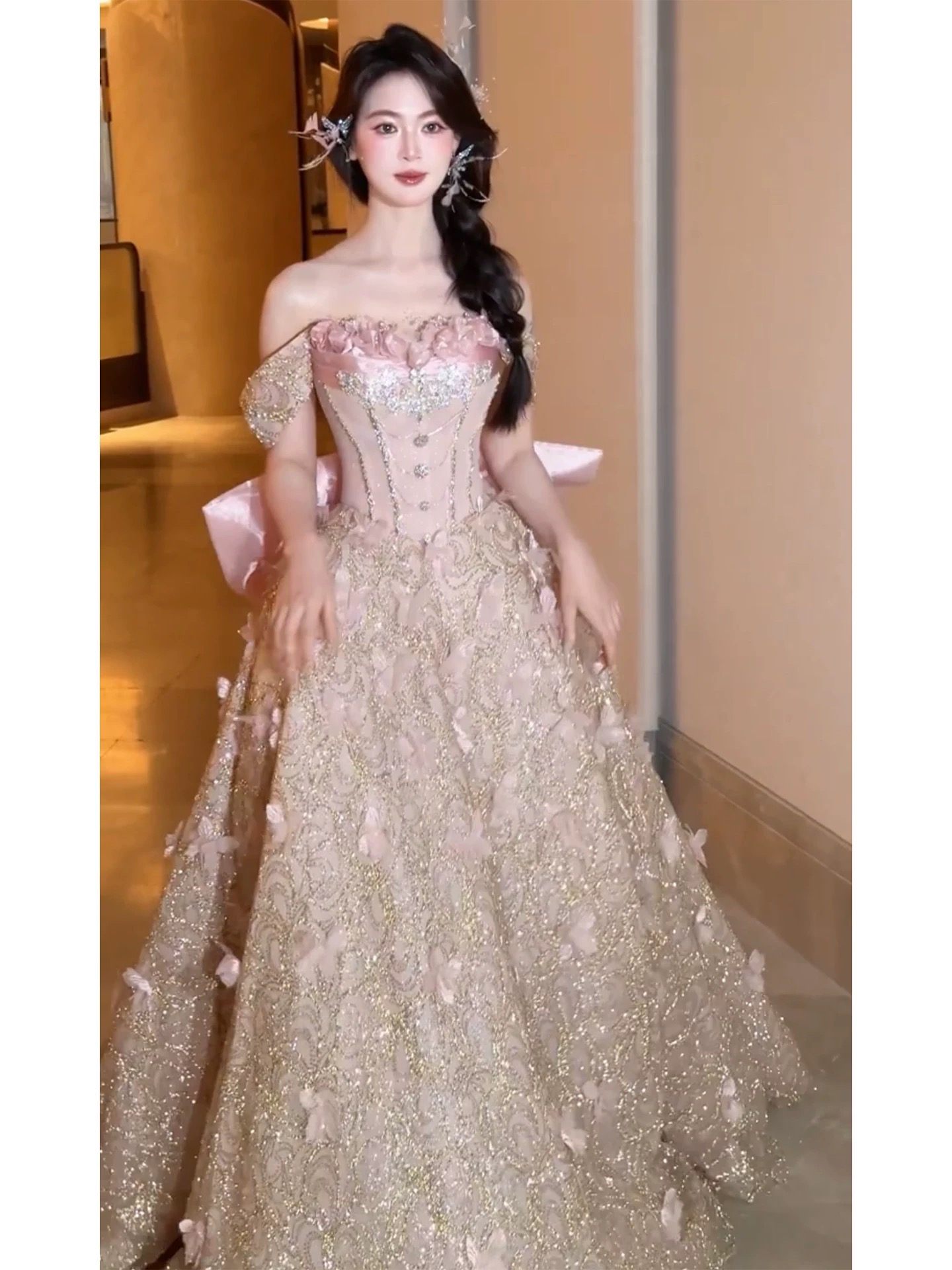 “穿上它,仿佛把星辰与温柔都披在了身上✨。婚礼当天每一步都像走在梦里,轻盈又闪耀👰♀️💍。剪裁贴合、细节精致,亲友纷纷夸赞气质满分🌟。如今回忆仍心动不已,感谢它见证我们最美的开始❤️。值得珍藏一生的浪漫!