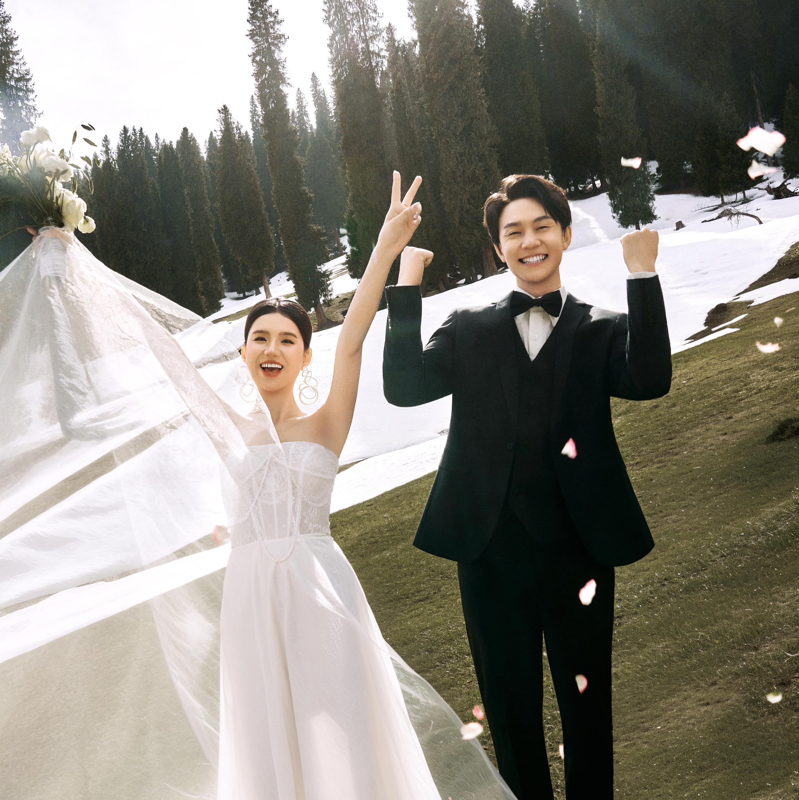 “这是一对颜值很高,很好沟通的客人,希望他们百年好合,早生贵子,感谢他们的信任与支持。
