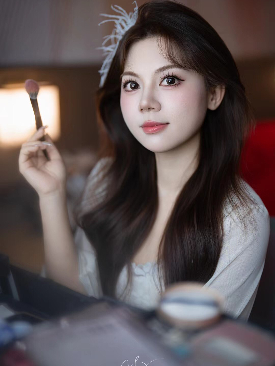 “很感谢化妆师小姐姐把我化得这么美☺️,家人朋友都说好看呢