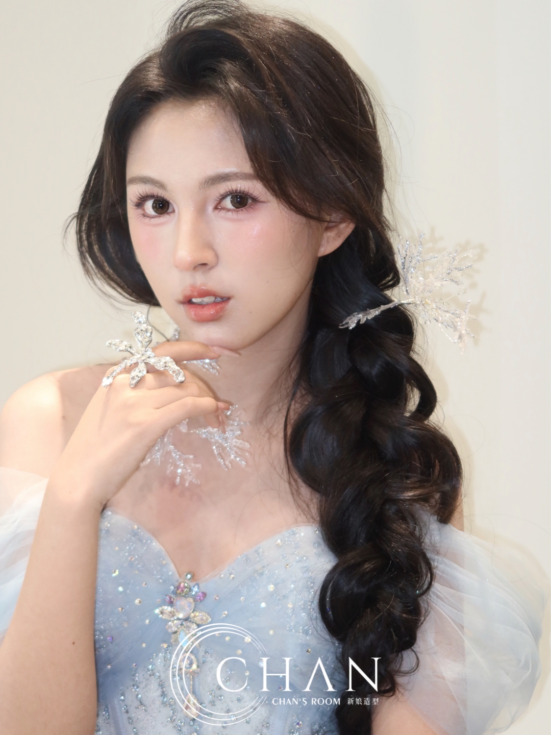 “化妆师超有心机,底妆好贴,眼妆很精致,服务体验感都拉满啦。头饰方面也搭配得很好,很有眼光!