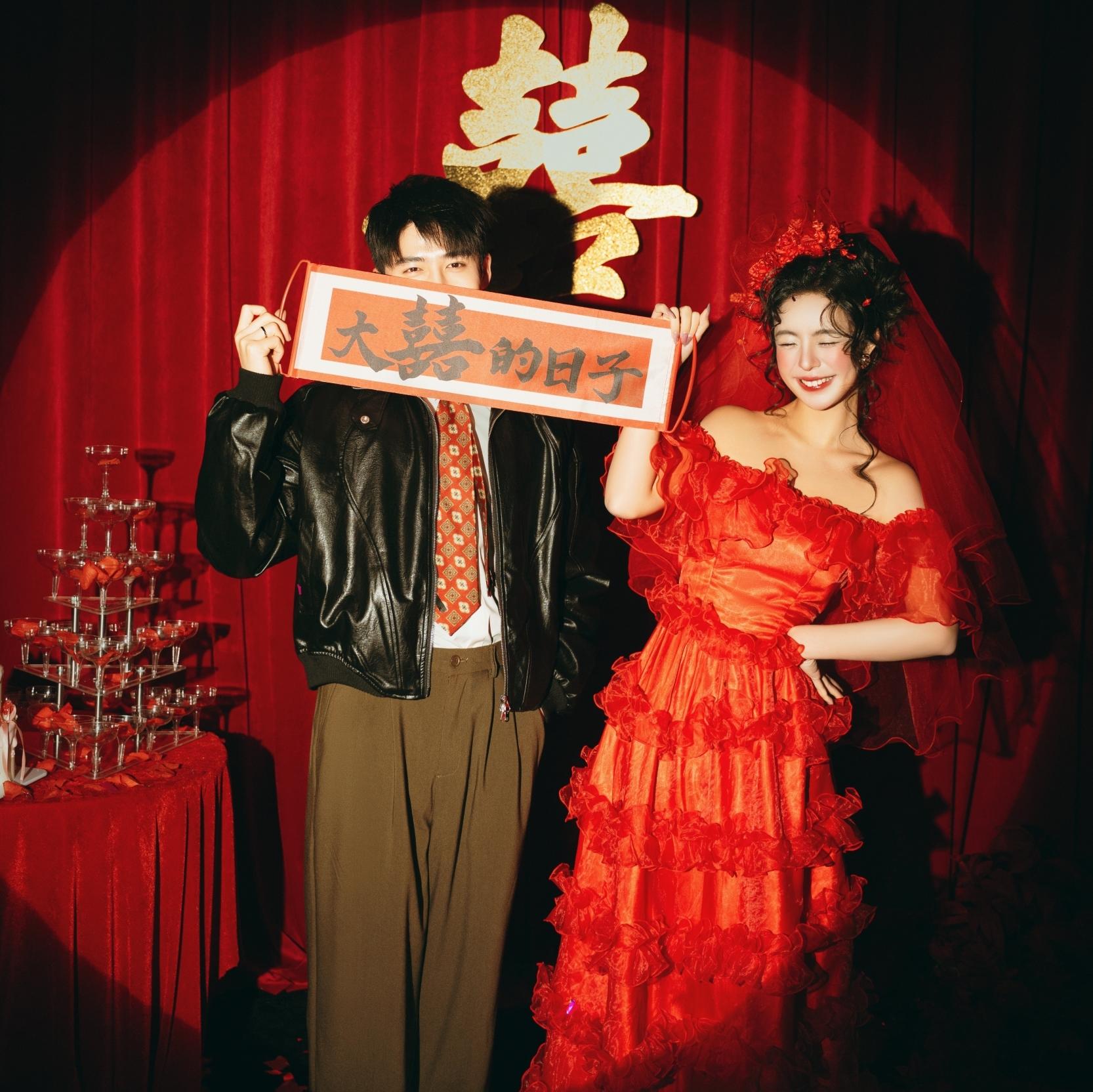 “我们结婚了!第一时间 把婚照给 拍摄了, 得效果很 喜欢,拍 摄前一直都有关注他们家,很喜欢这里得拍摄风格,挺独特得,摄影师技术很好,整个婚照服务都很棒,很给力。