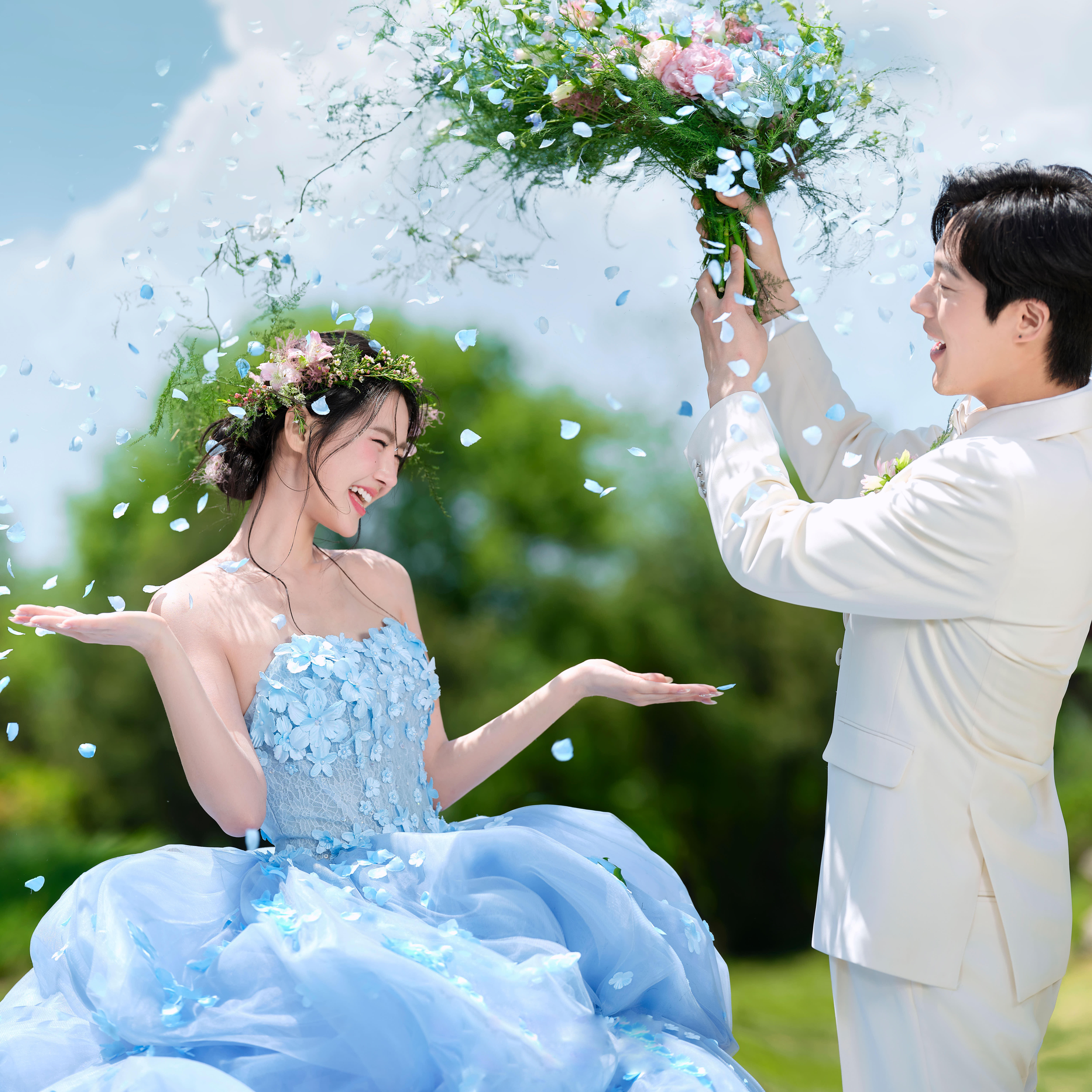 “经过精心挑选,我们决定前往这里拍摄婚纱照,拍摄前一天,就构建了一个群,交代了各种注意事项。化妆师小姐姐的技术很好,他们会根据我们的脸型、肤质以及所选衣服,进行令人惊叹的效果。而且,我们也可以提出自己的想法,他们都会给出宝贵的建议。另外,他们也会一直跟随,不时补妆,特别是穿着高跟鞋的时候,他们会轻轻的搀扶我们,让我们不容易摔倒。摄影师也是超耐心的,他们会听取我们的想法,逗我们开心,捕捉自然的微笑和面部表情。总之,我们度过了一个紧凑而又充实的一天,既累又快乐!