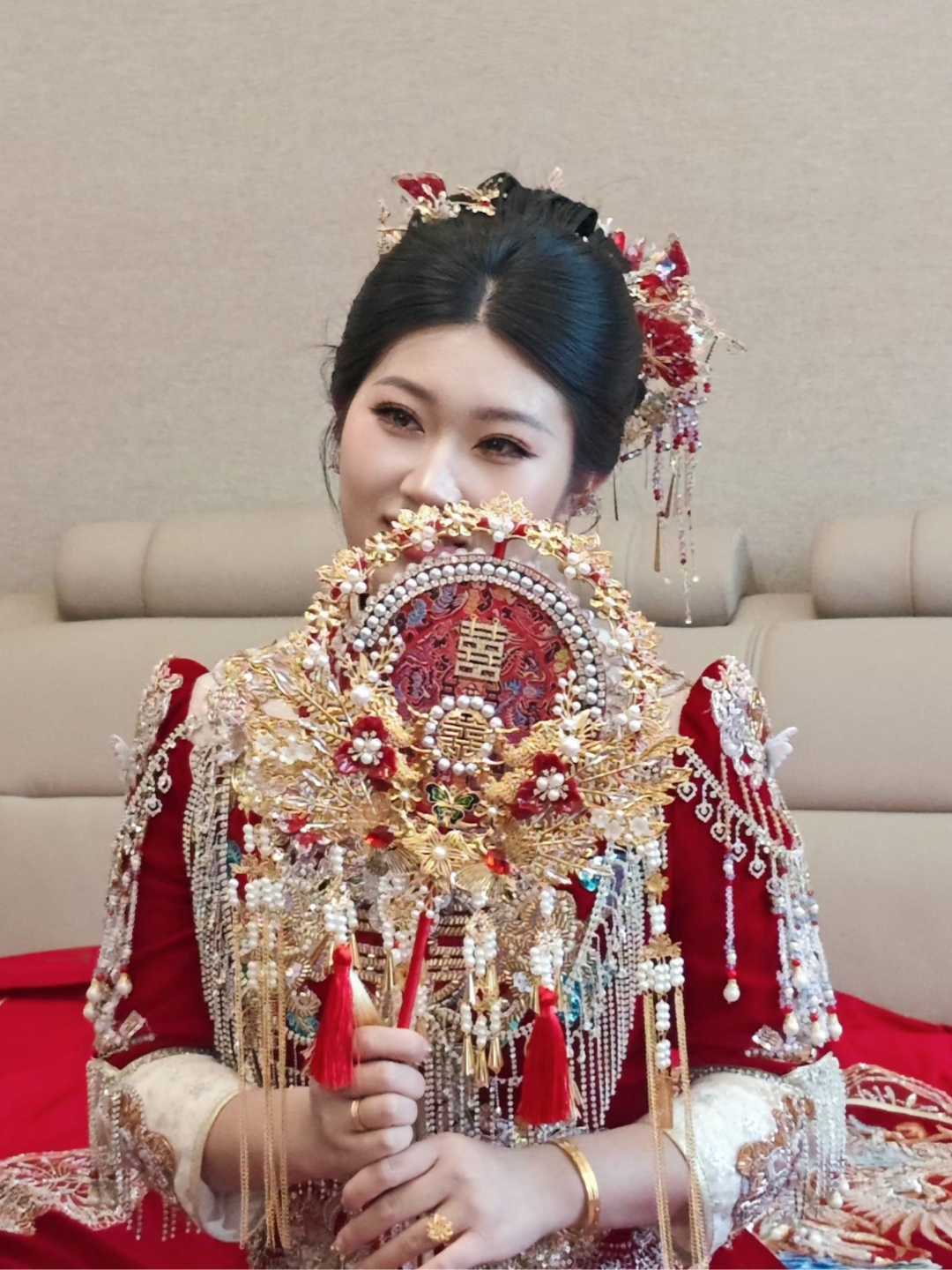 “小姐姐年纪和我表妹一样大,虽然年纪小,但是很耐心滴~ 因为这边的习俗半夜一两点就开始化妆、所以时间特别长、晚上也睡不太好、可是小姐姐莫有一点不不耐烦、很仔细认真、就也一直等我所有仪式结束,非常谢谢她~ 希望她越来越好~