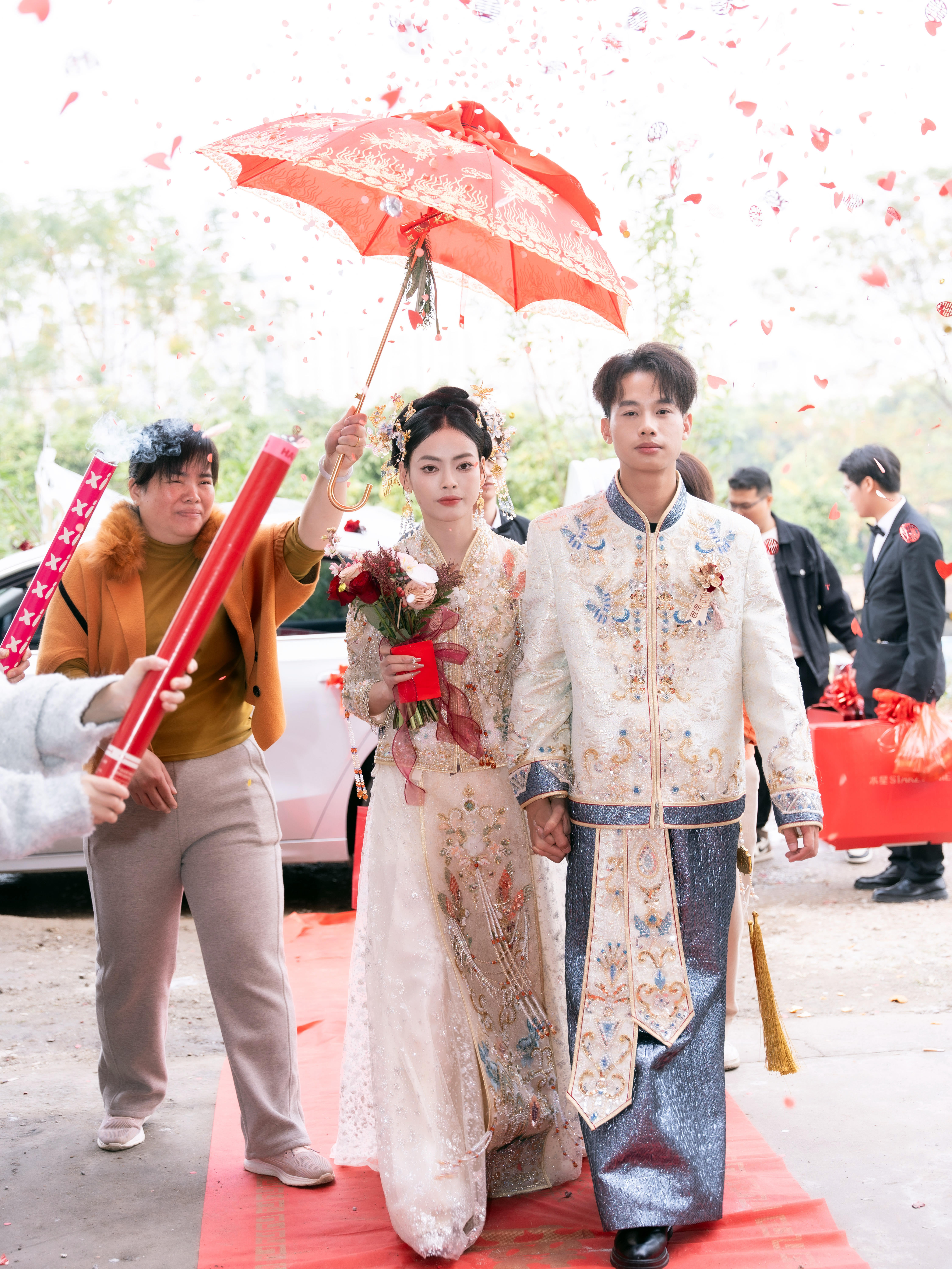 “我们是1月16的婚礼,算是回门宴。之前已经在福建男方家办过。所以这次是在南宁,然后省去了早上接亲。计划就在家里拍一点合照和亲戚的大合照,然后我们就南湖出外景。 事前也跟摄影师陈豪商量过拍摄流程,我原先还担心下雨问题,然后摄影师很耐心的沟通拍摄事情和提前让我们准备好透明雨伞,说下雨就用雨伞当拍摄道具。当天得雨也算大,天阴沉沉的冒着雨拍了大概1个小时。最后拍出来效果有惊喜。家人和朋友都夸我们照片好看。真的是找对了摄影很重要