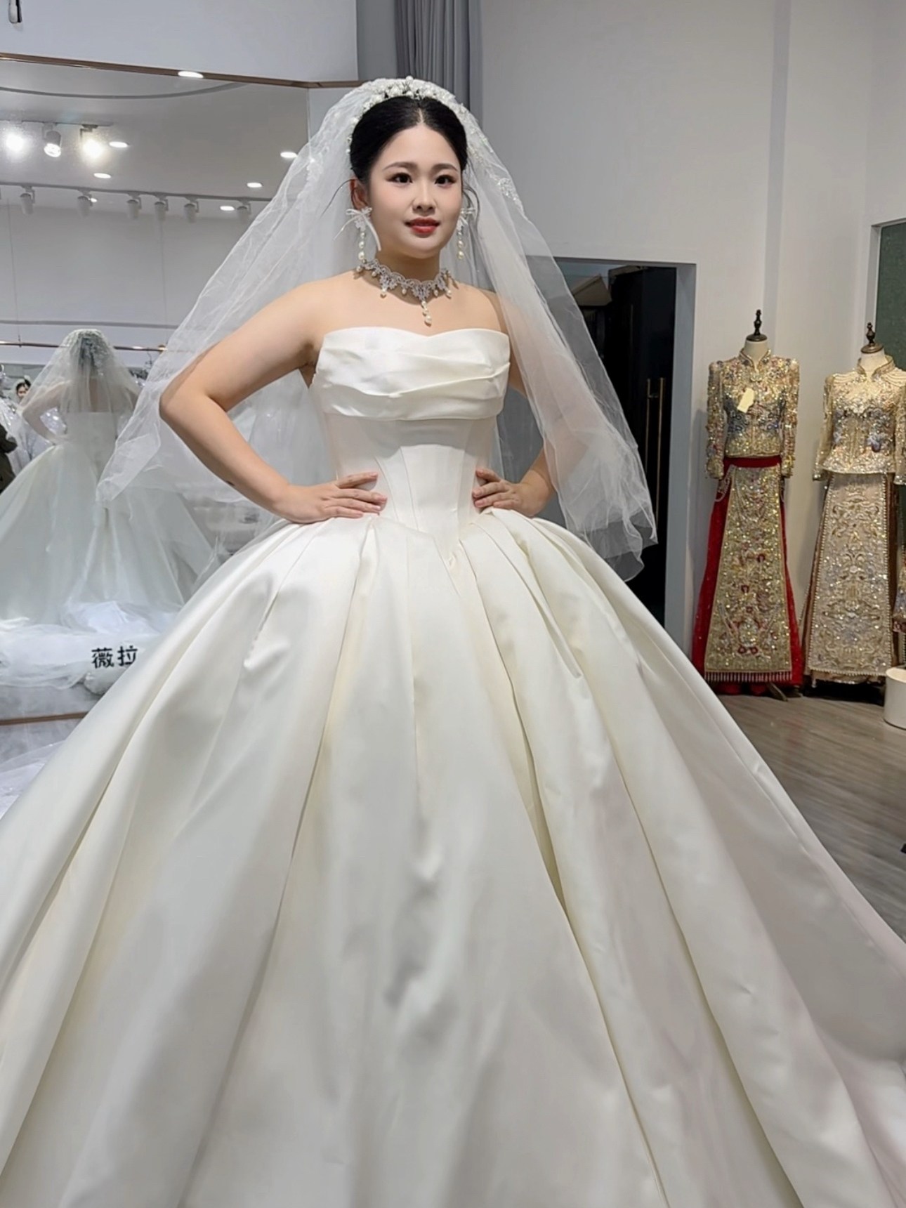 缎面婚纱试纱妆造花絮分享
