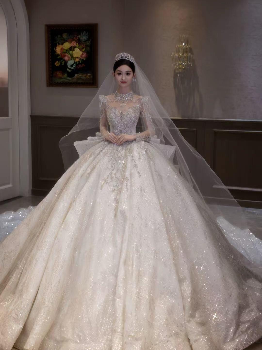 奢华长袖拖尾婚纱