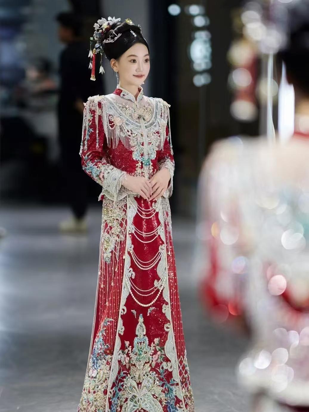 钉珠修身秀禾服