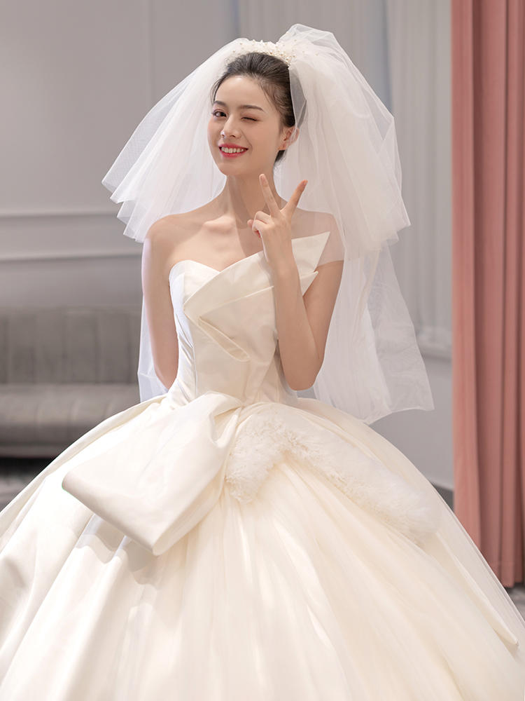 可爱韩式缎面婚纱