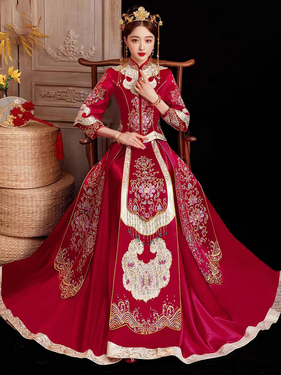 新款红金撞色中式秀禾