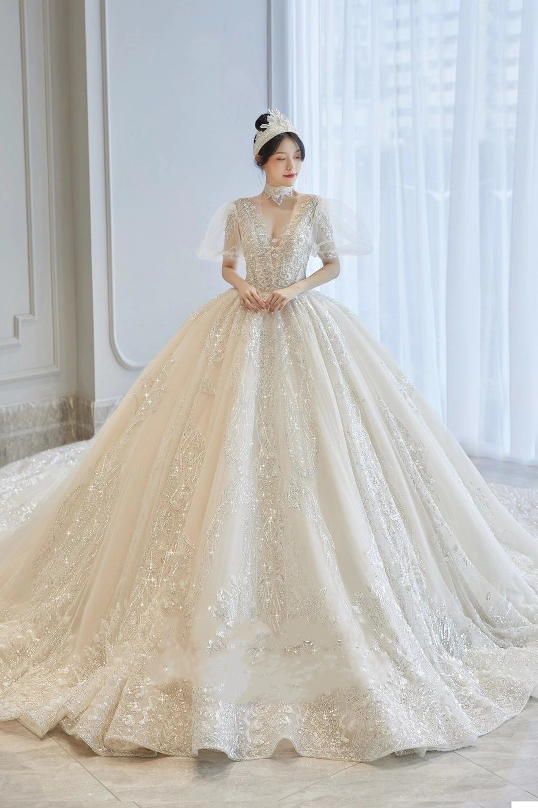 肉眼可见的奢华公主婚纱