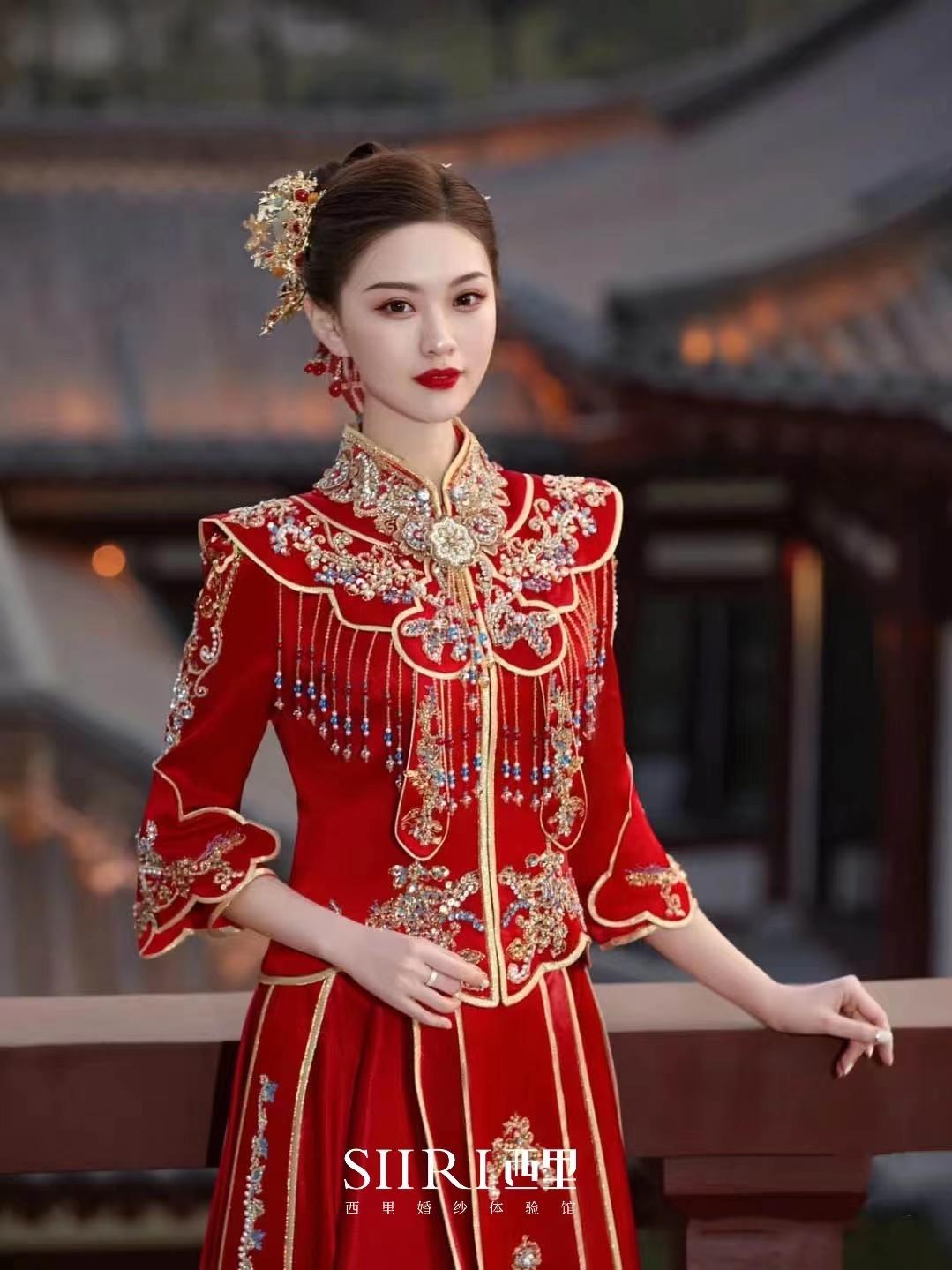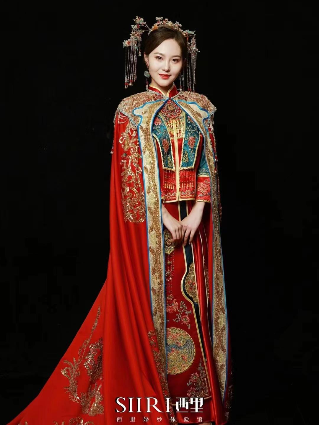 倒叙高定品牌中式嫁衣披风