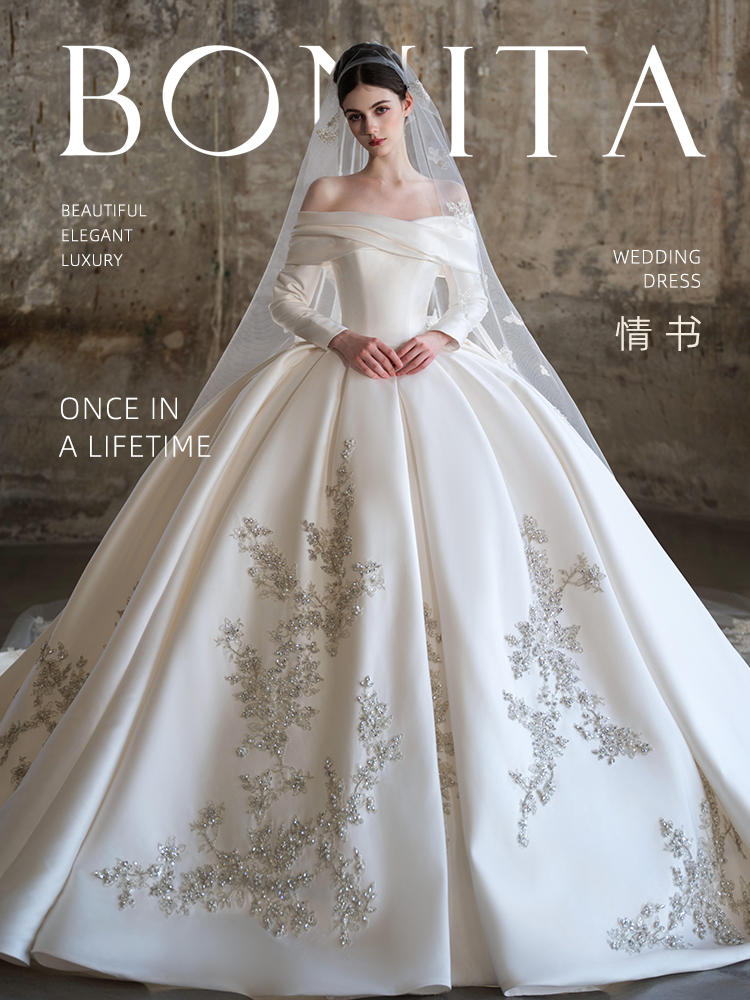 重工奢华缎面婚纱