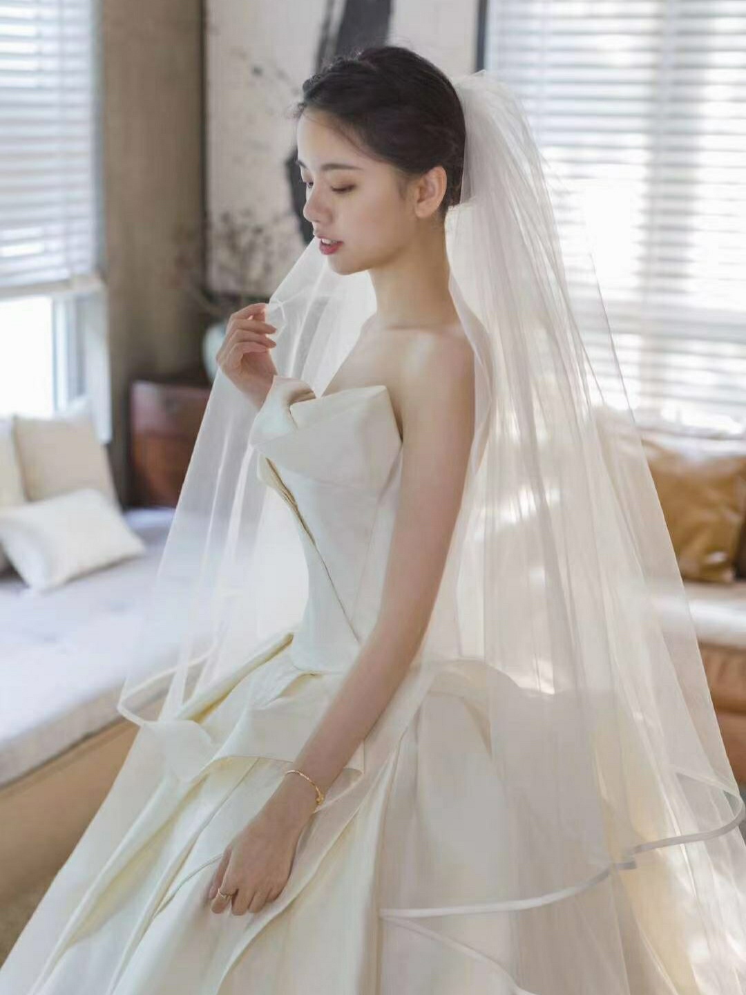 缎面温柔拖尾纱