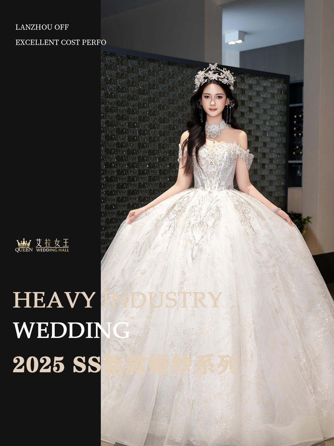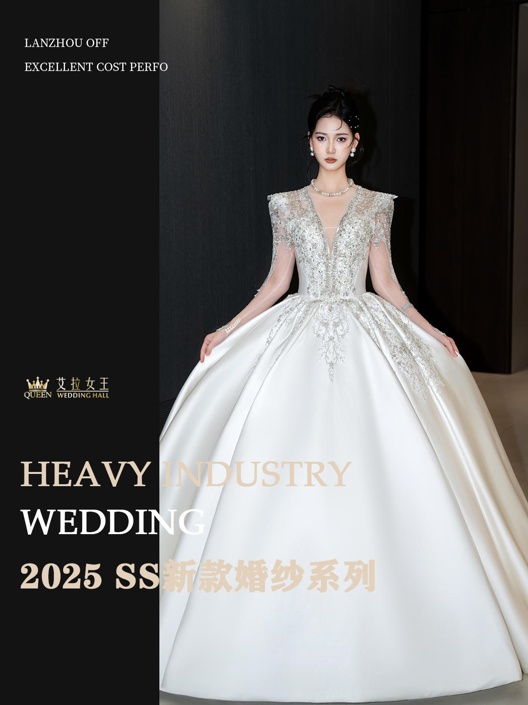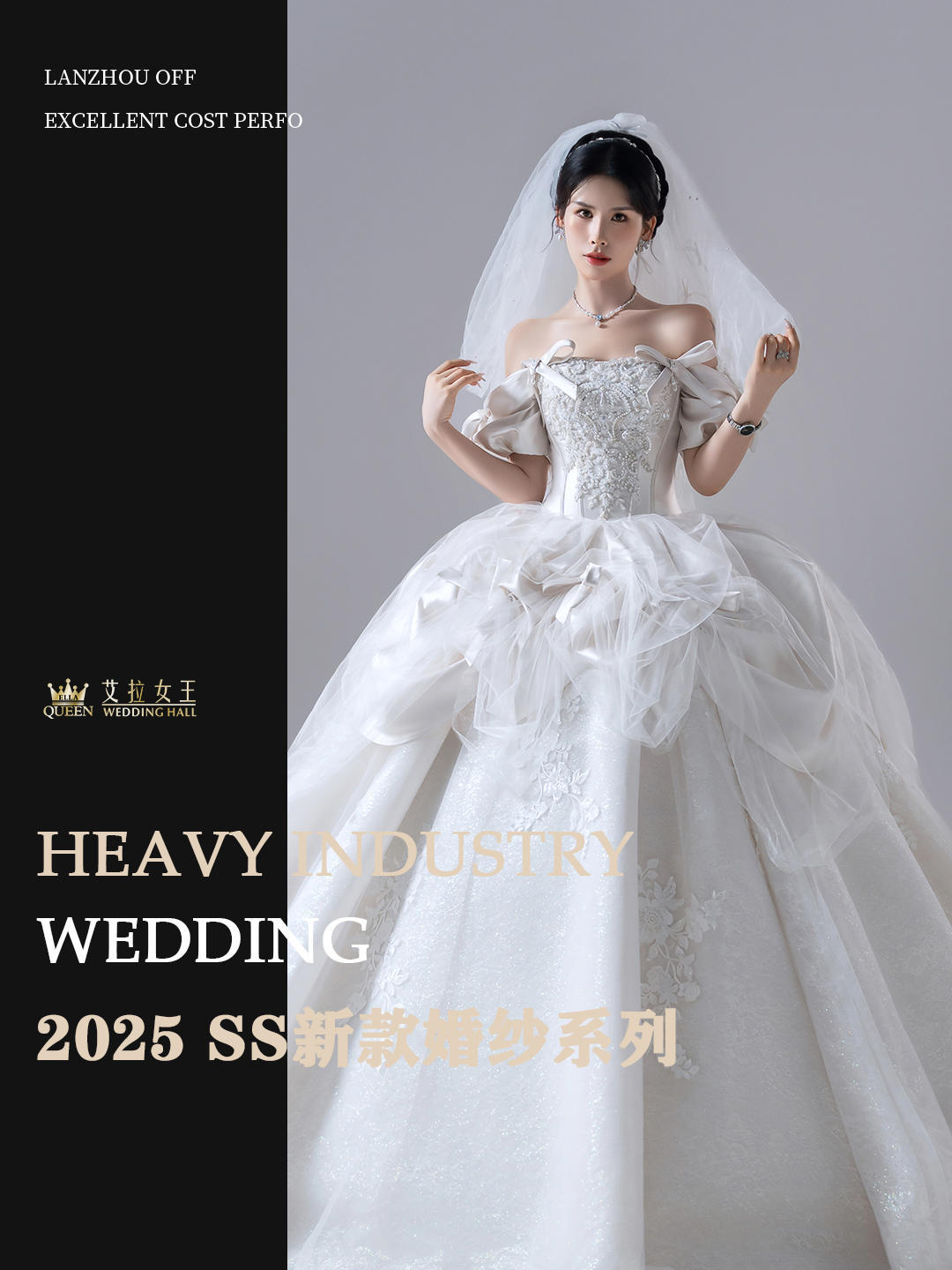 【千金风】重工一字肩齐地婚纱