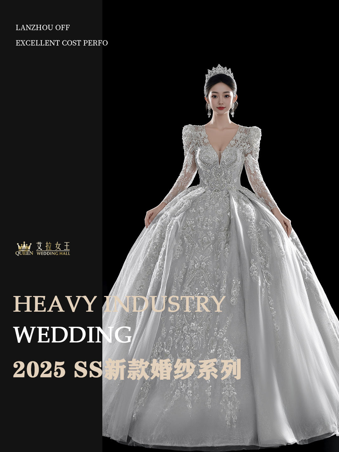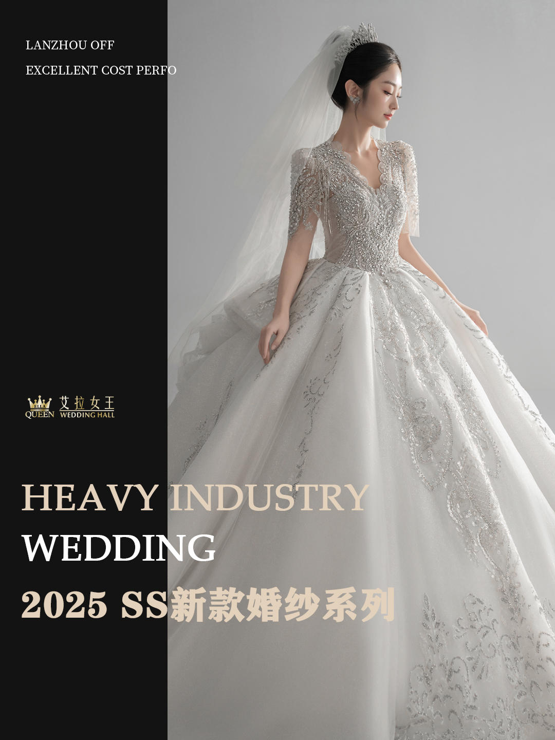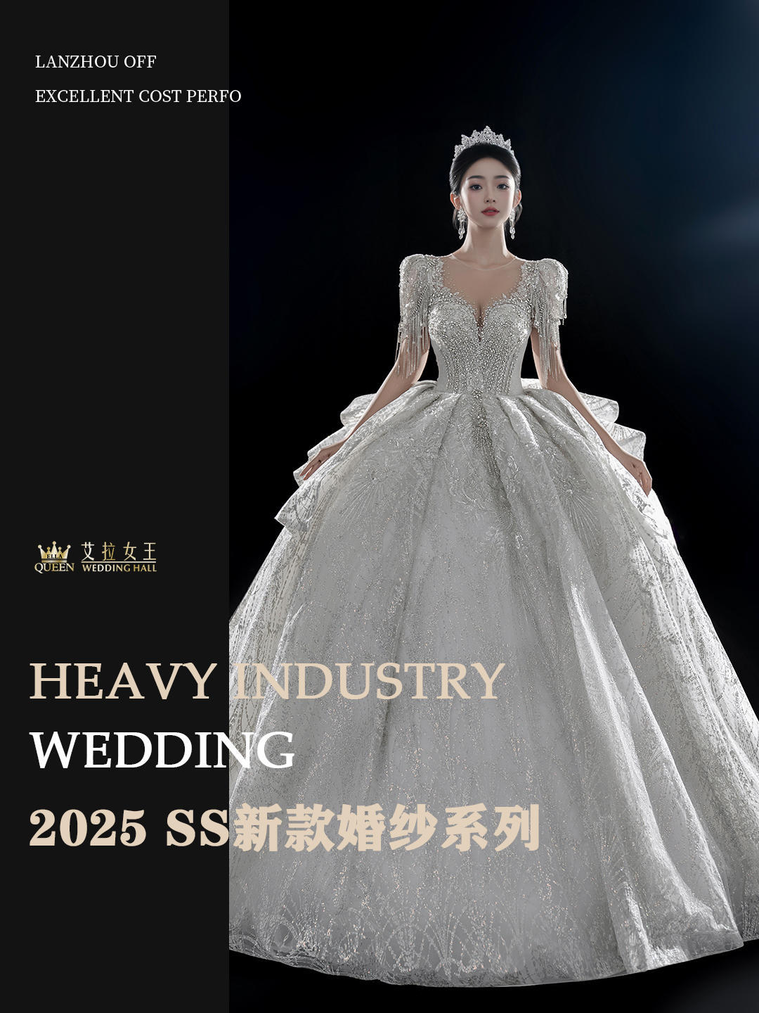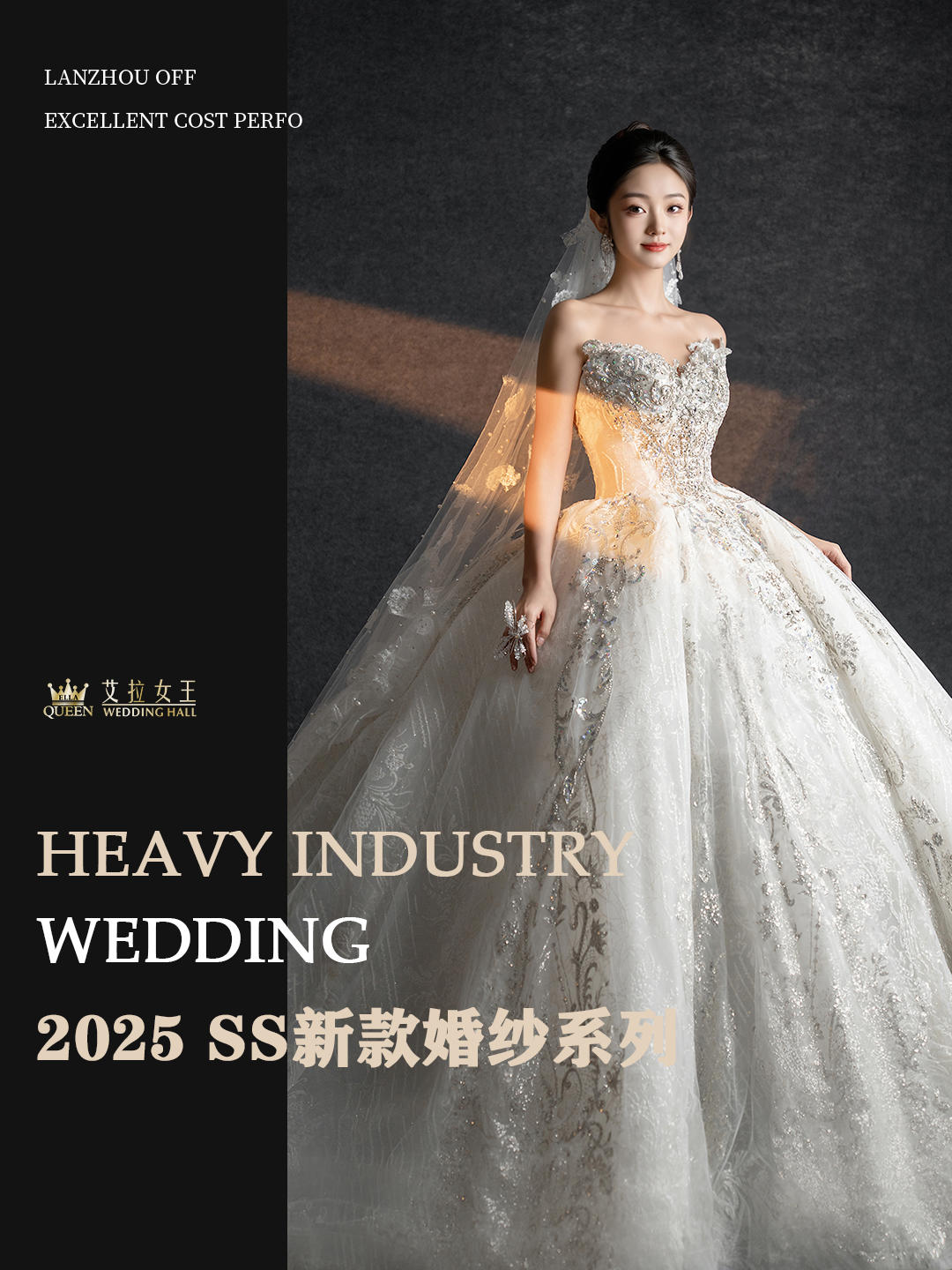【千金风】重工一字肩齐地婚纱