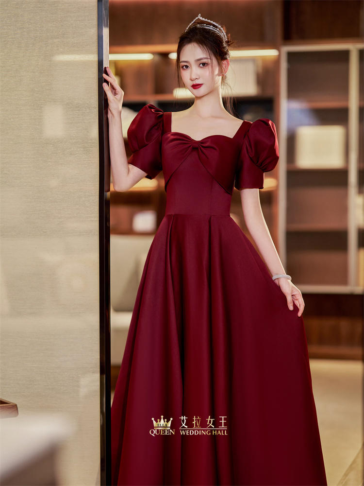 【公主风】红色泡泡袖新娘敬酒礼服