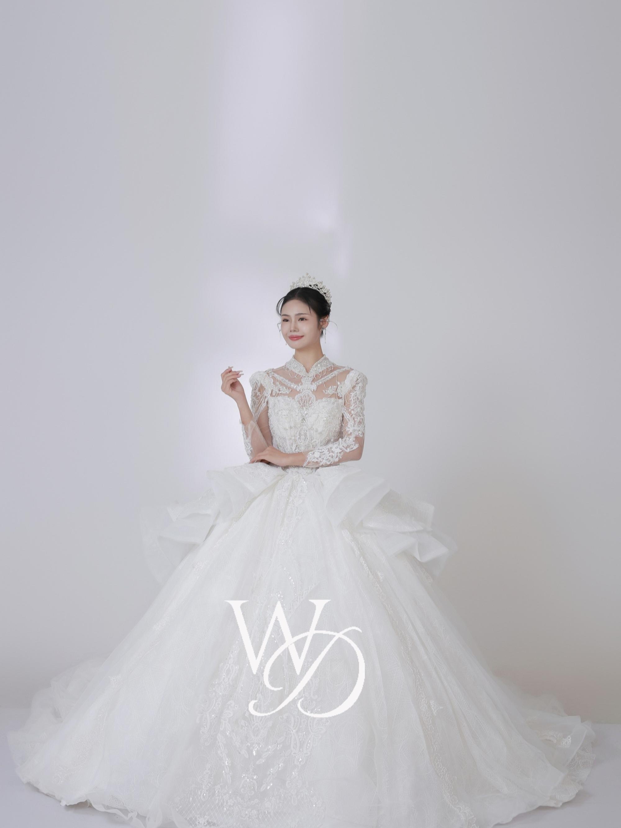 绝 美的重工长拖尾婚纱,心动预警