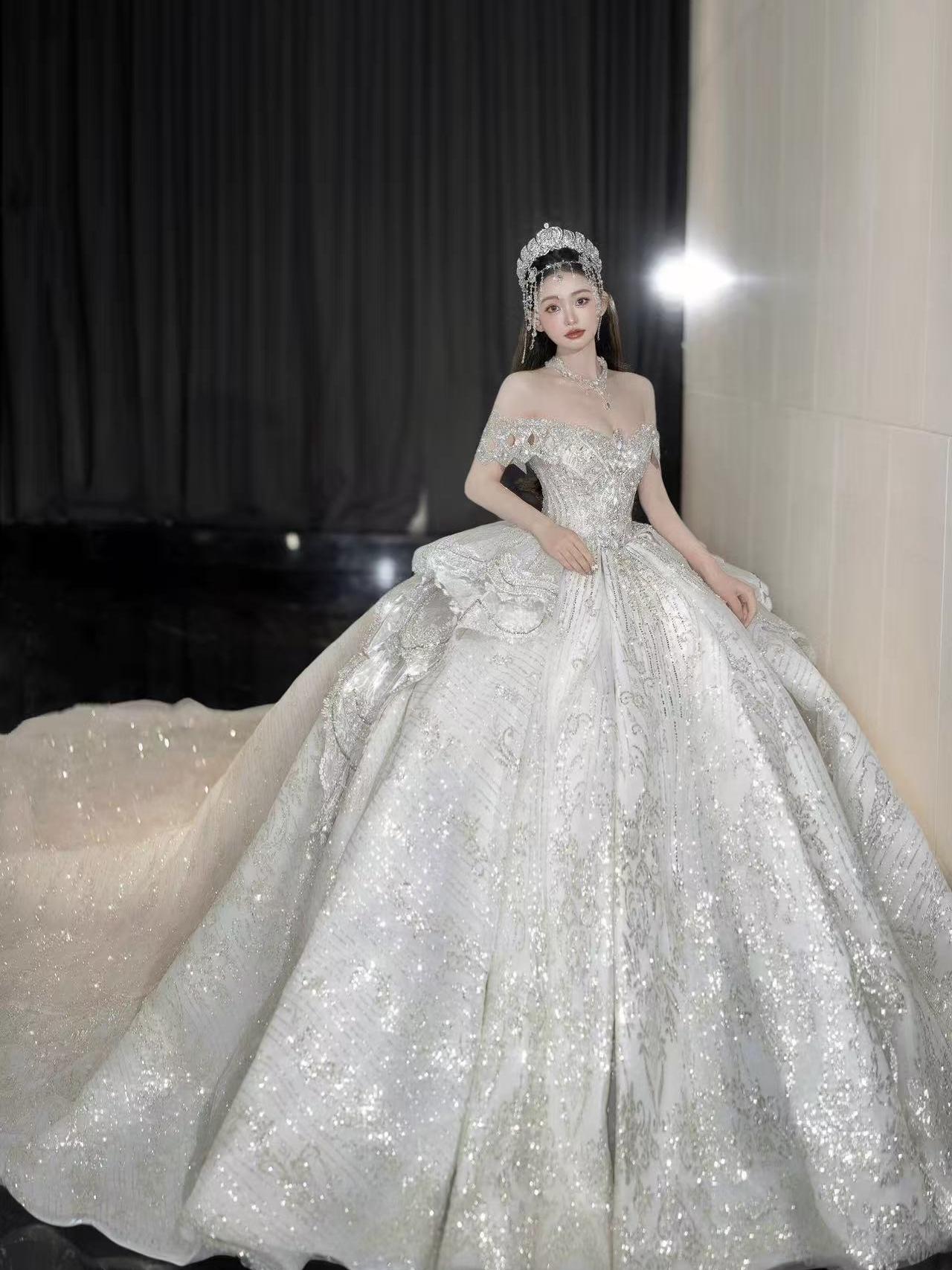 长袖缎钻结合大主纱