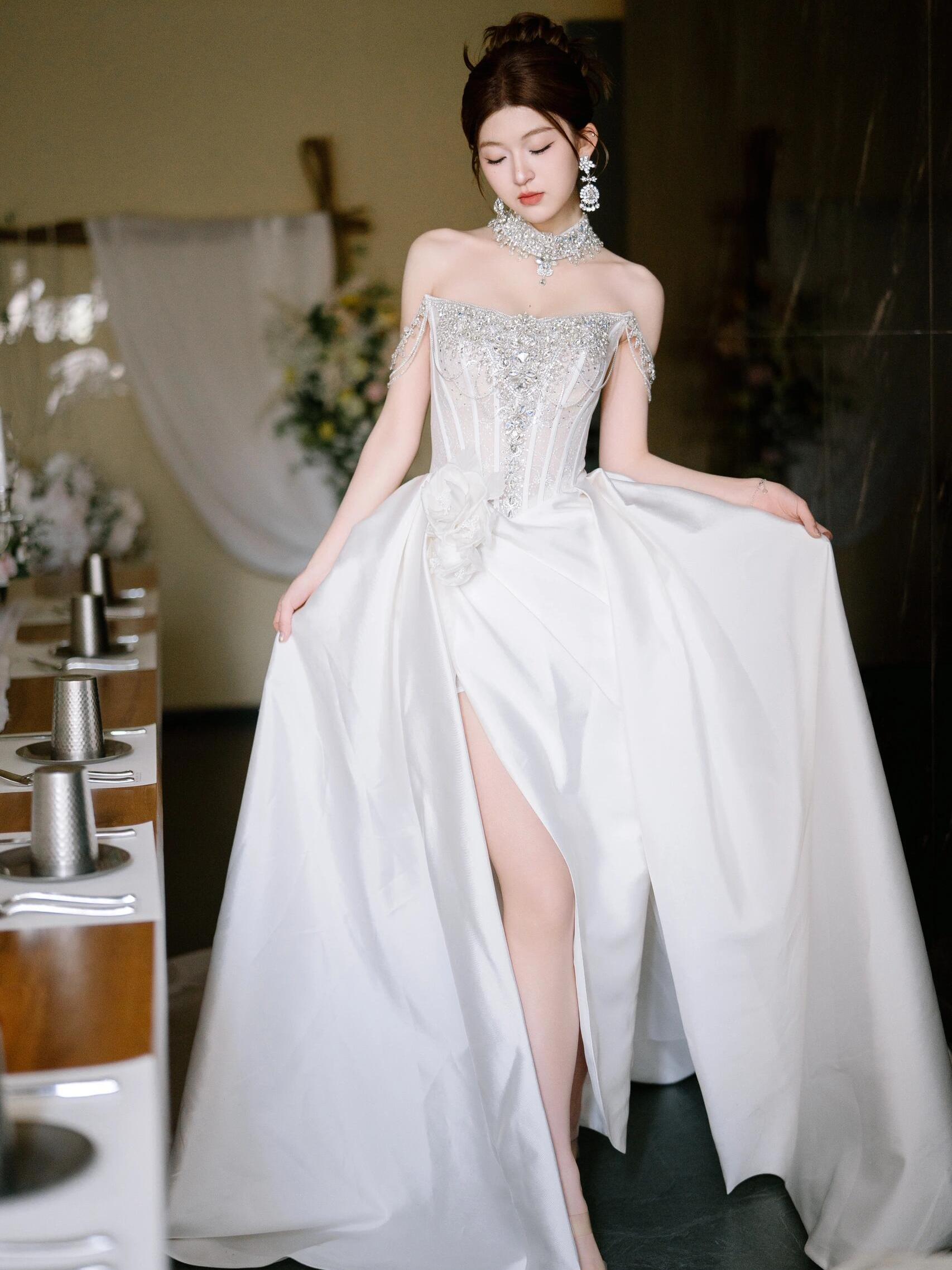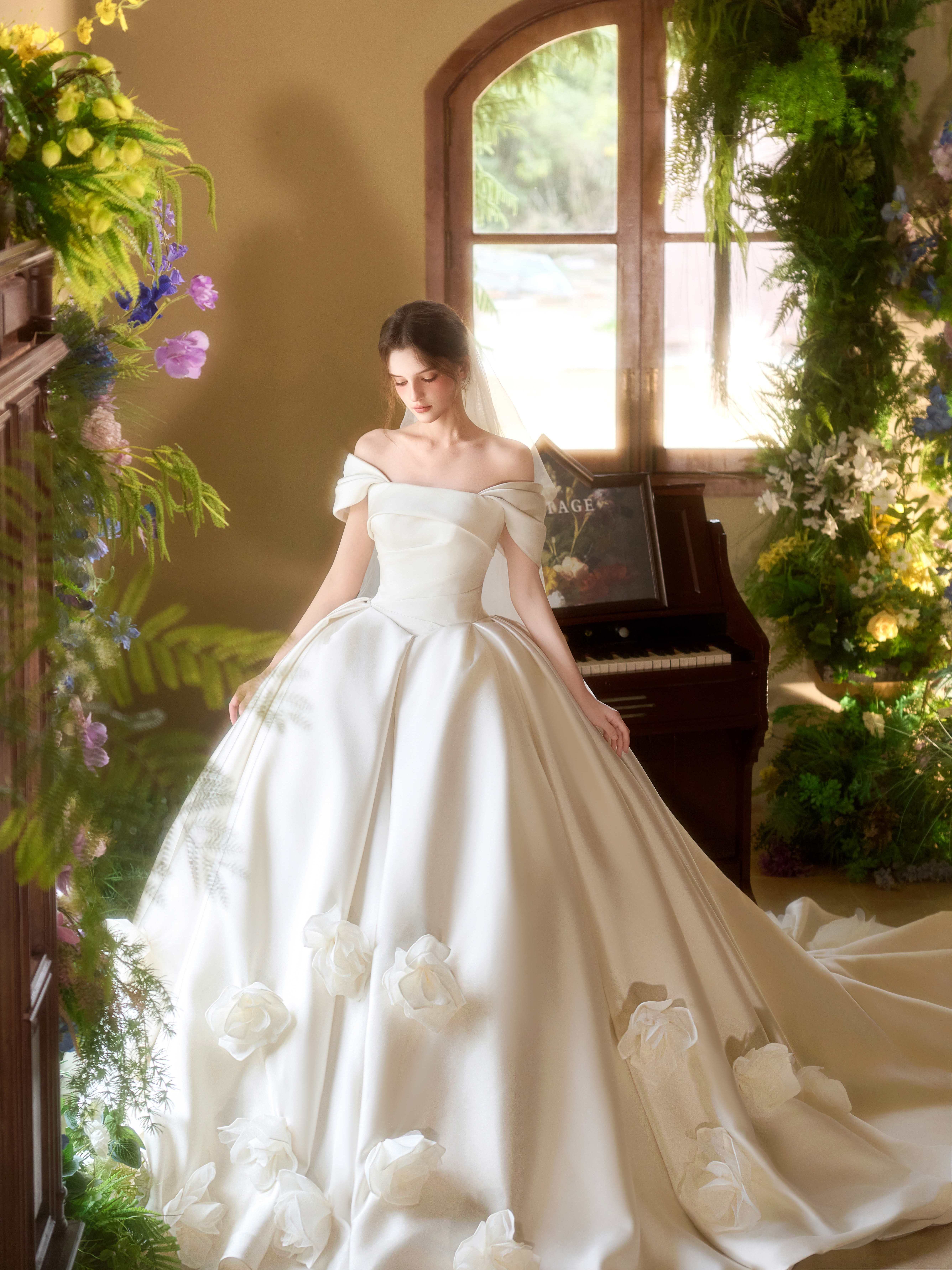 一字肩—缎面—开叉主仪式纱