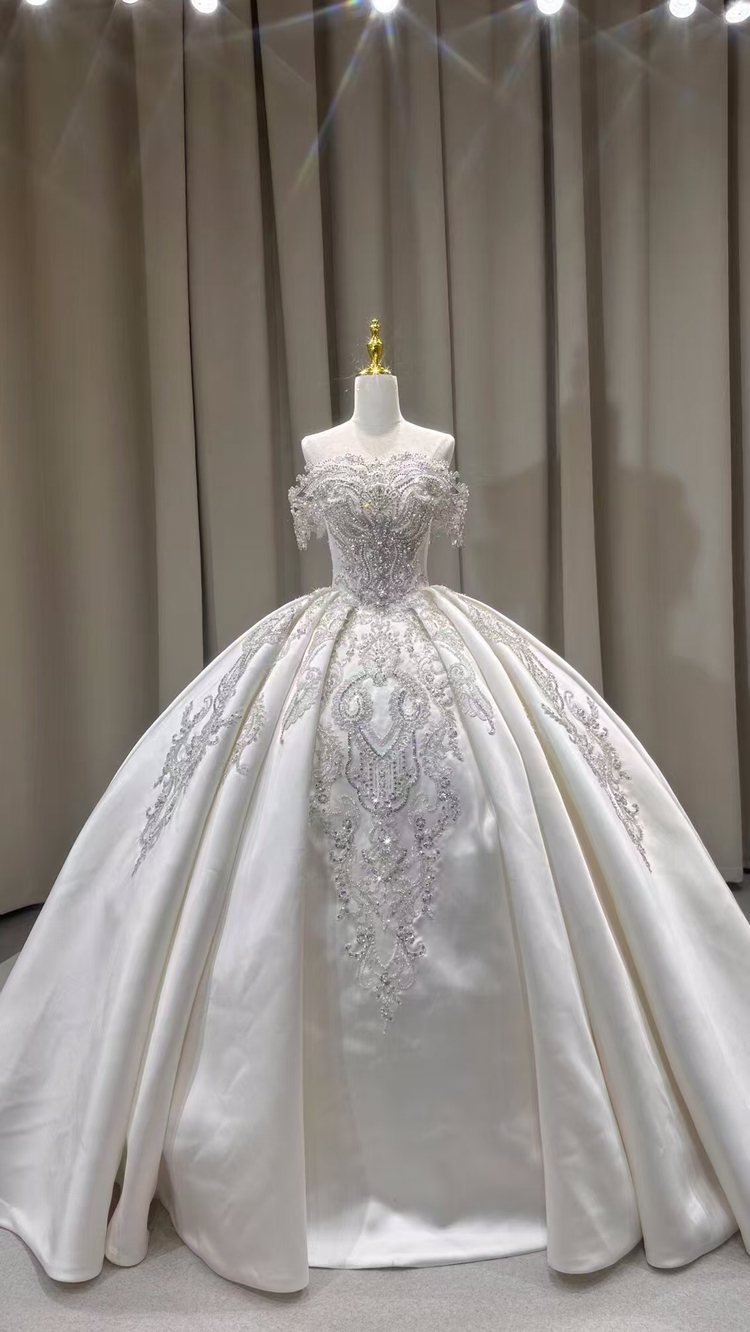 一字肩重工主婚纱