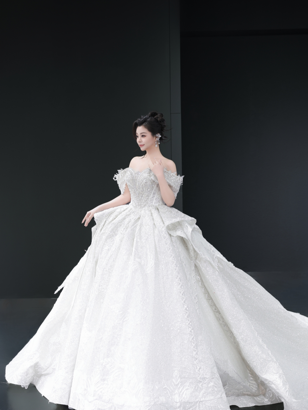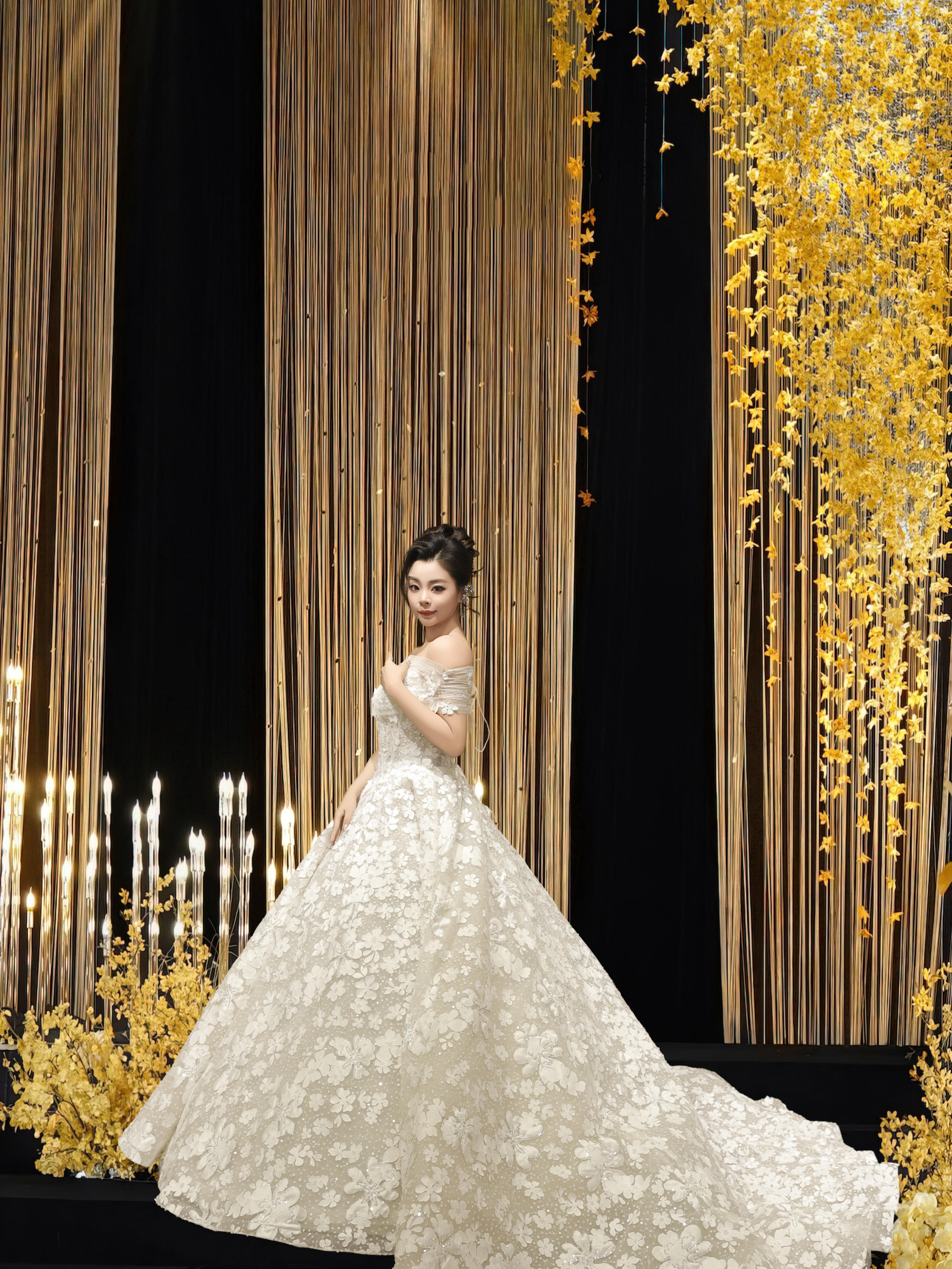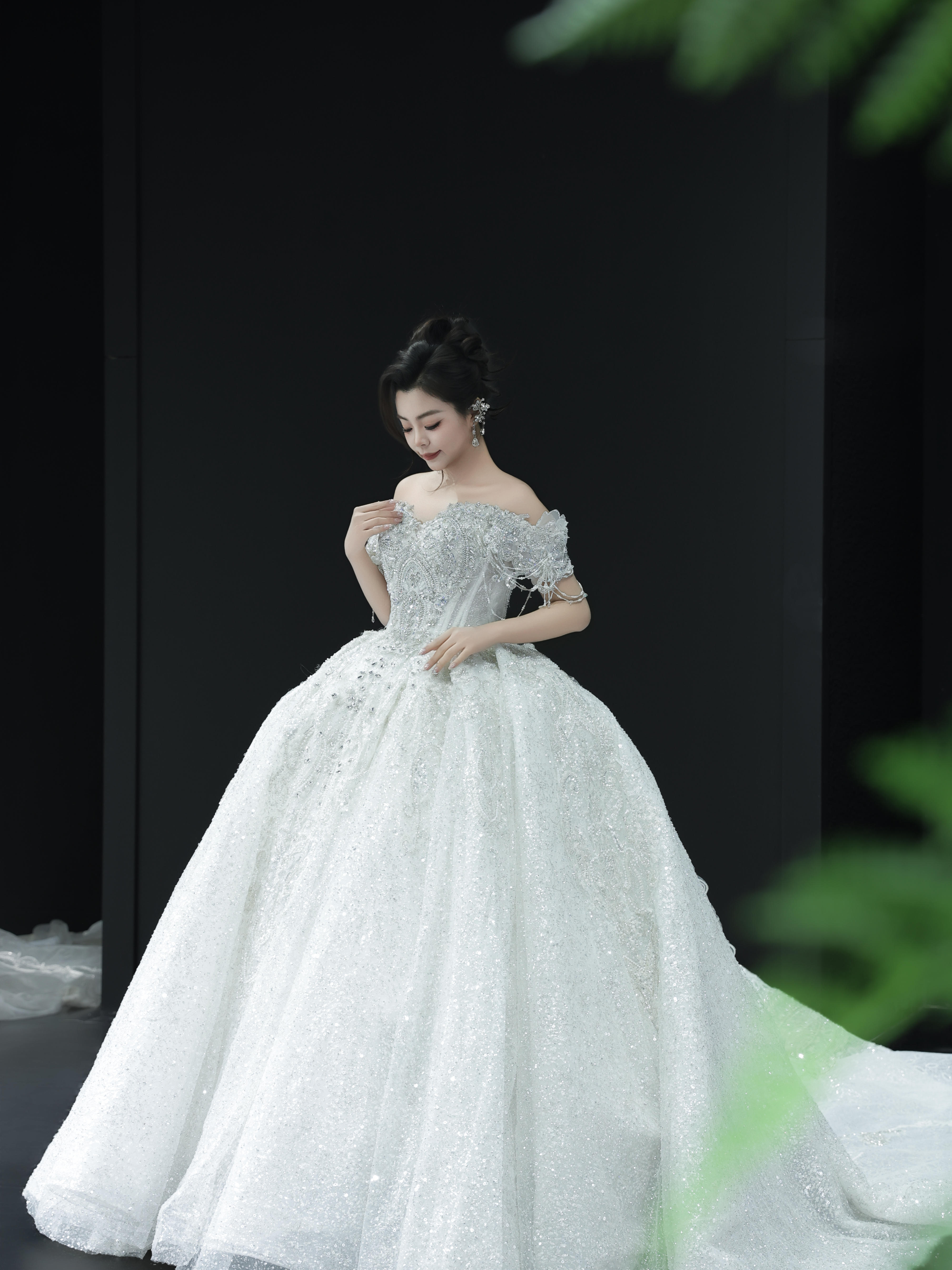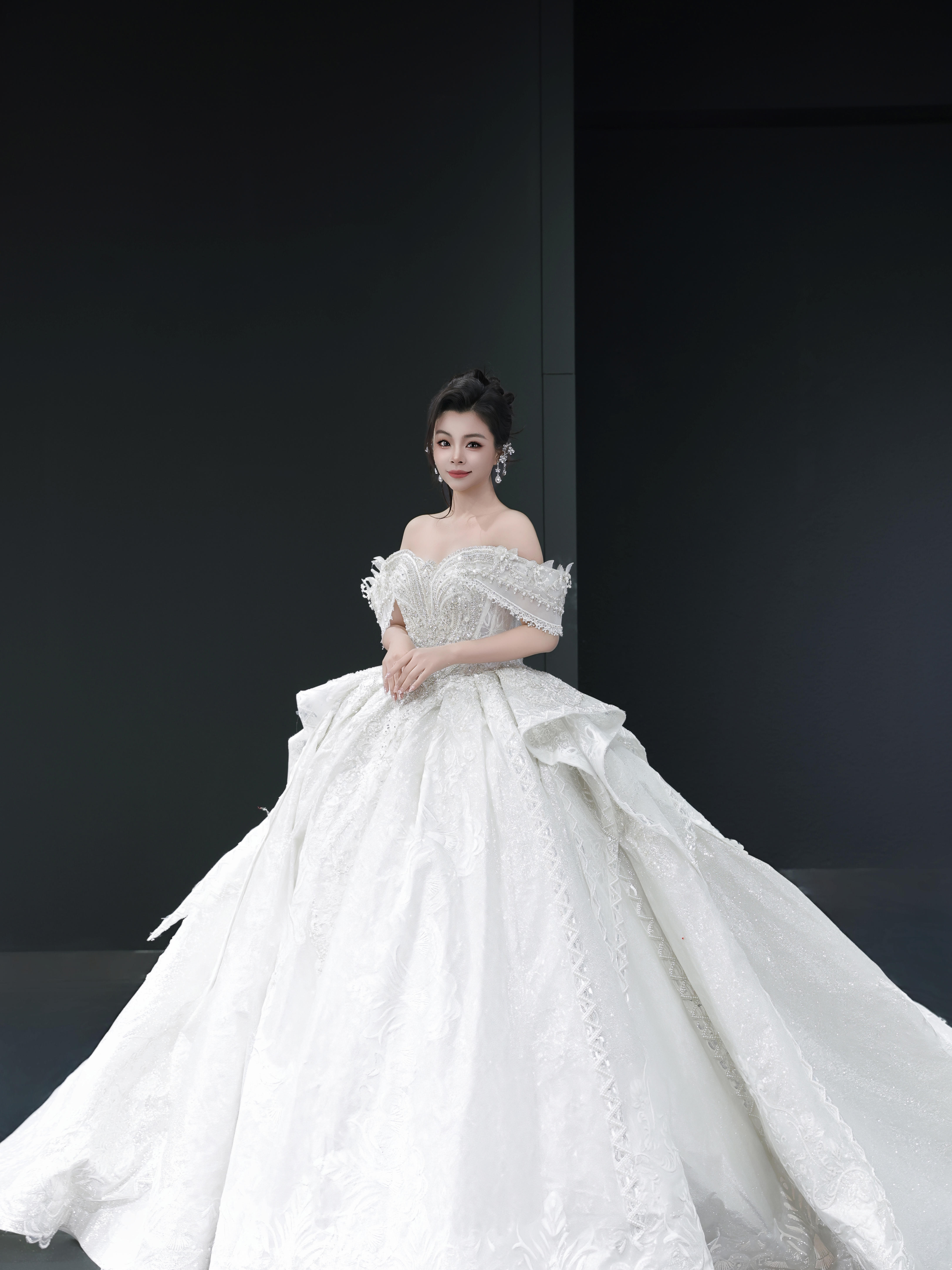 一字肩重工婚纱