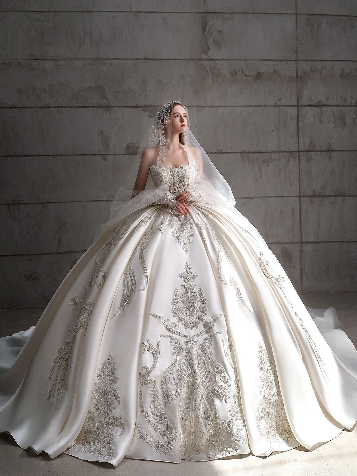 【余礼婚纱】重手工长袖婚纱女王范