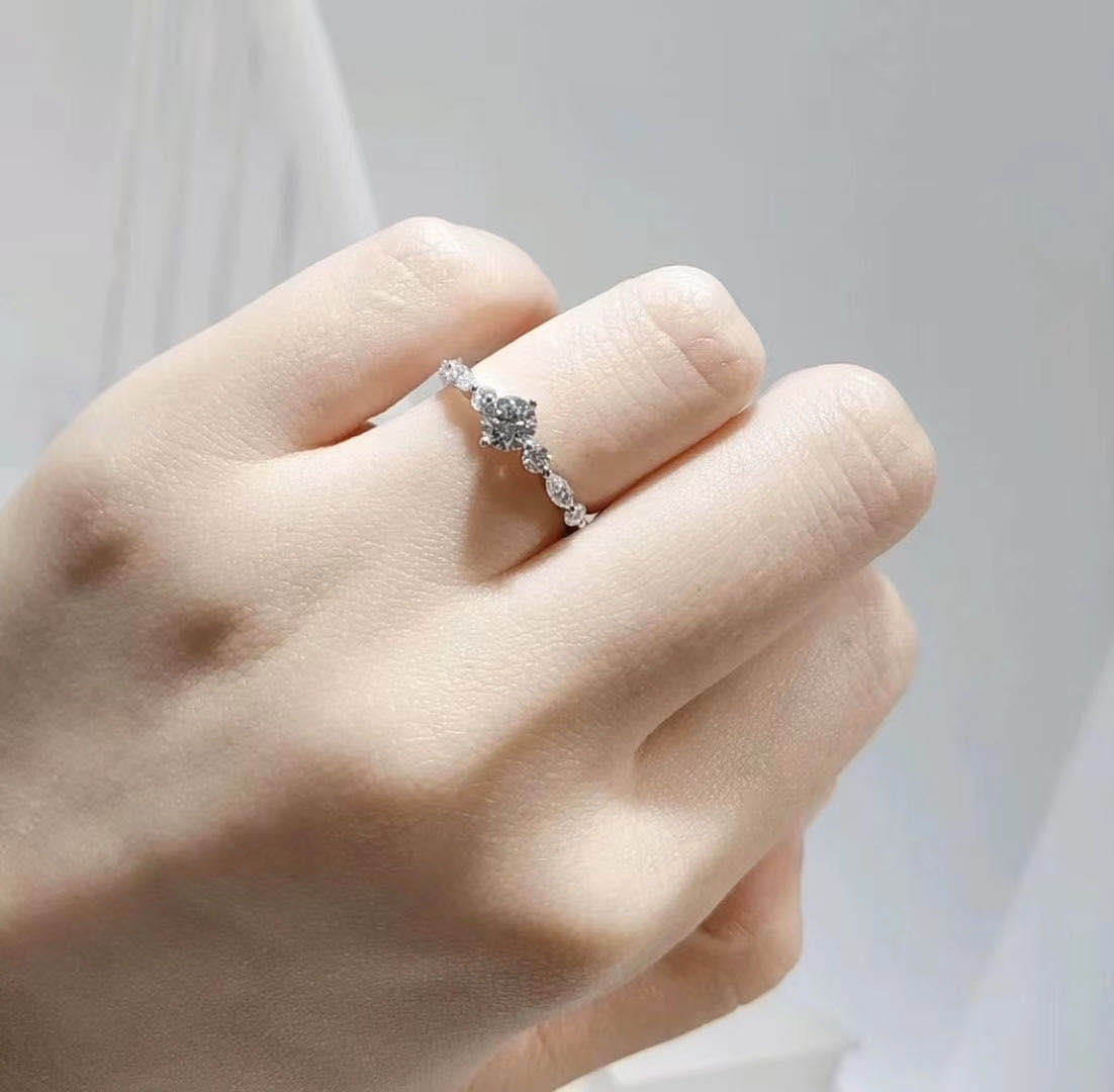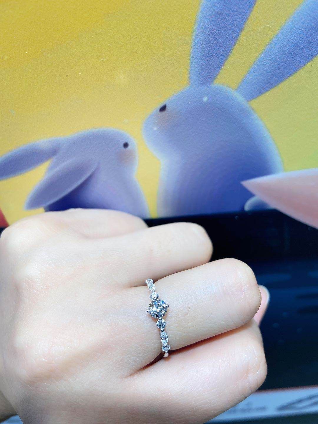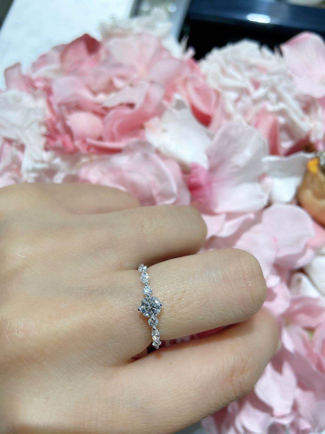 很美的款式啊,圆形和马眼形状的异形钻的组合,看起来很特别哦,上手很秀气,他们的店里款式挺多的,喜欢特别独一无二的款式,拒绝街款,因为是你,所以喜欢!
