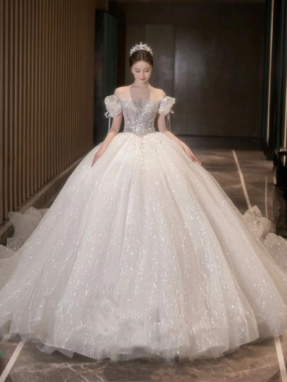 轻奢一字肩婚纱 精致小公主