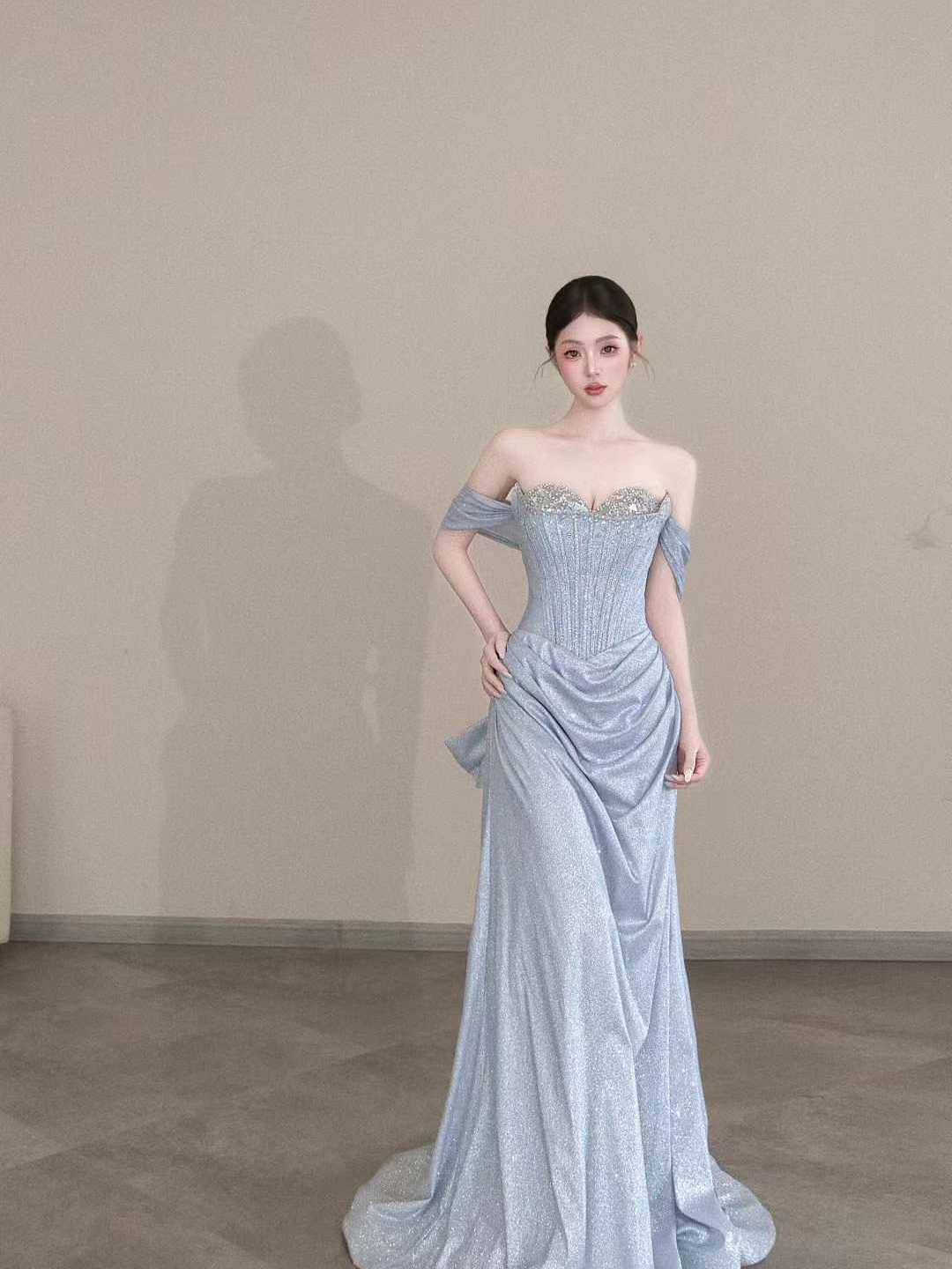 鎏金魅影 一字肩亮片鱼尾礼服 奢