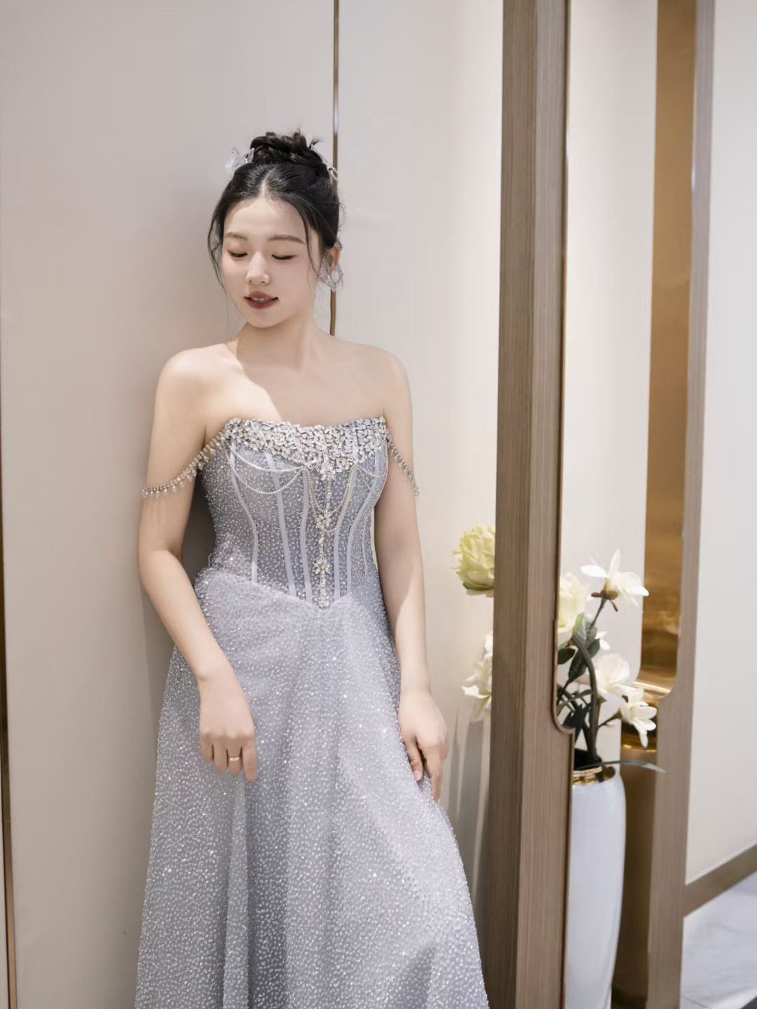 碎钻缀满裙摆,眉眼揉进星光,晚宴妆的高级感