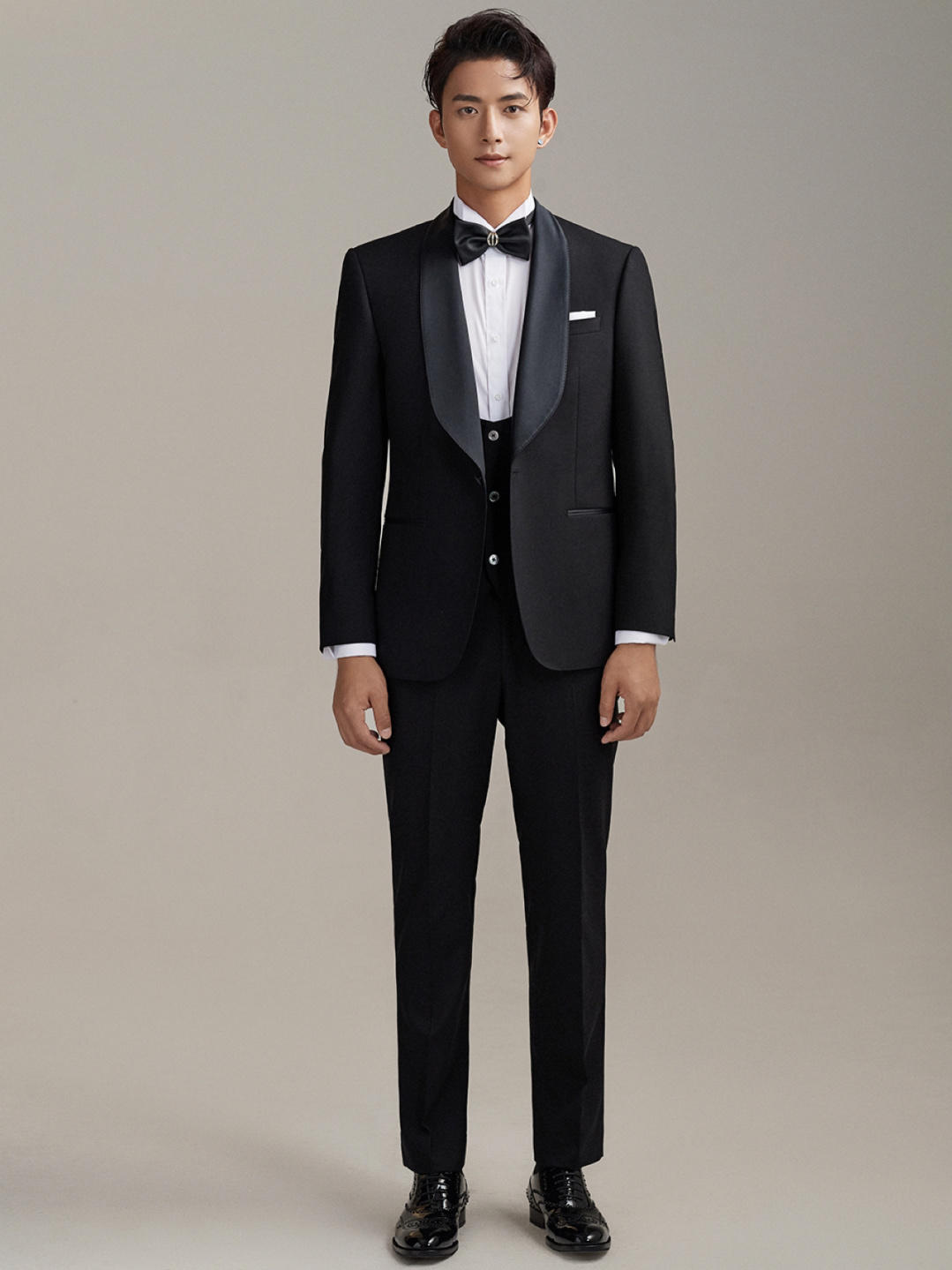 青果领黑色礼服