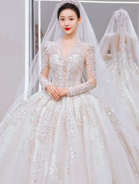高定奢华长袖女王婚纱