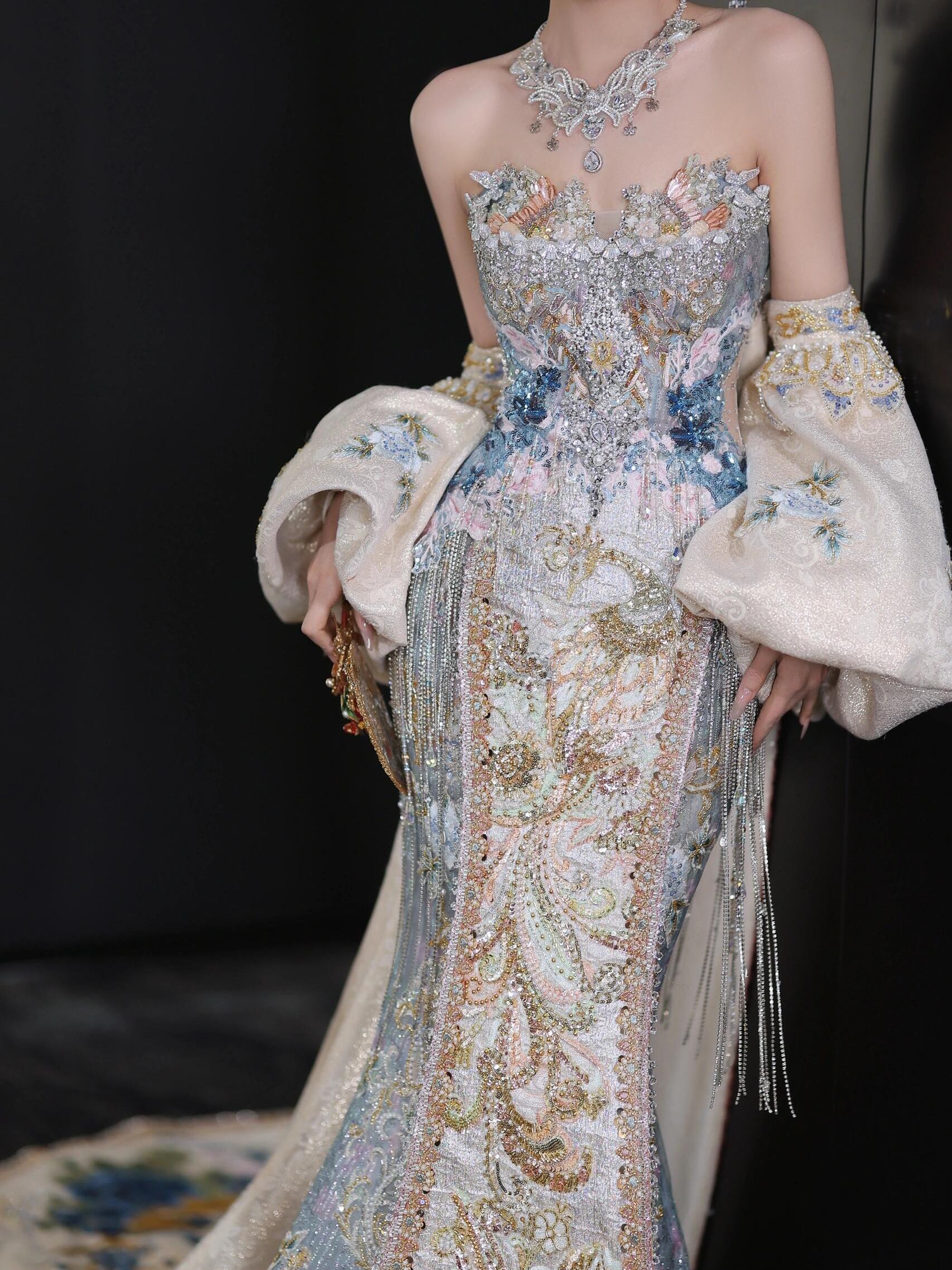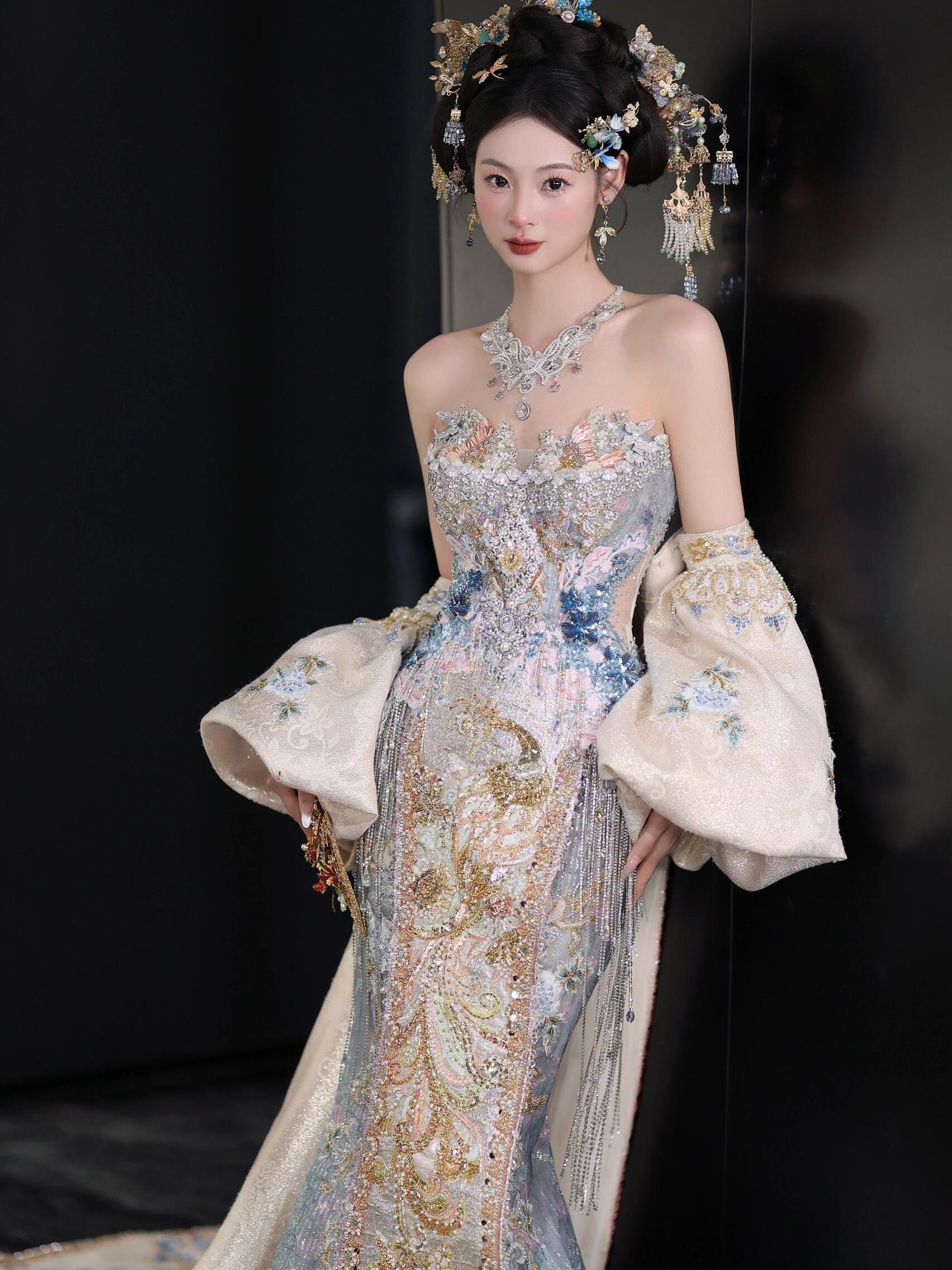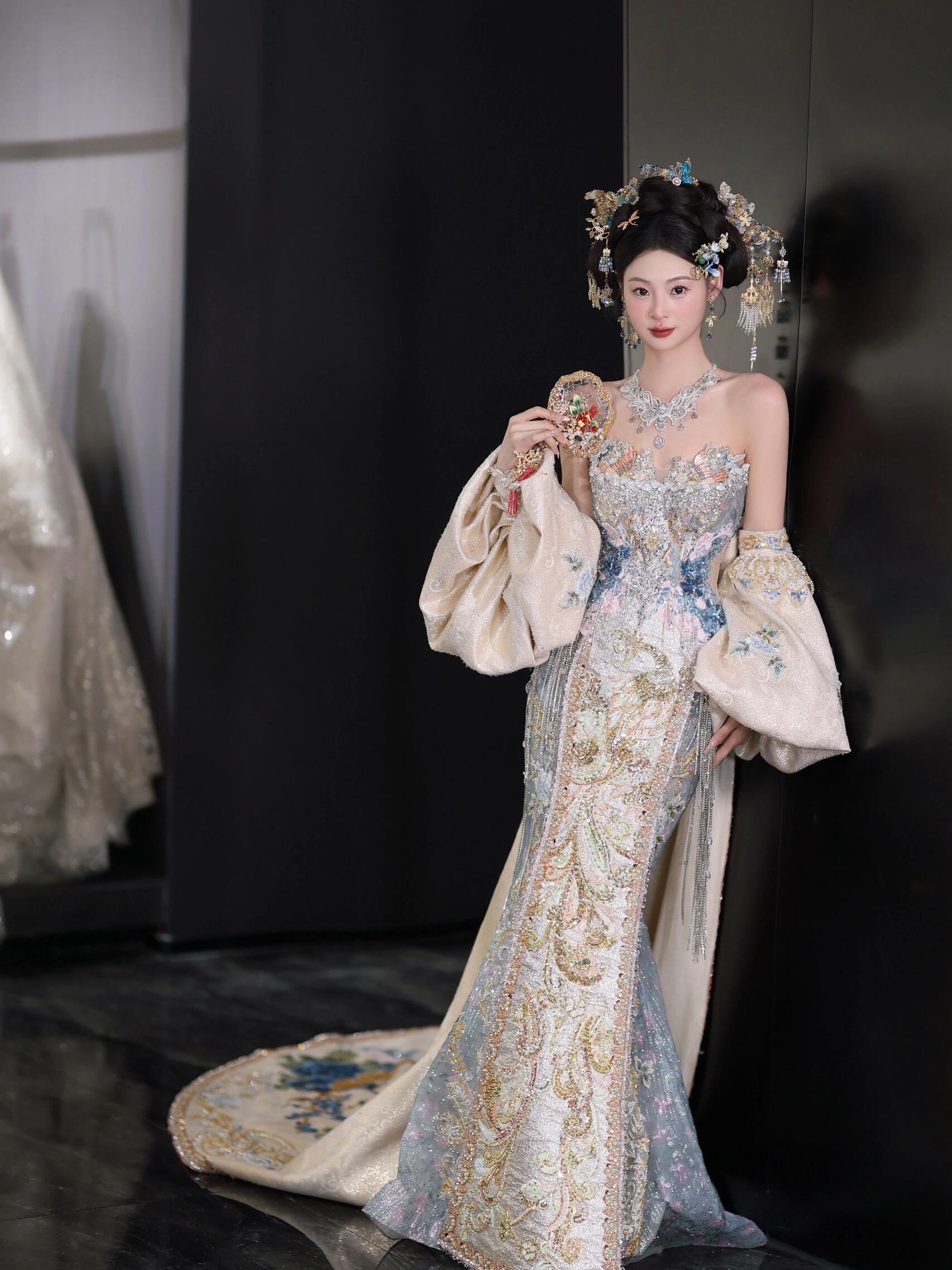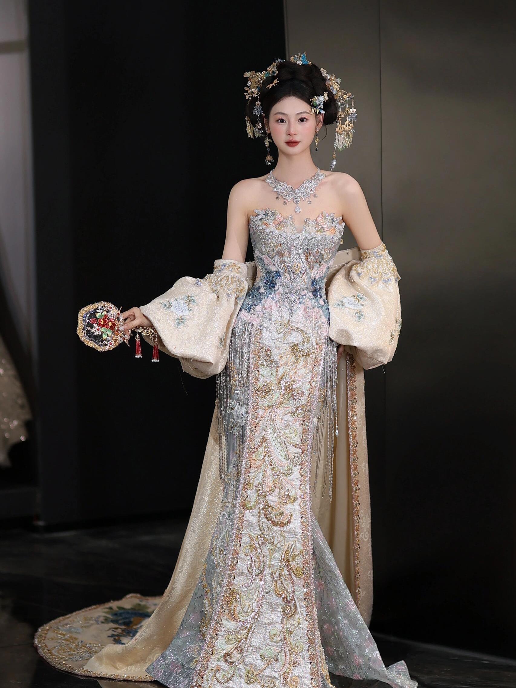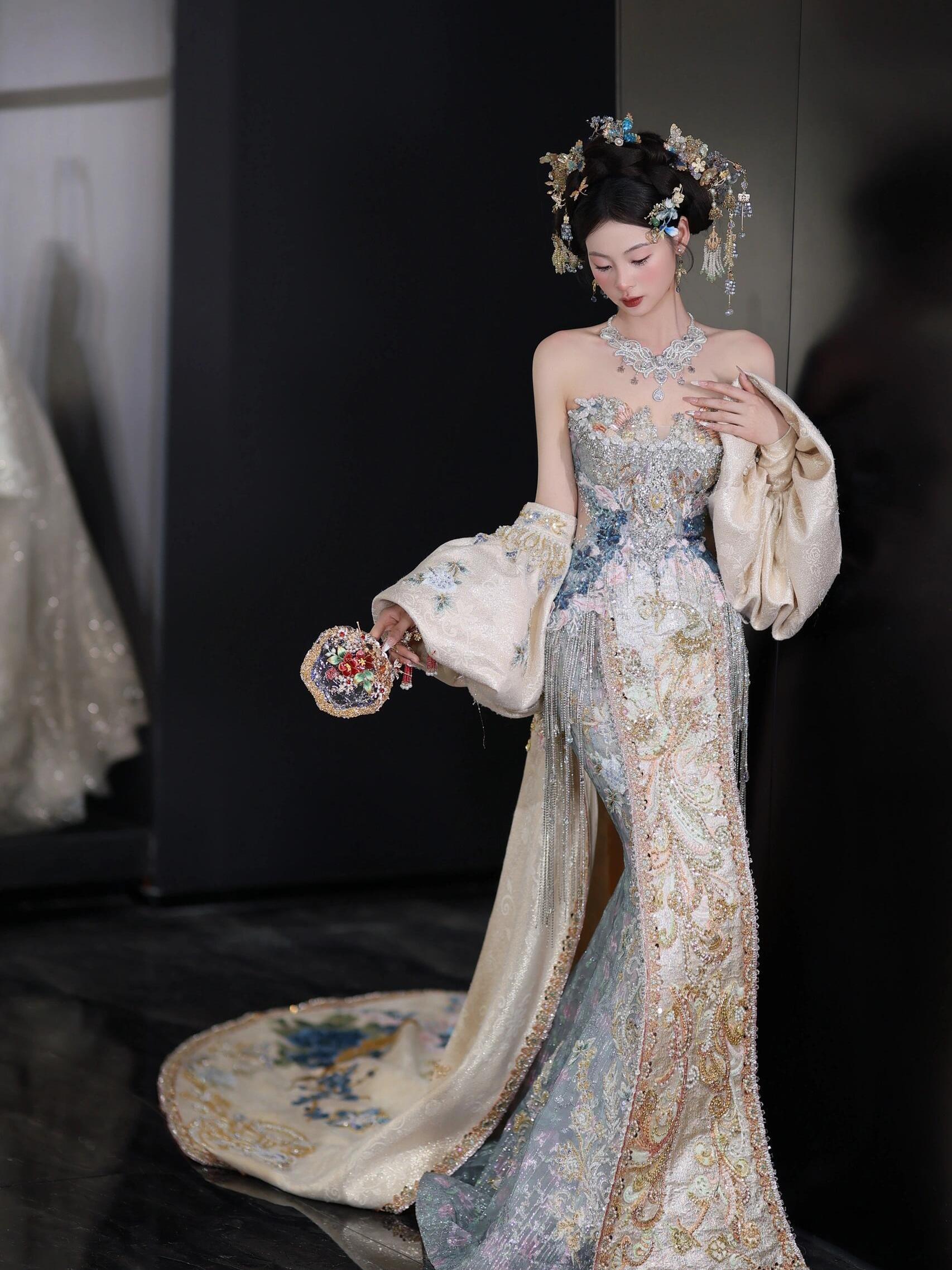 温婉与仙气并存的香槟色秀禾