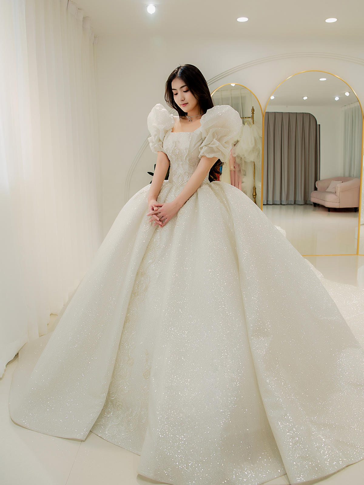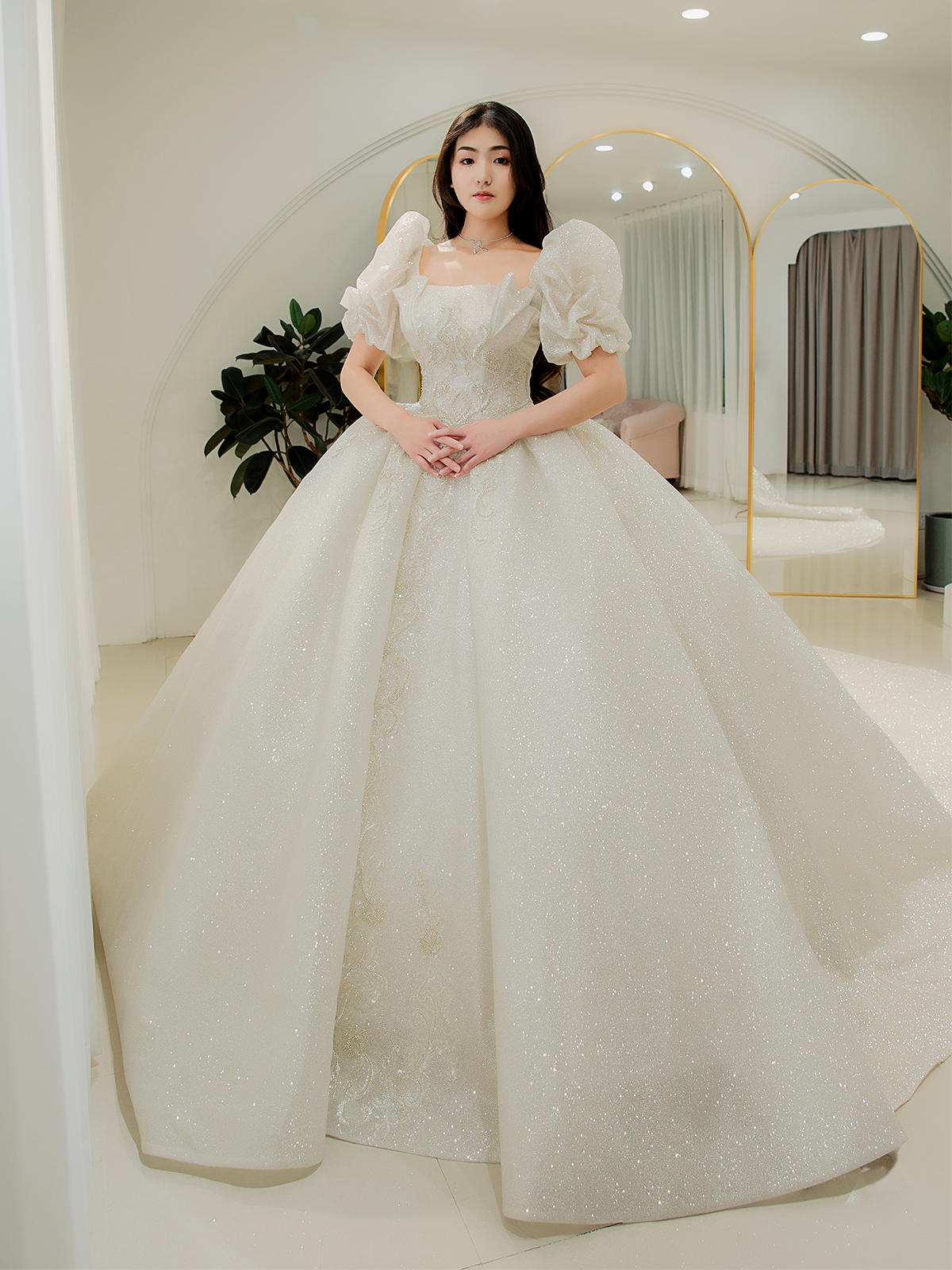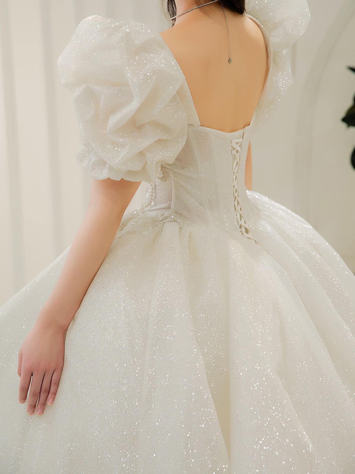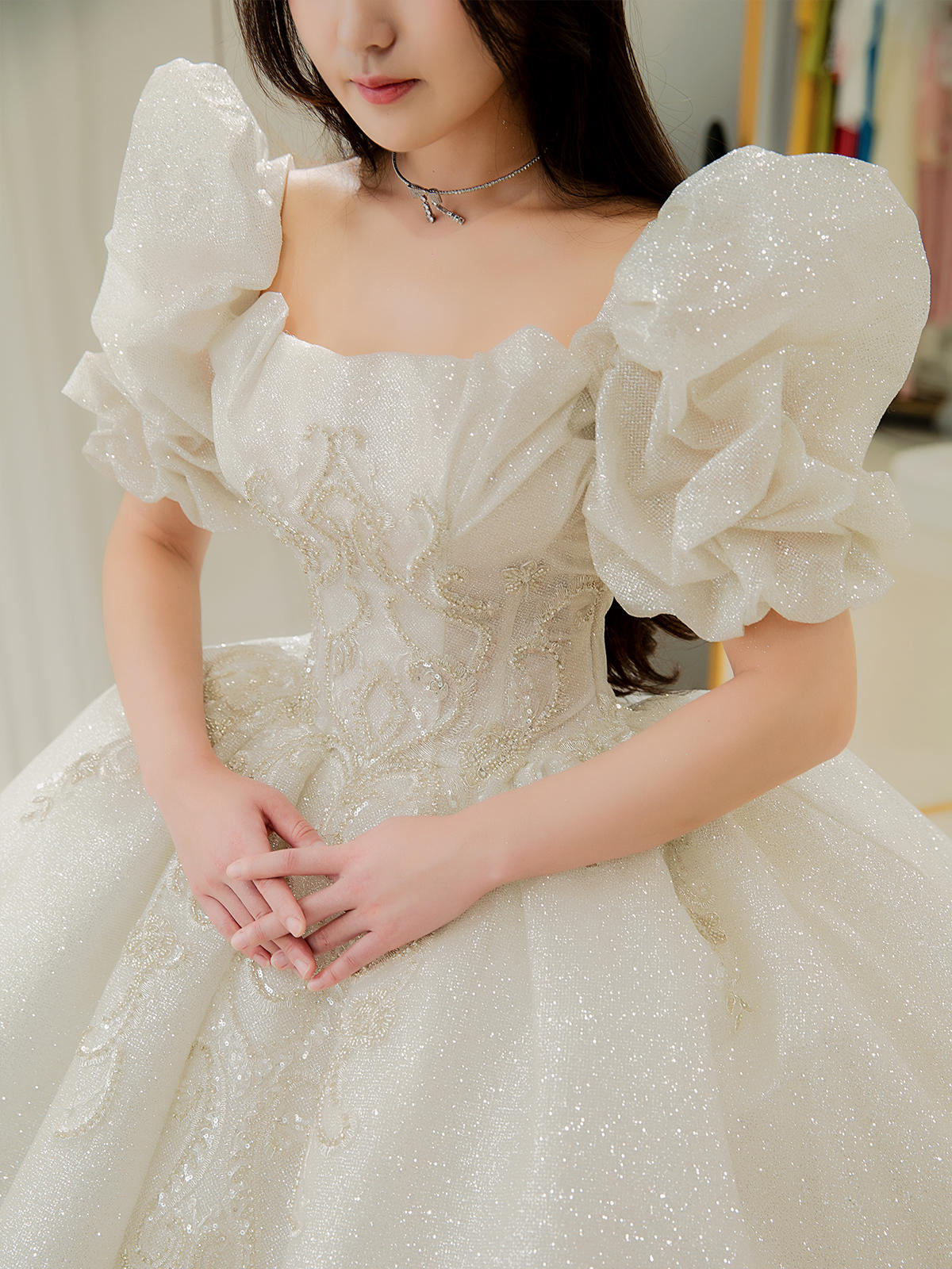 可爱泡泡袖婚纱主纱T-0052