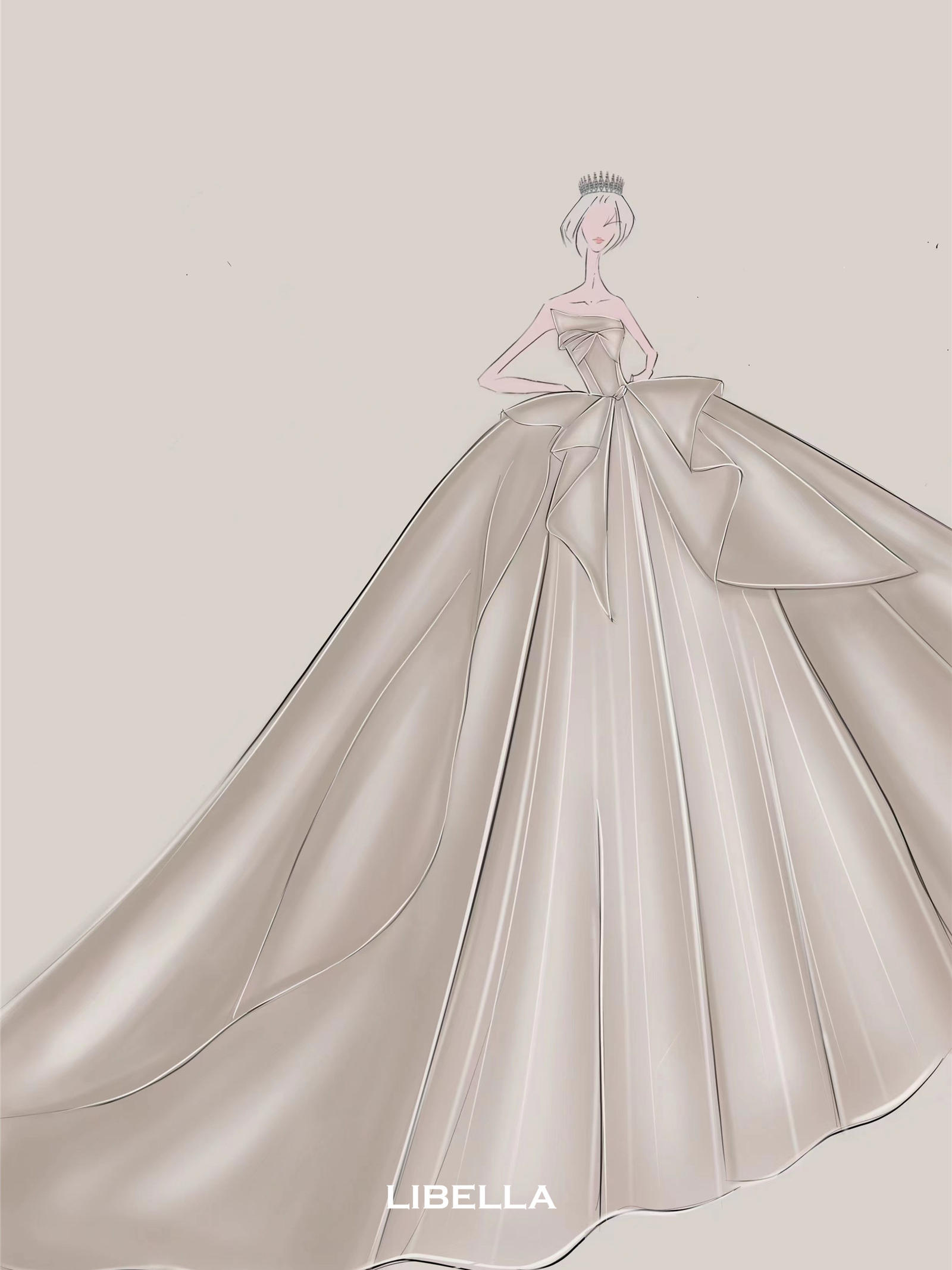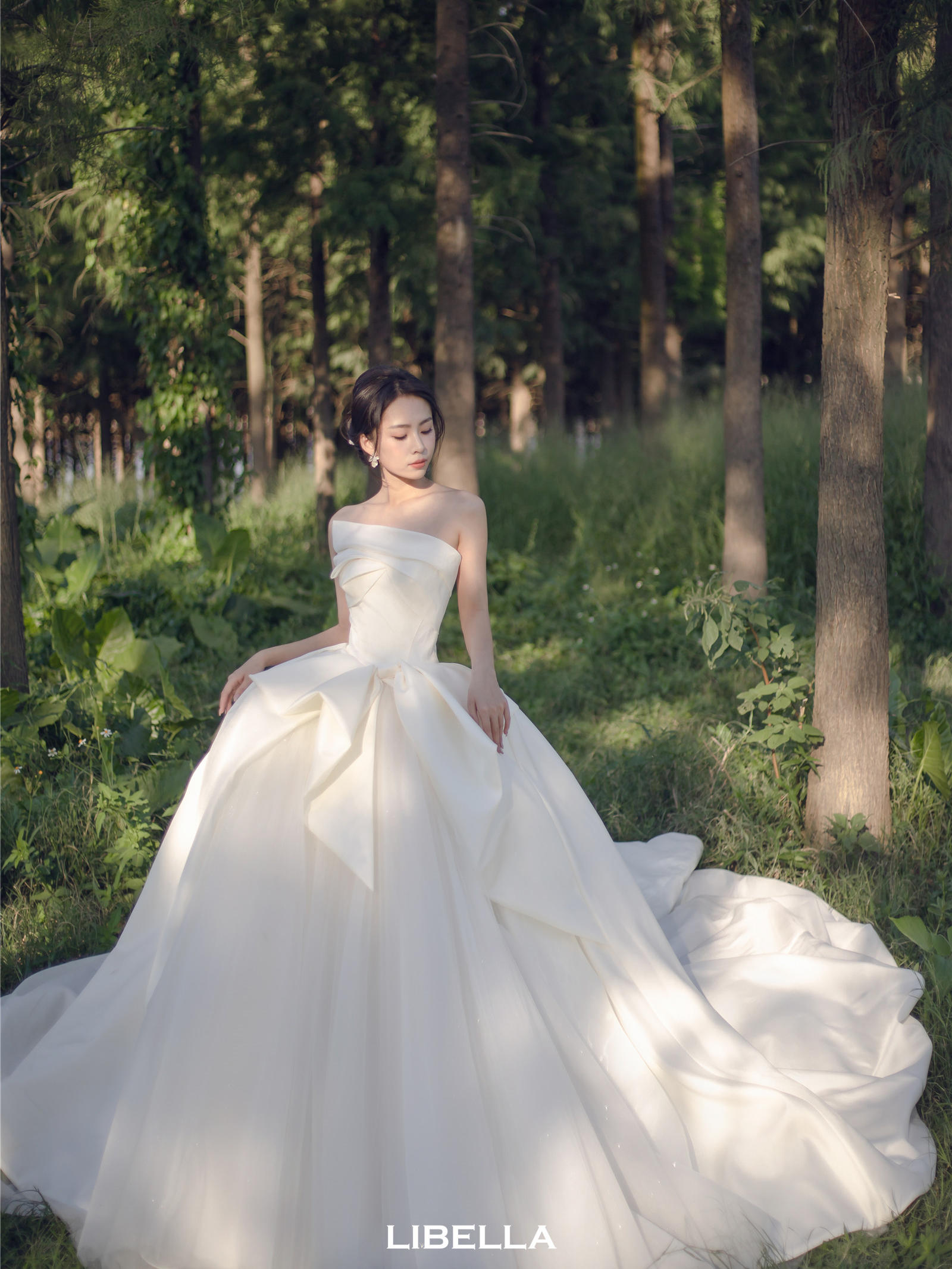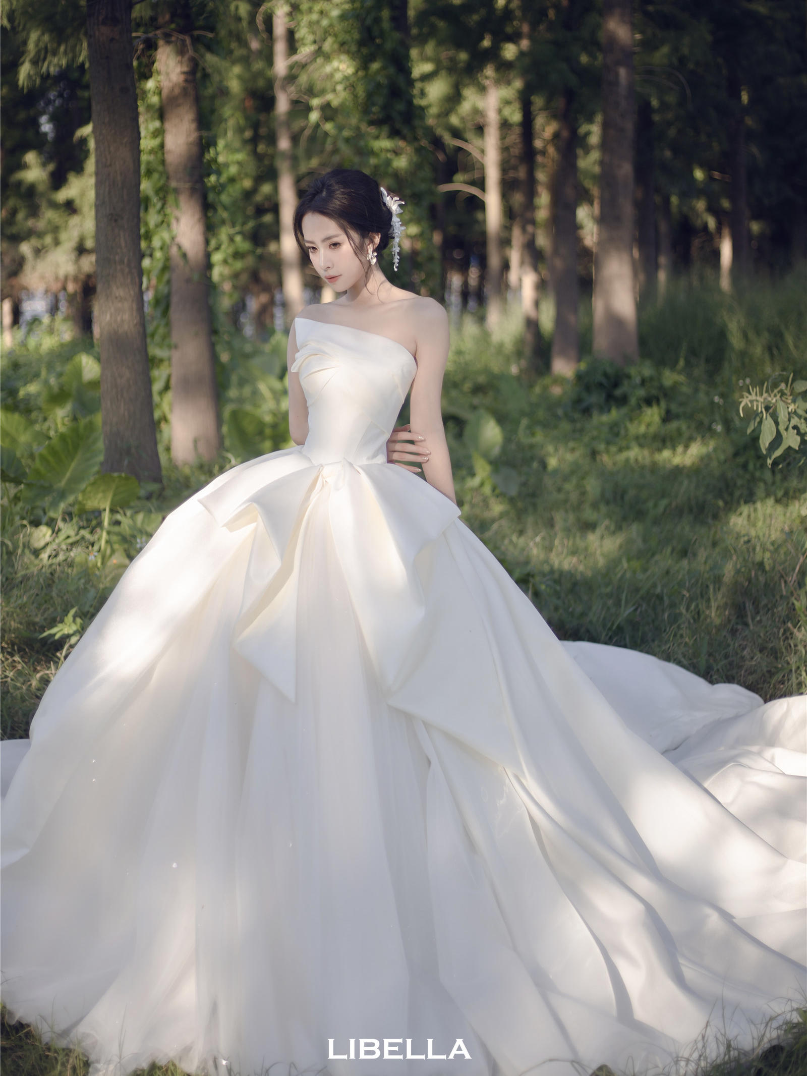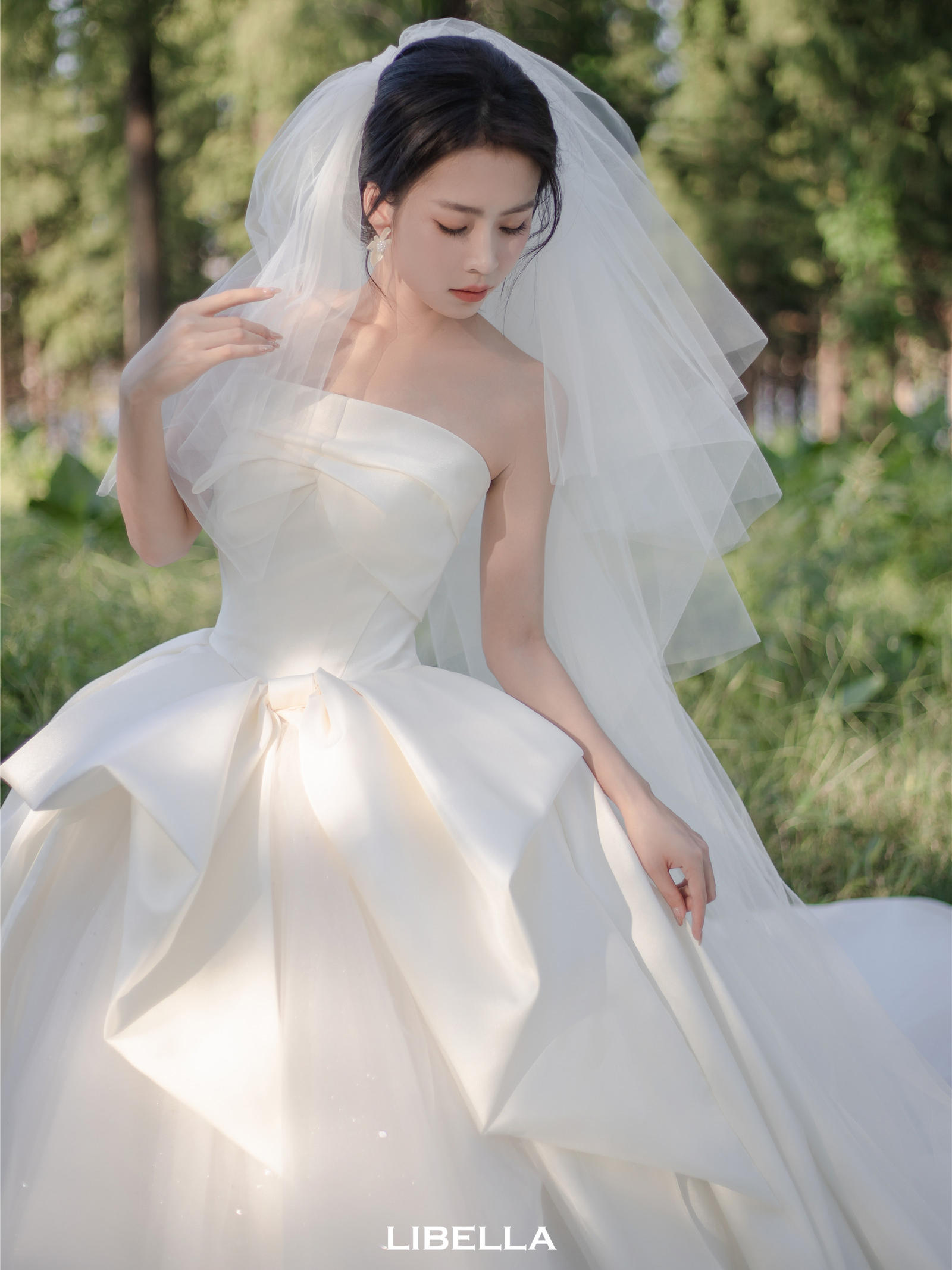 LIBELLA丨一字肩缎面迎宾纱