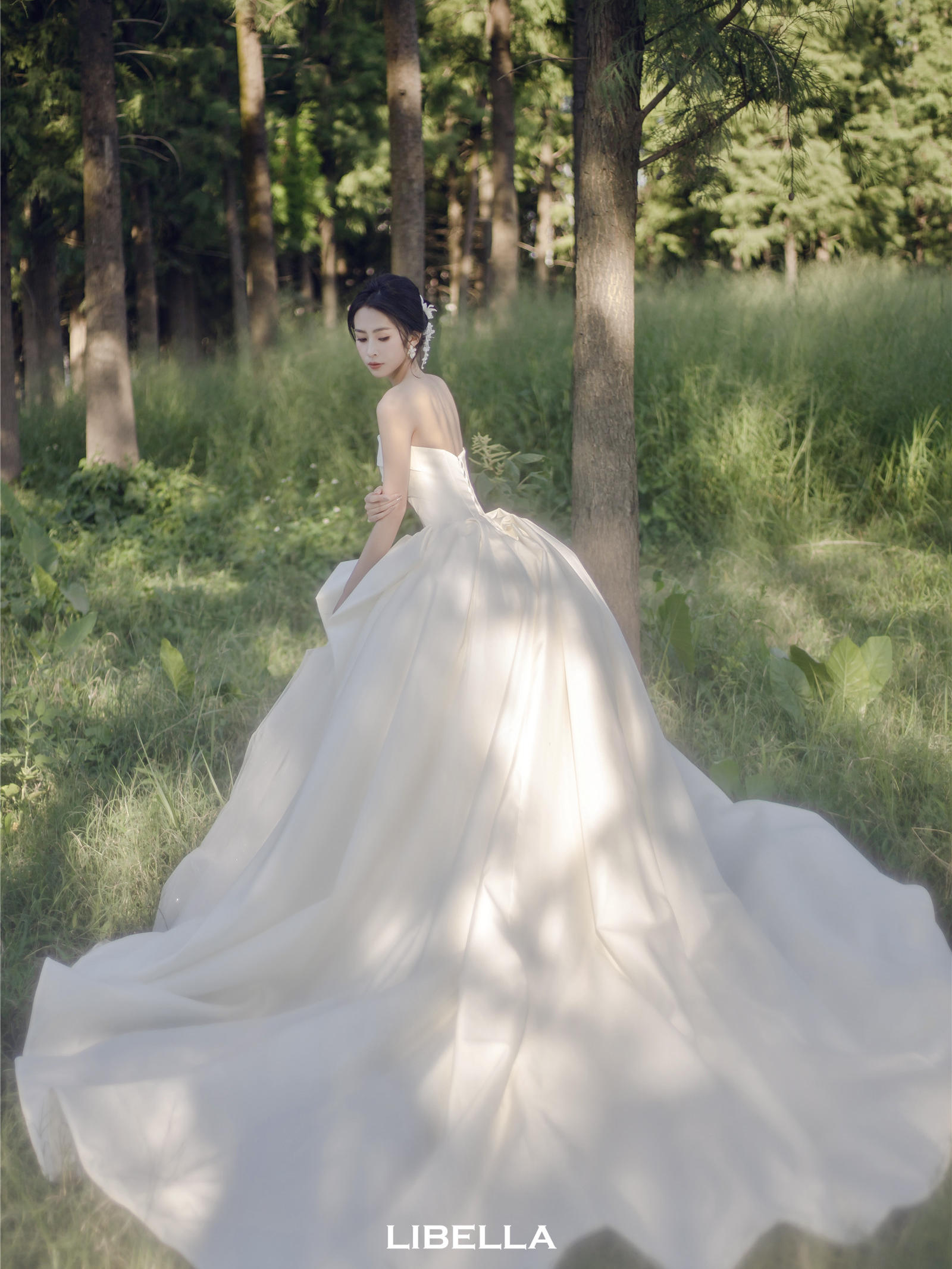 LIBELLA一字肩蕾丝款迎宾纱