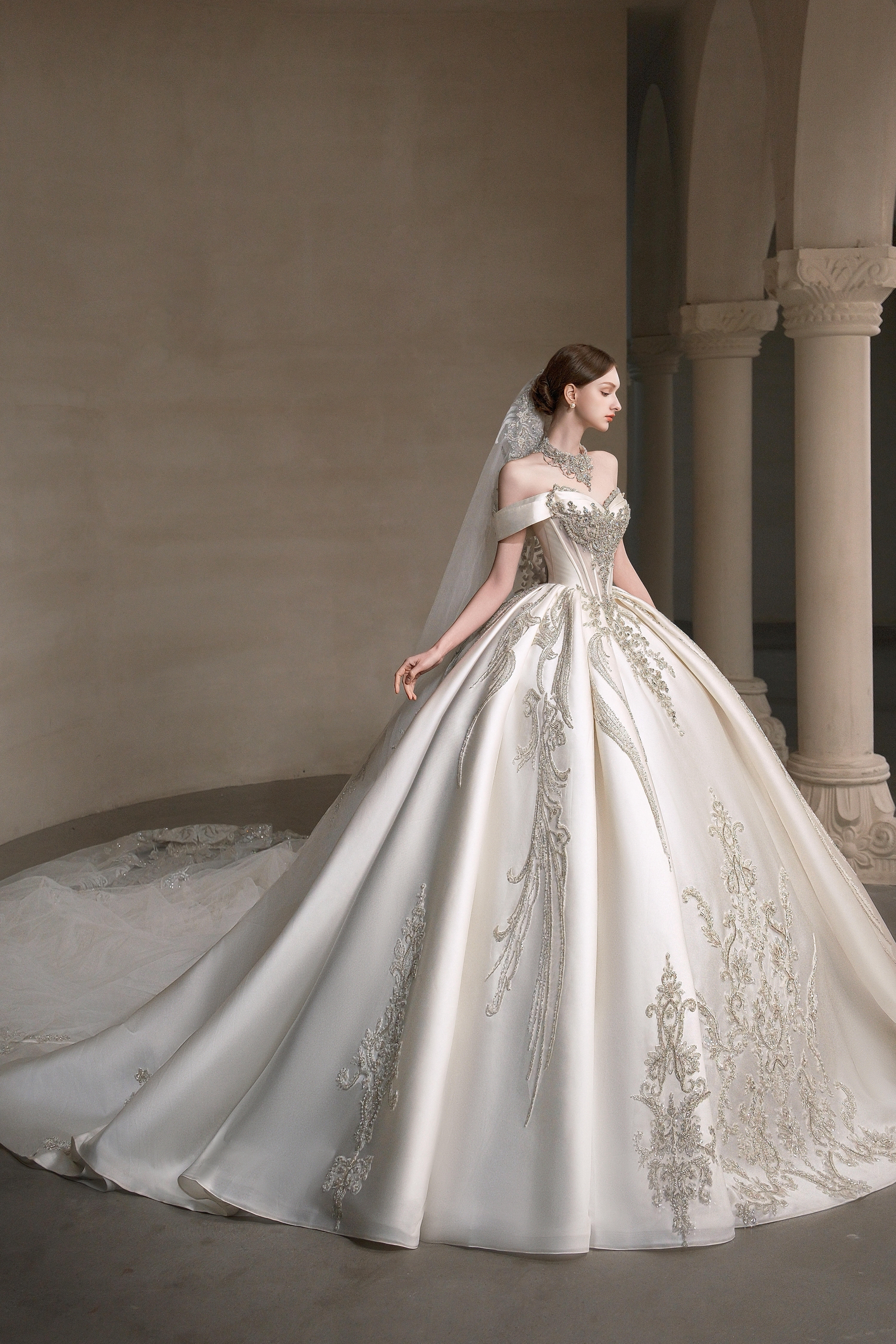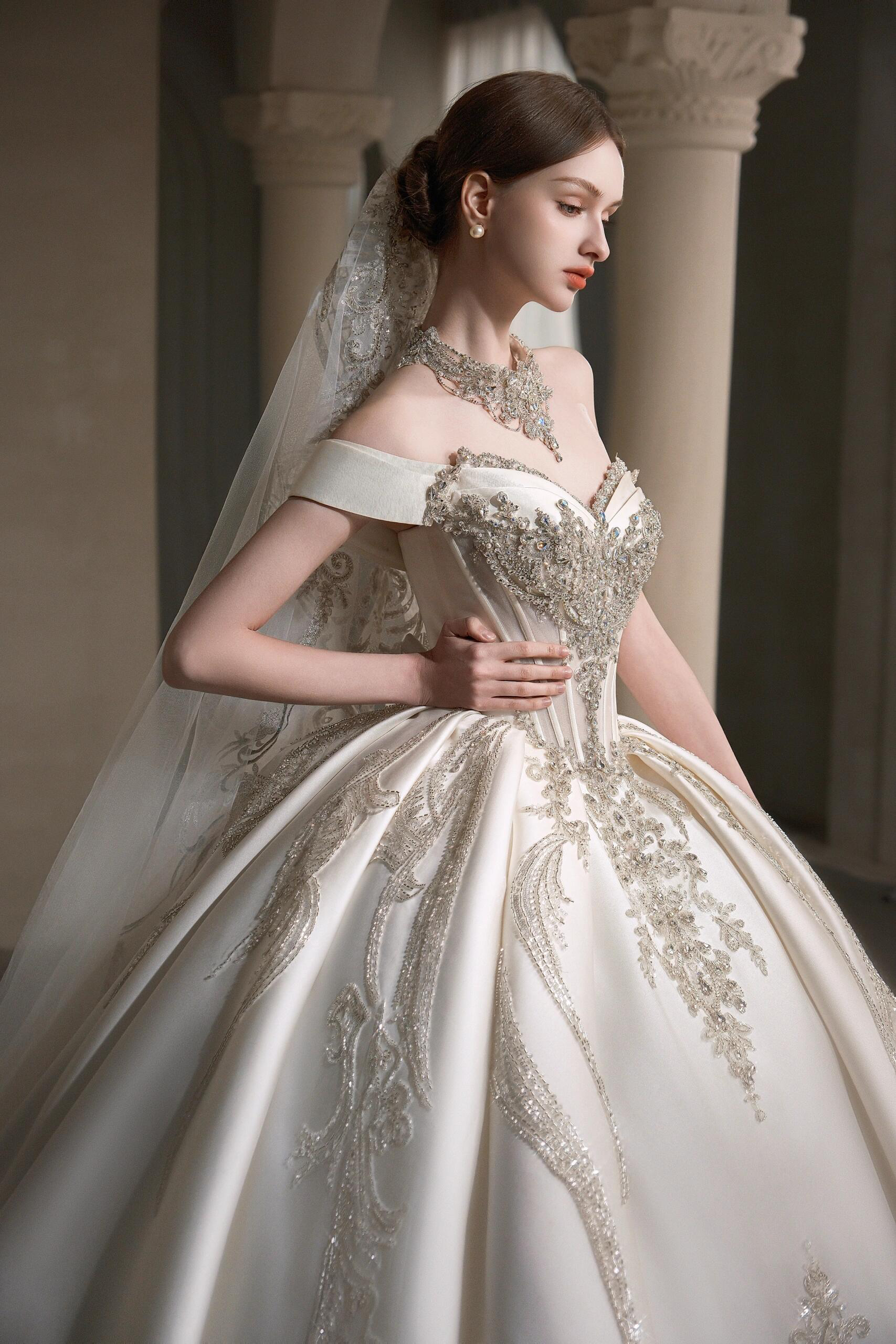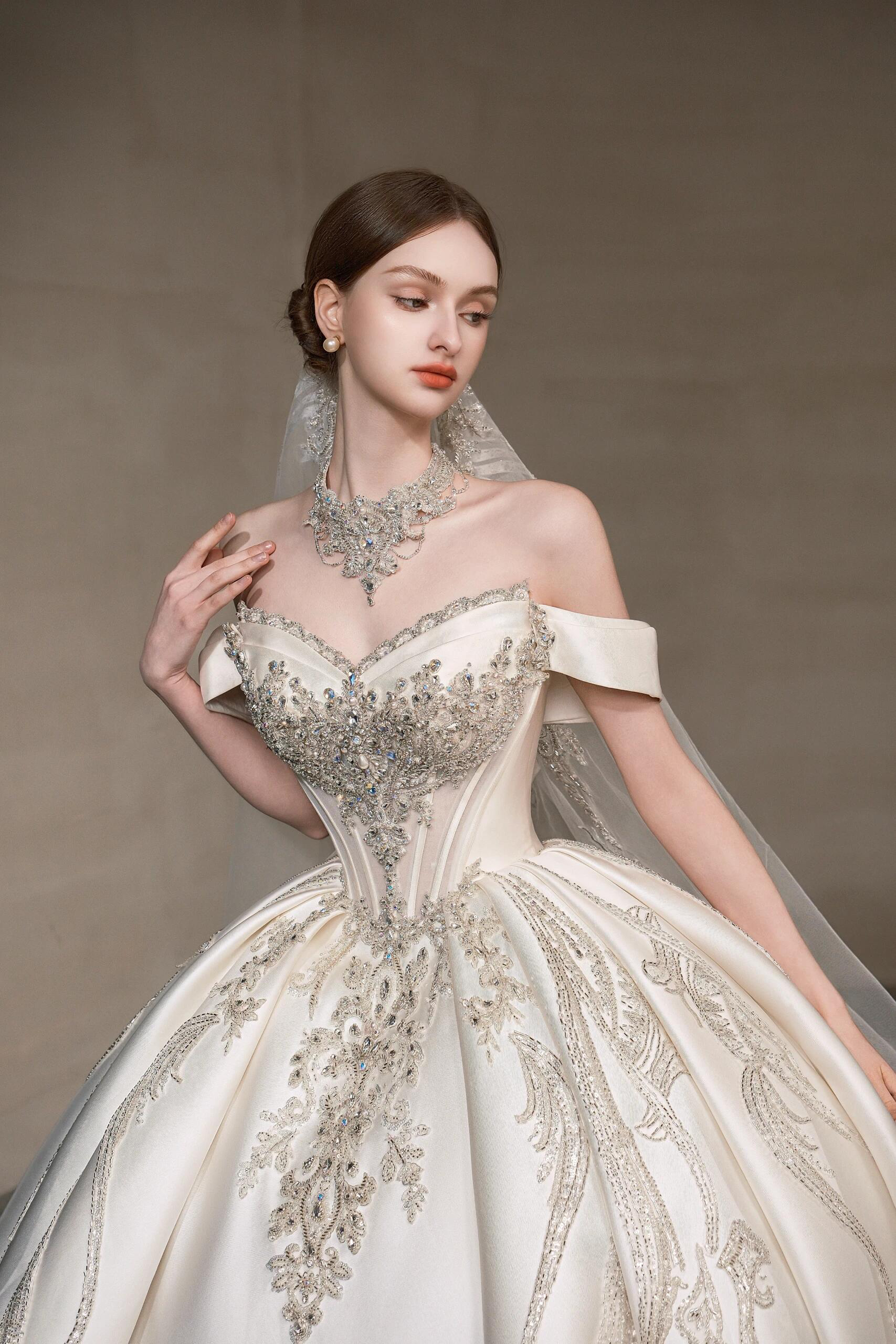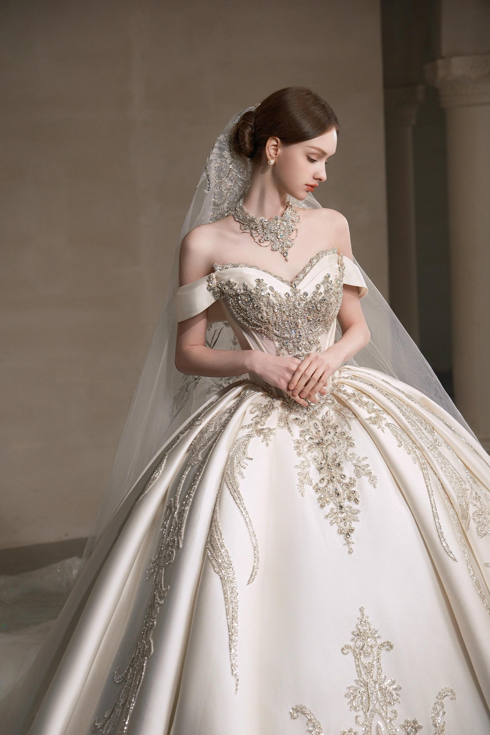 珠光叠影两穿 简约缎面主纱