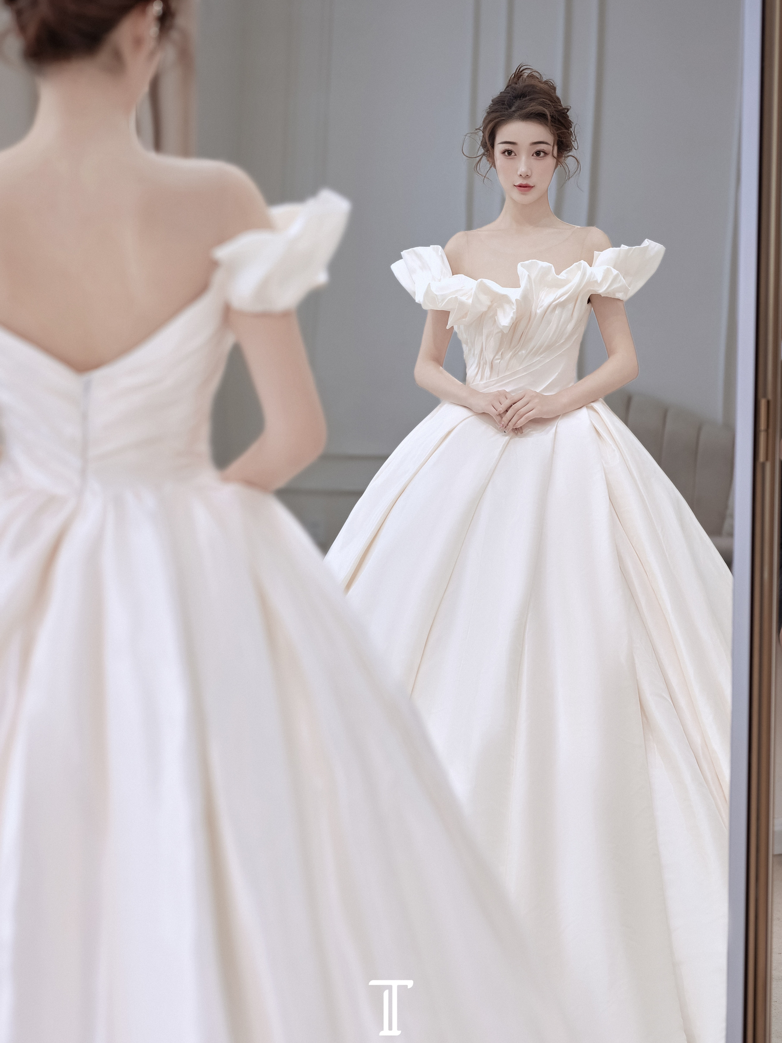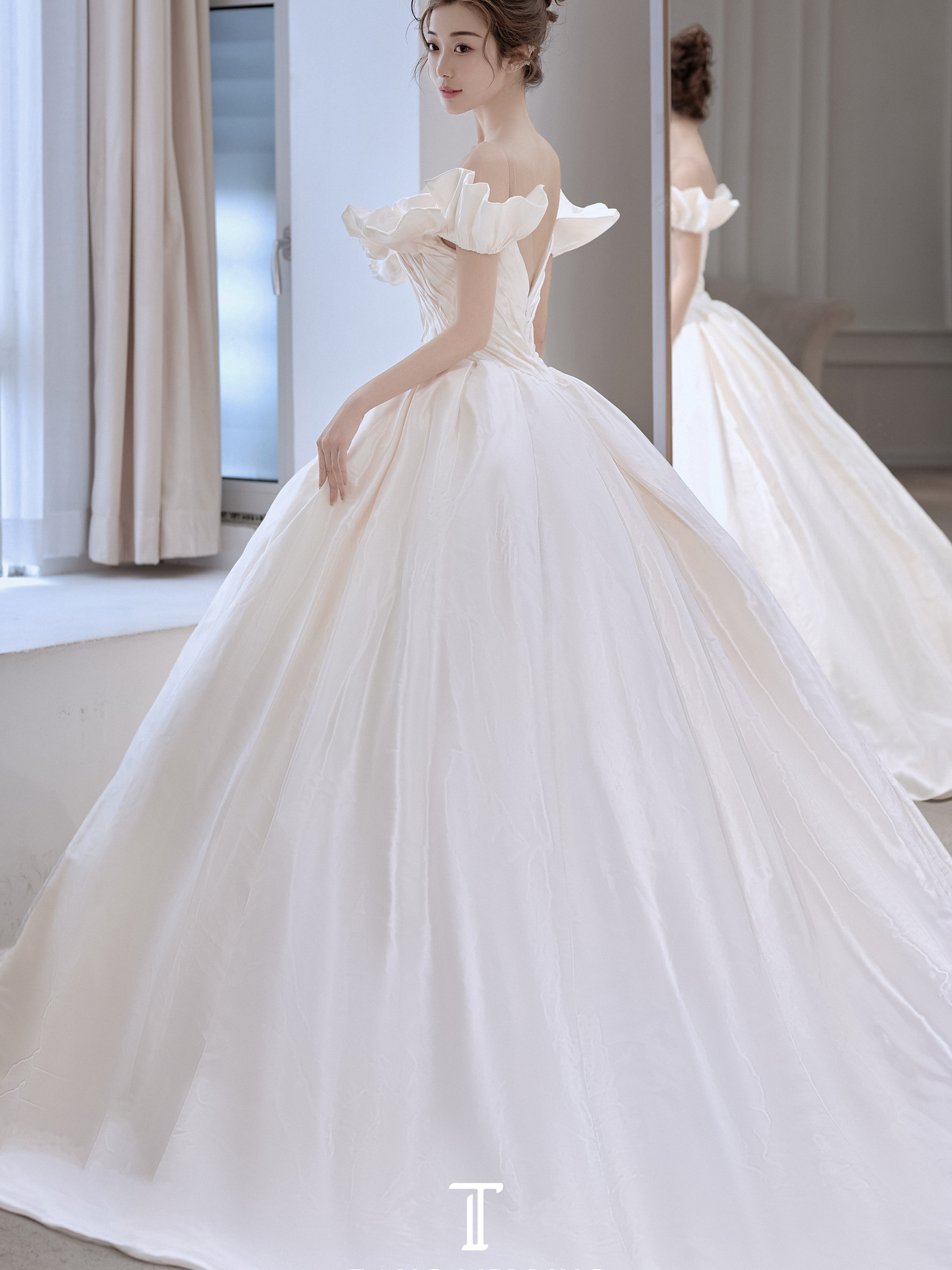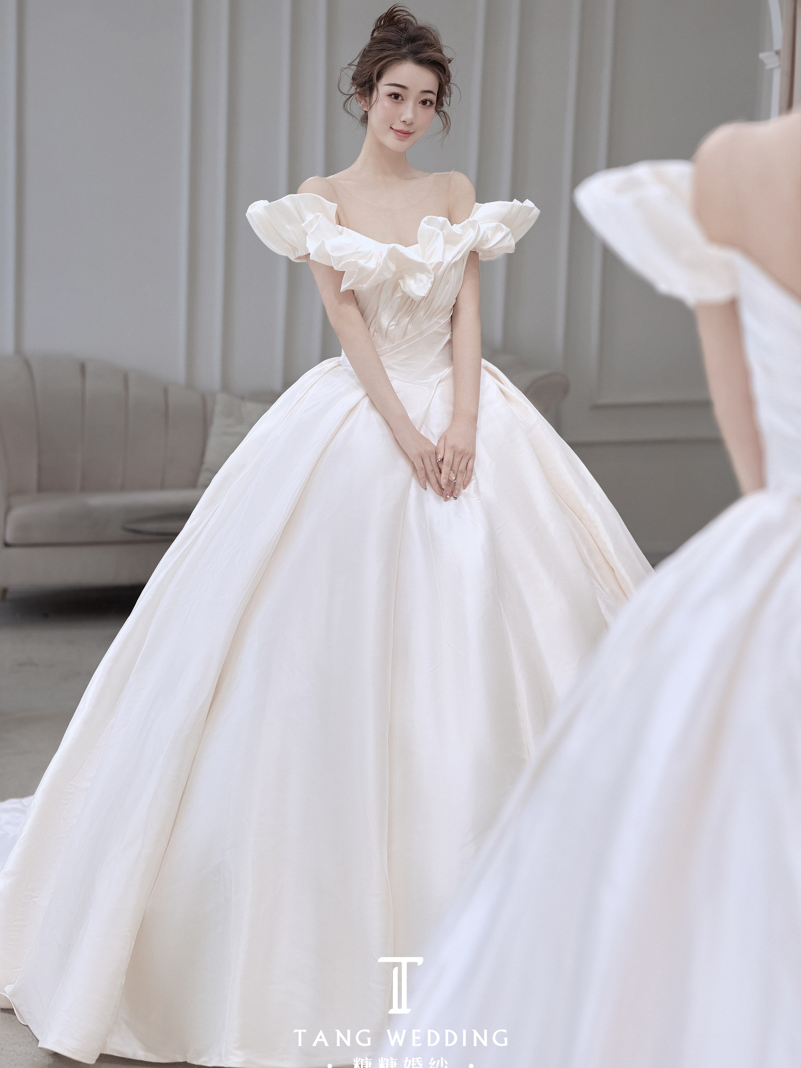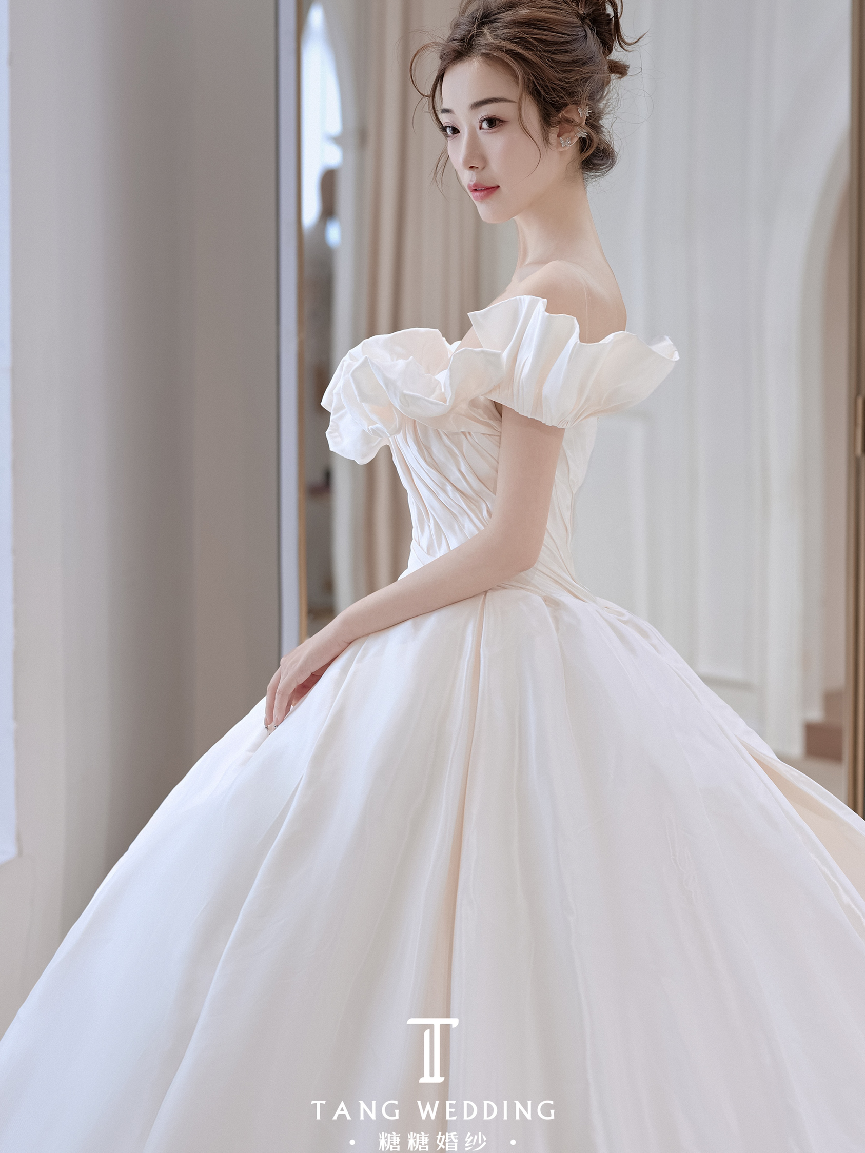 糖糖婚纱 小众高级缎面一字肩主纱