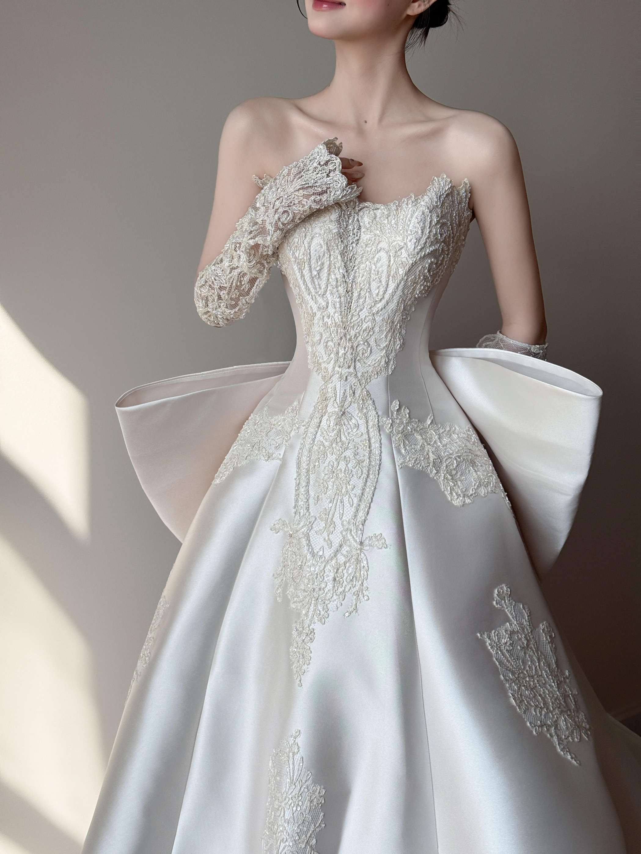 法式立体蕾丝缎面婚纱