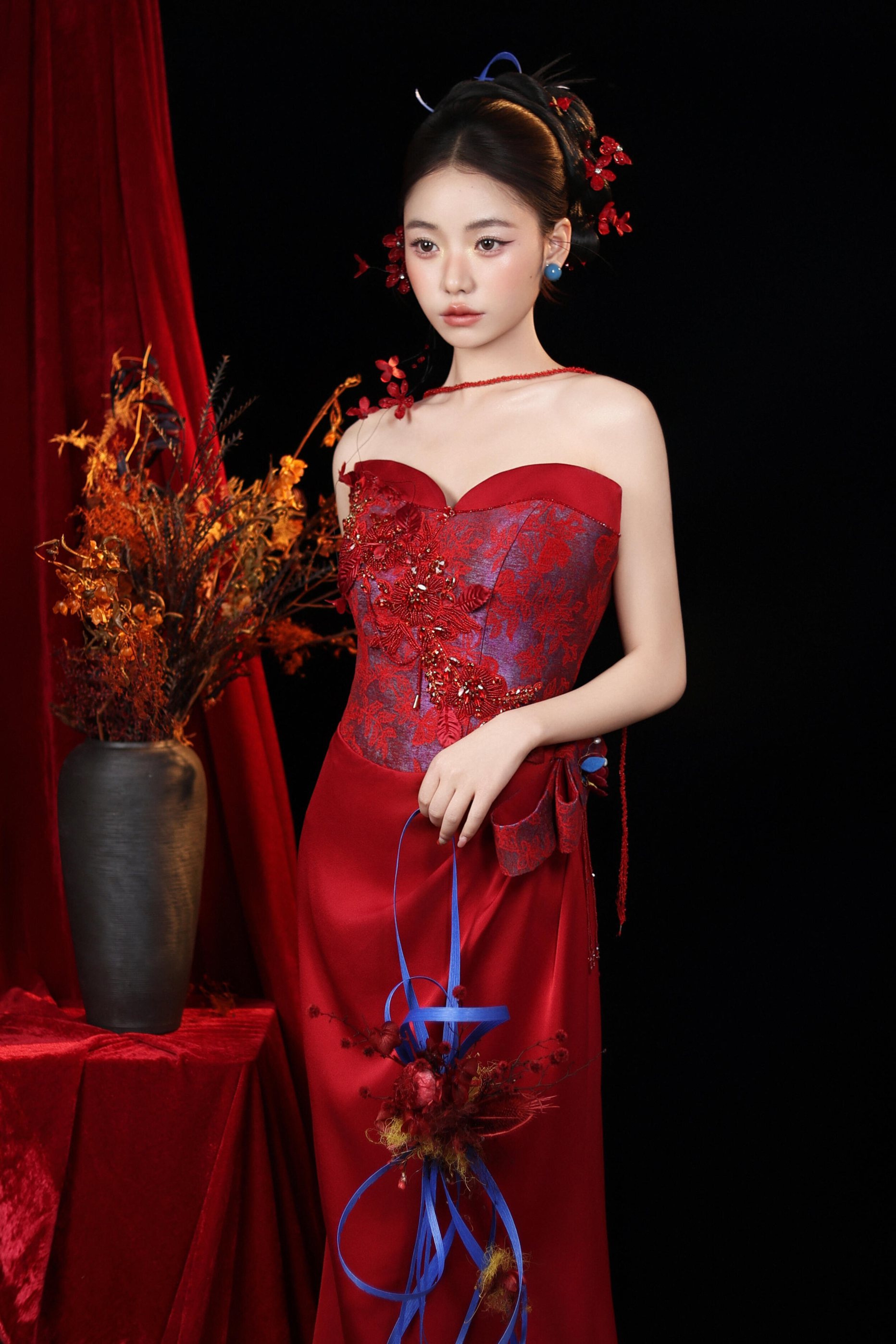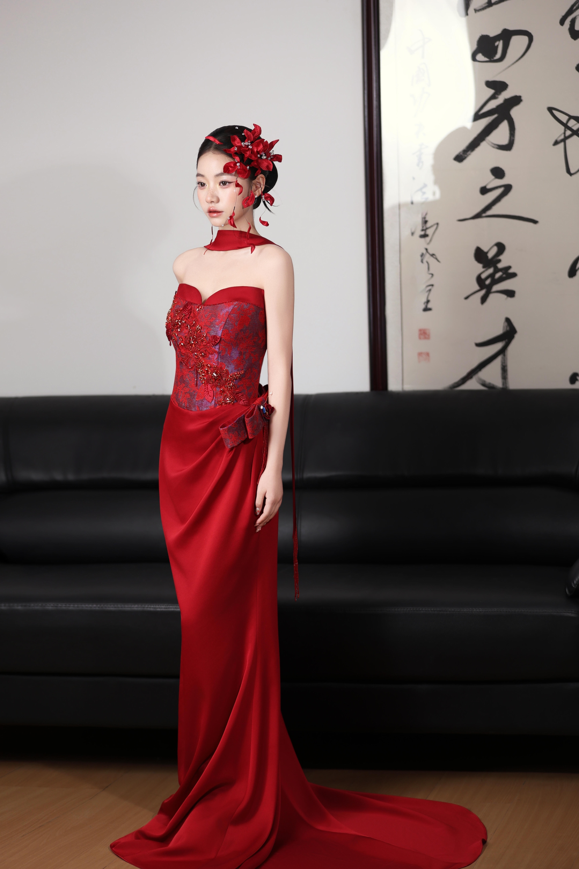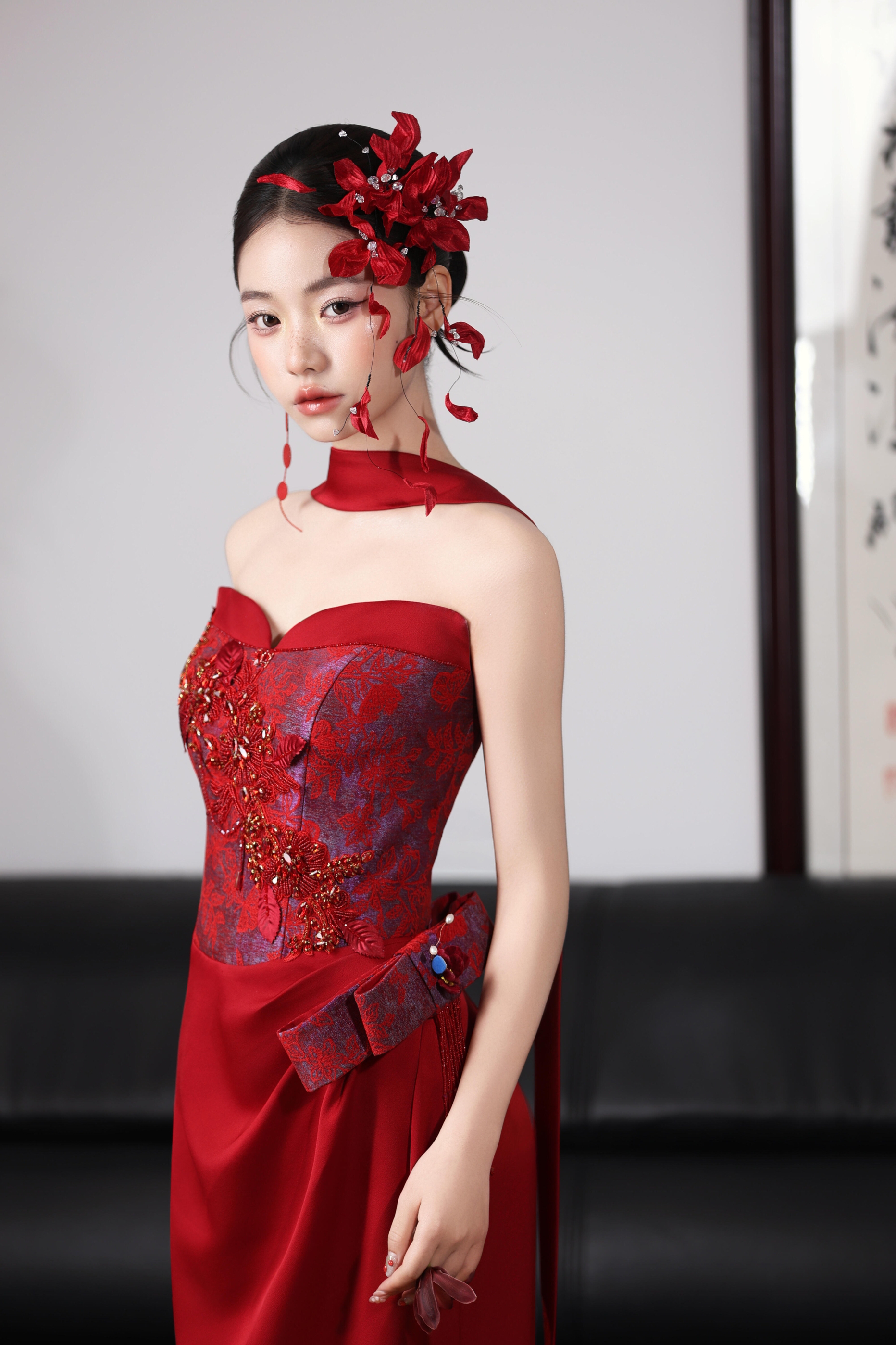 新中式小众红色礼服
