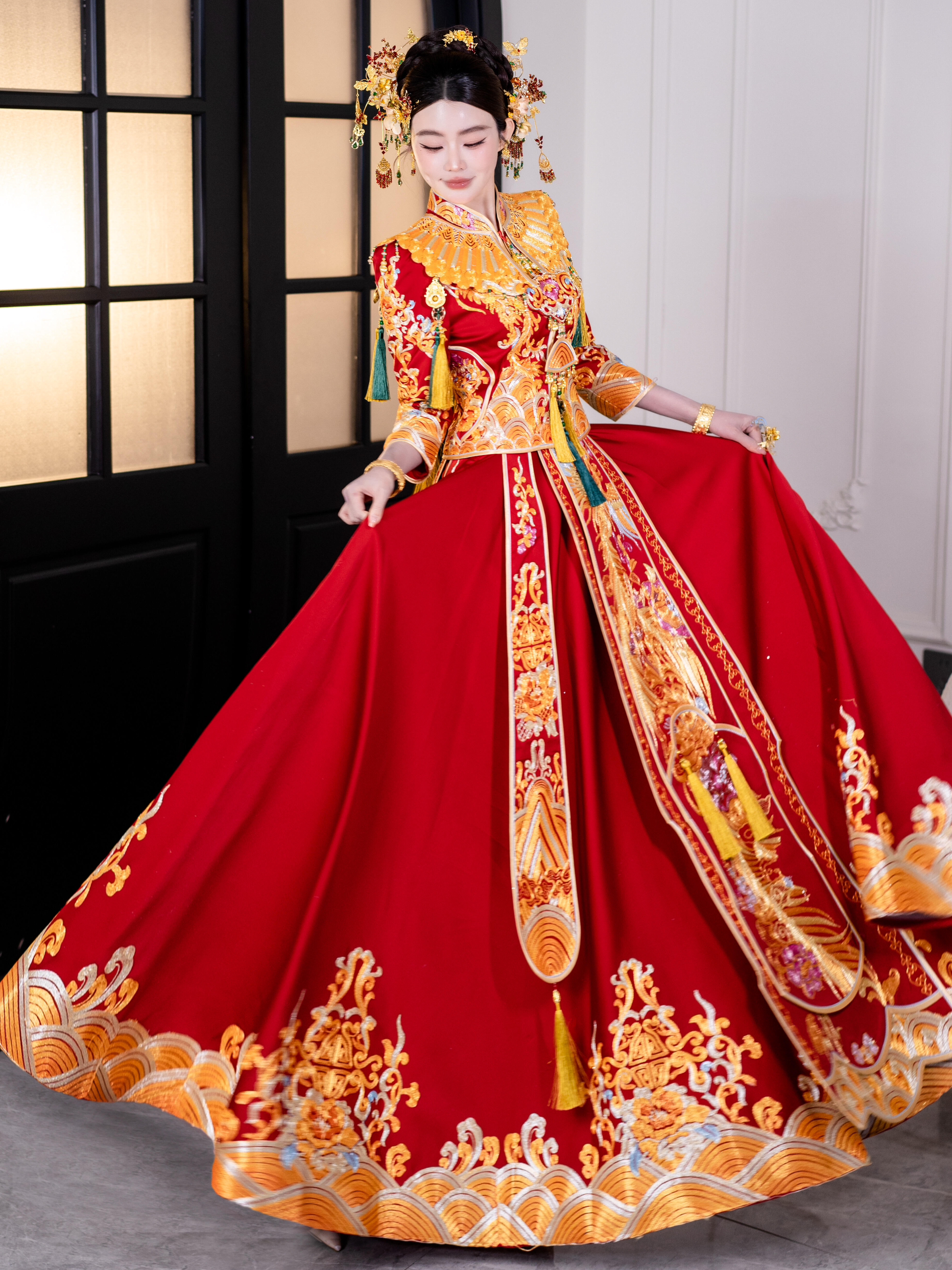 这套刺绣龙凤褂好看极了