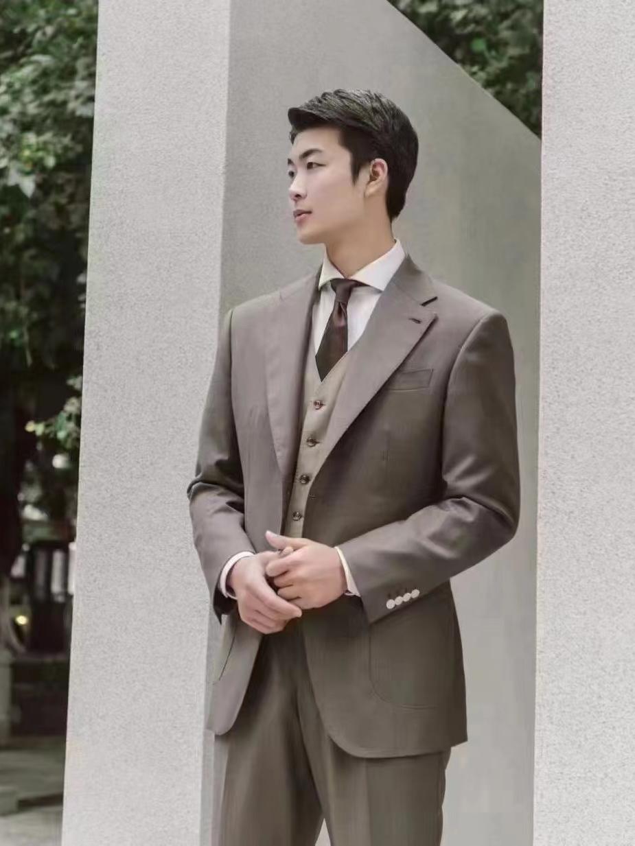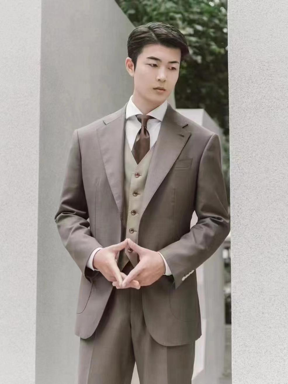 新郎穿搭——深棕色西服三件套