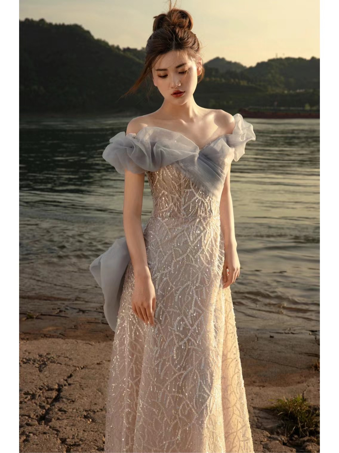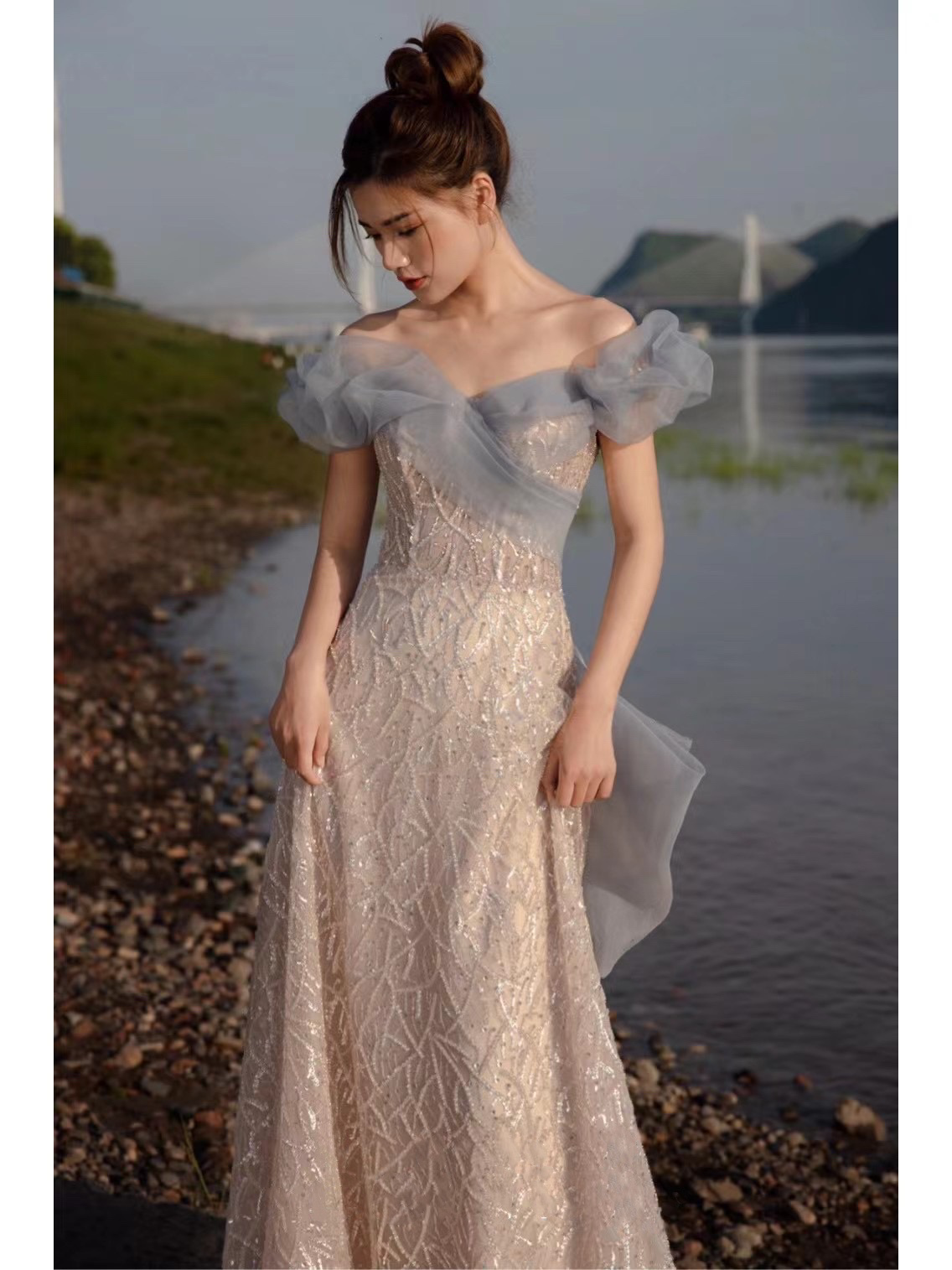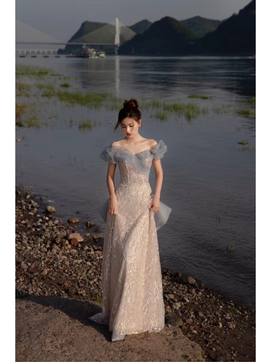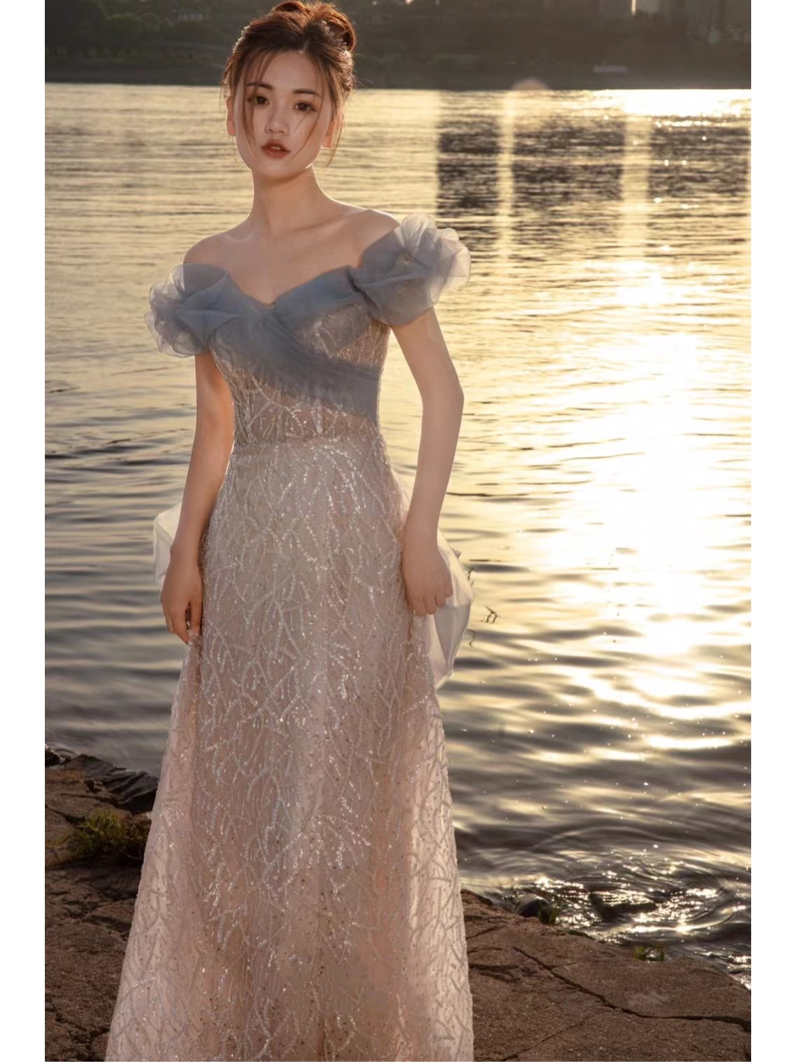 【迷阁】雾霾蓝撞色礼服