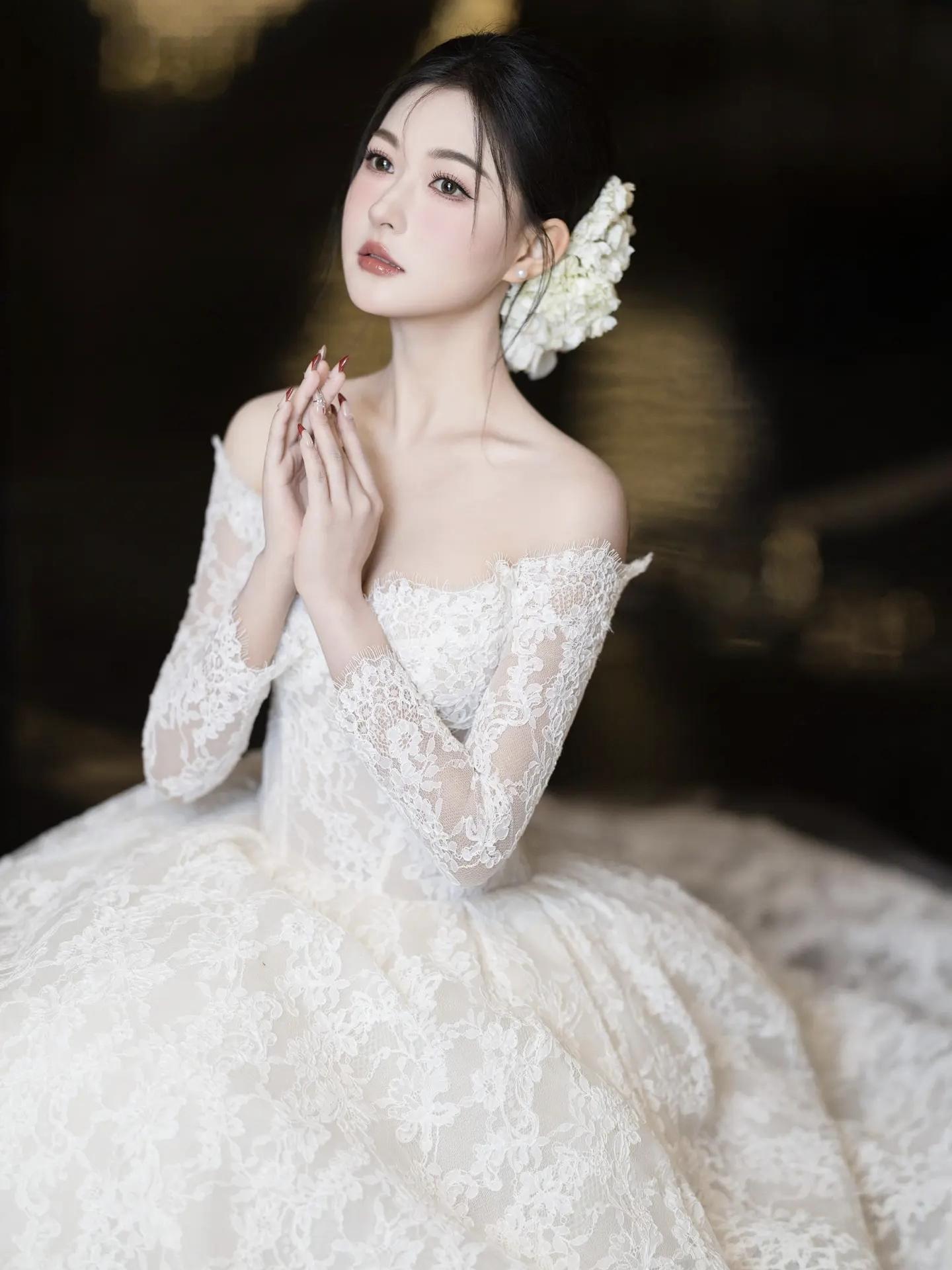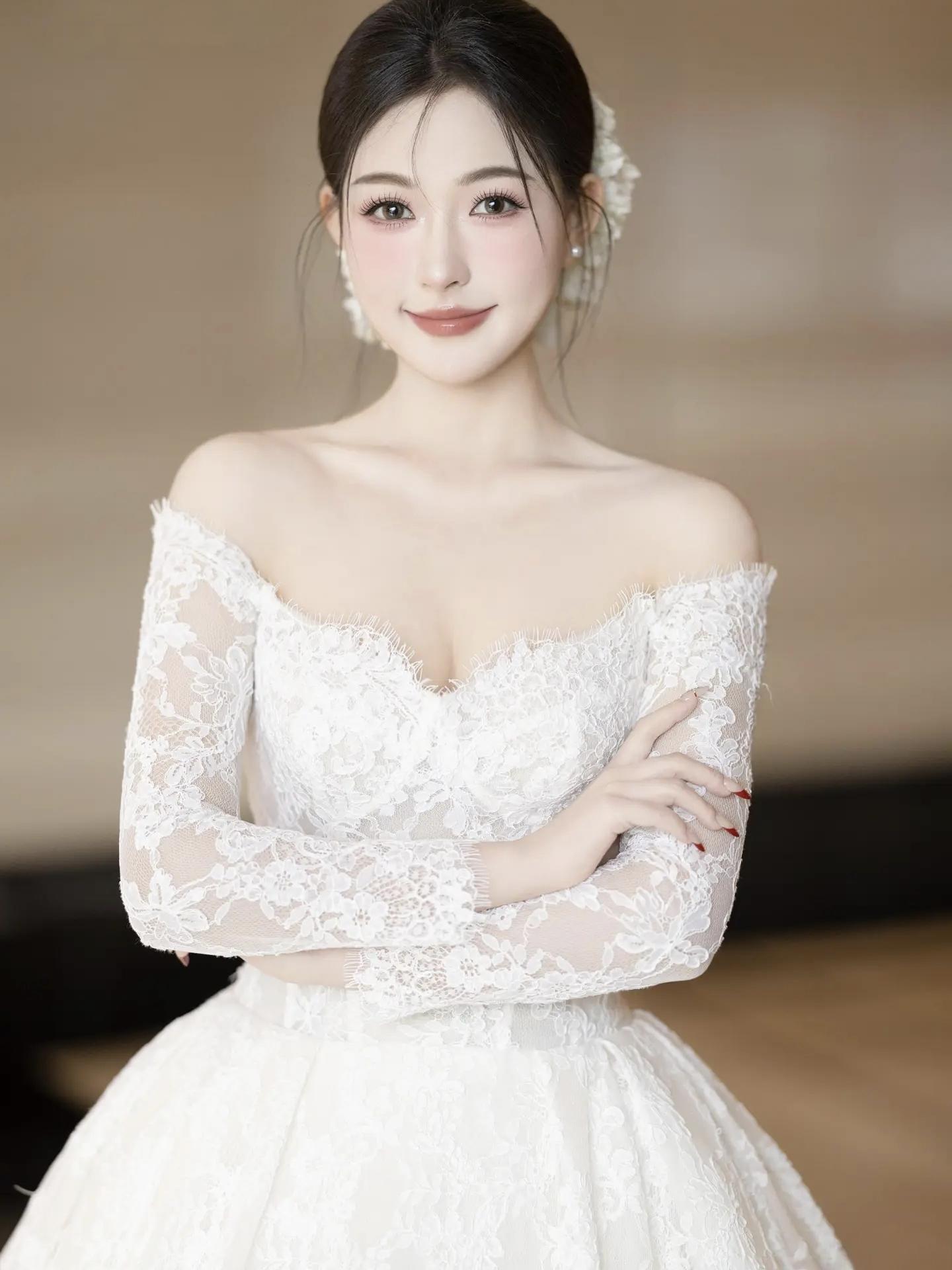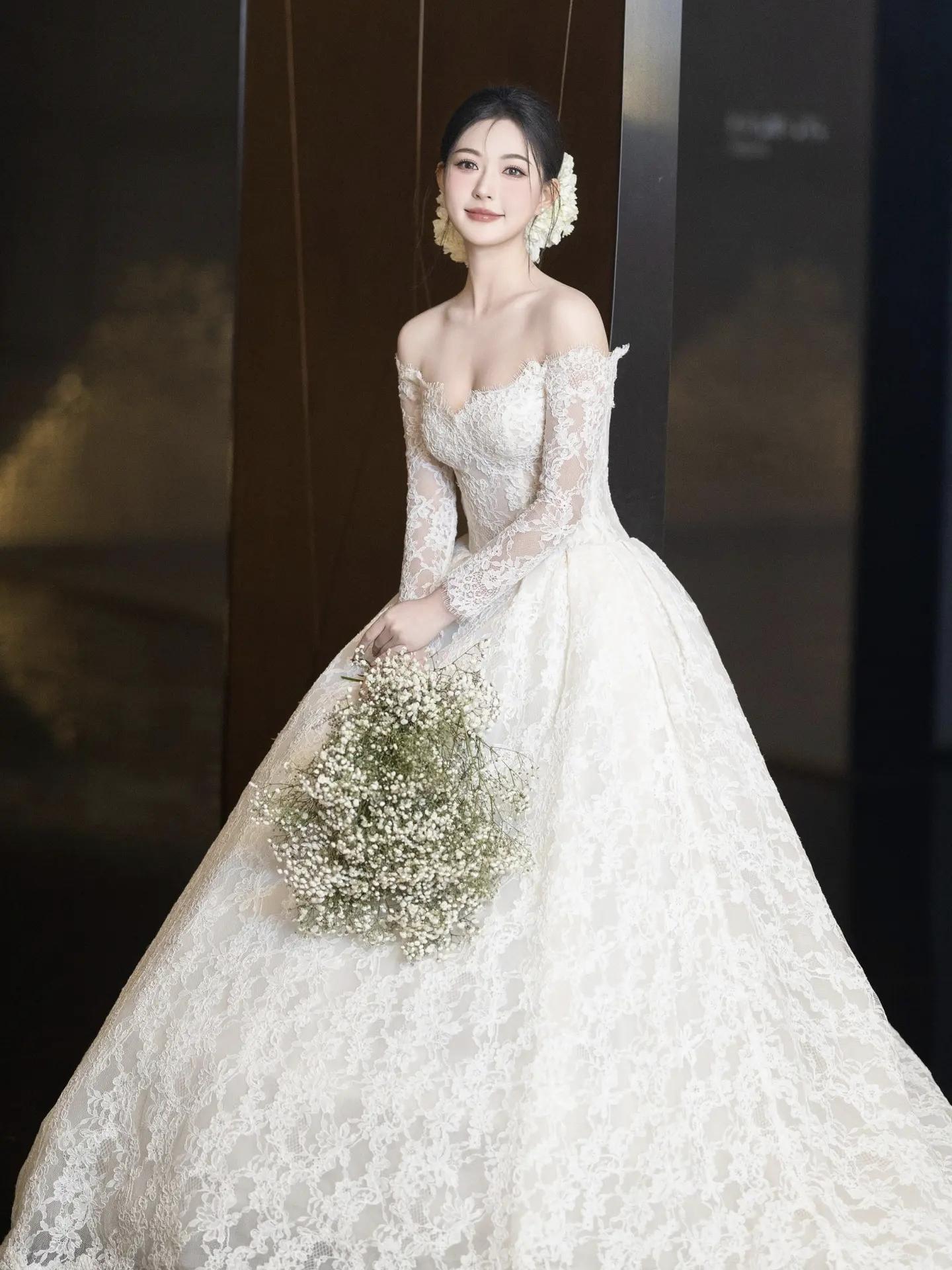 蕾丝长袖婚纱