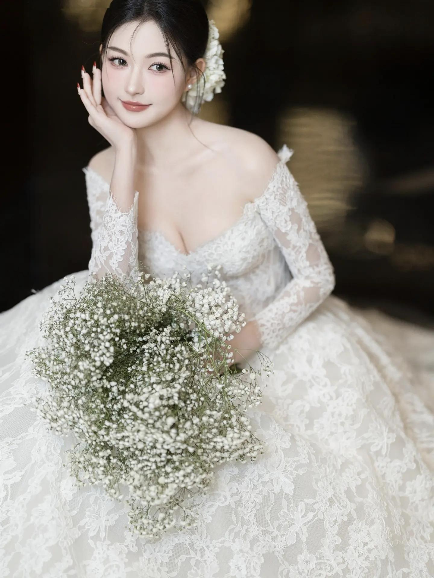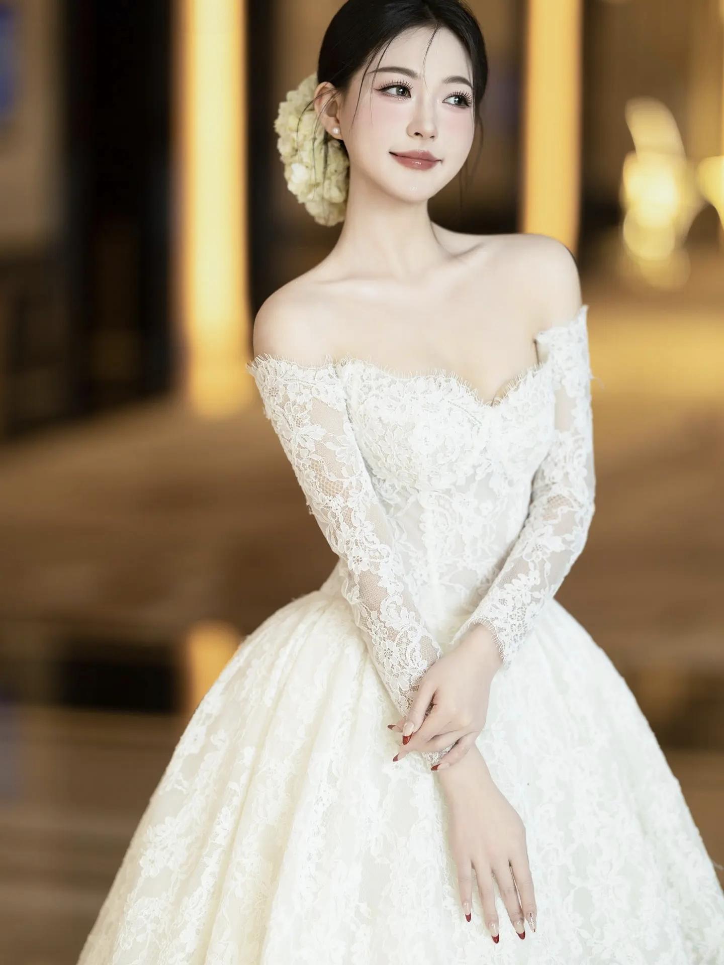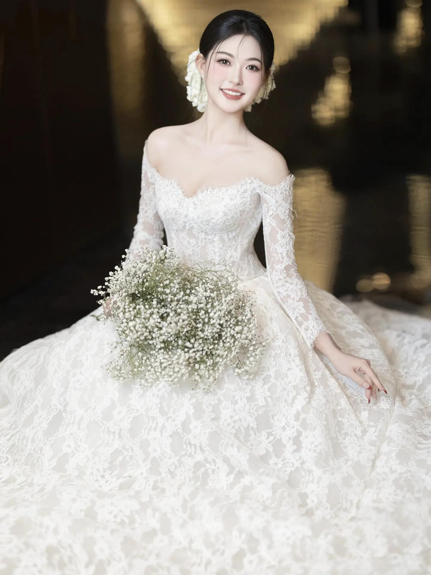 蕾丝长袖婚纱