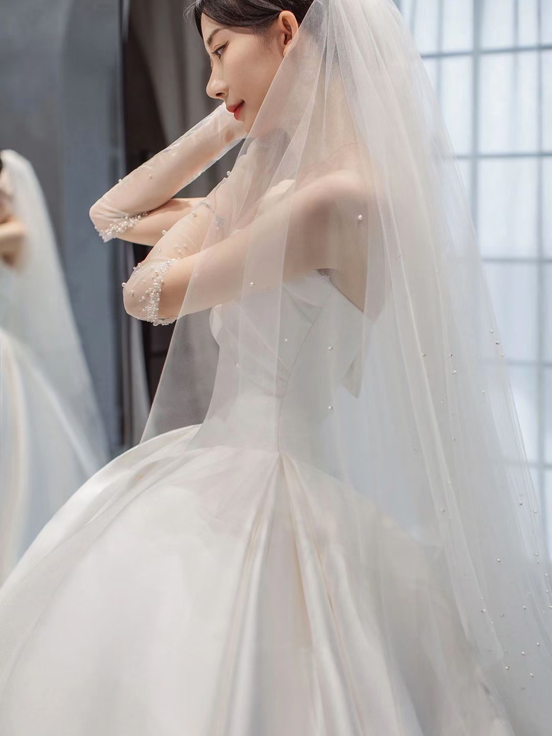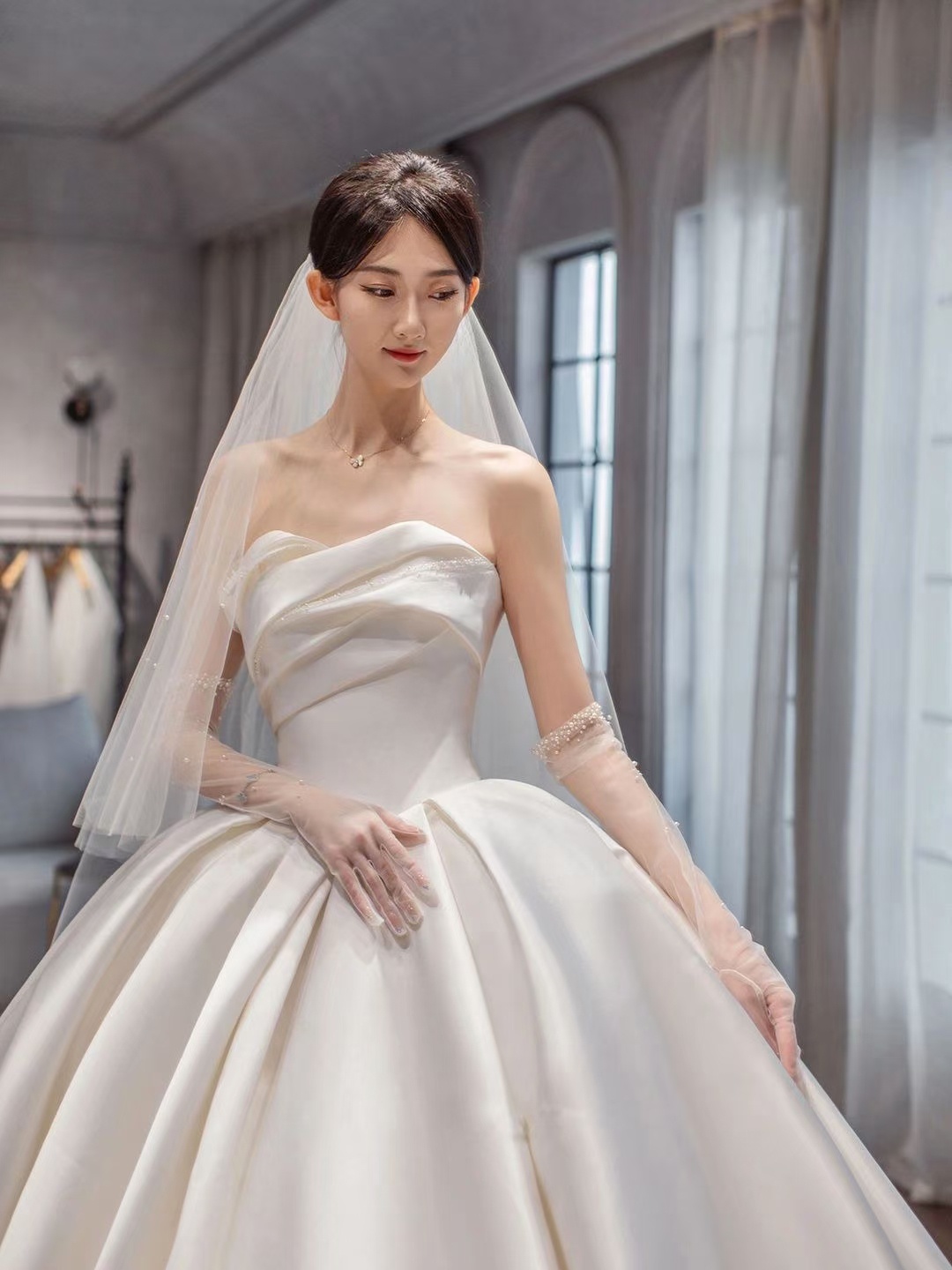 超韩系公主缎面婚纱
