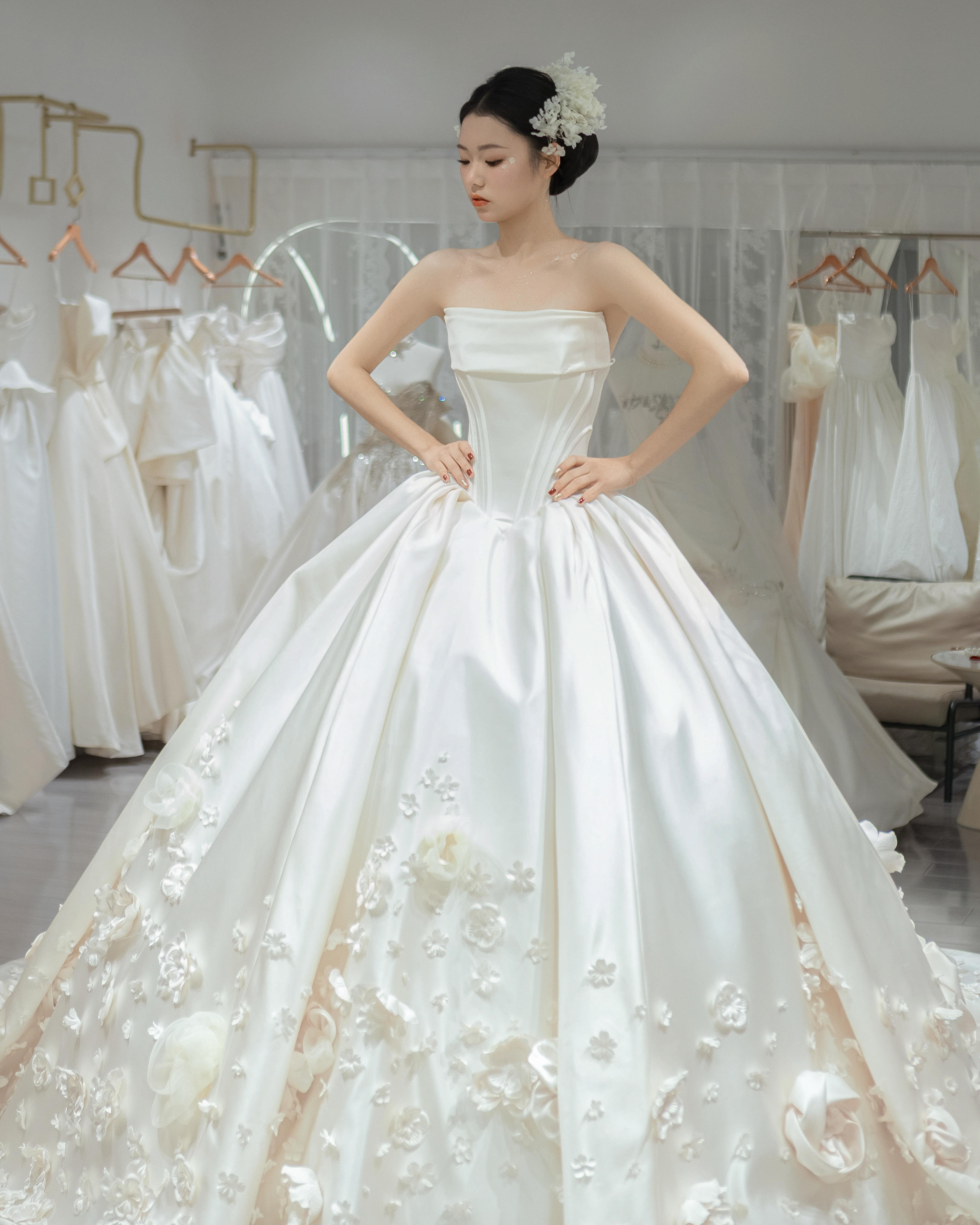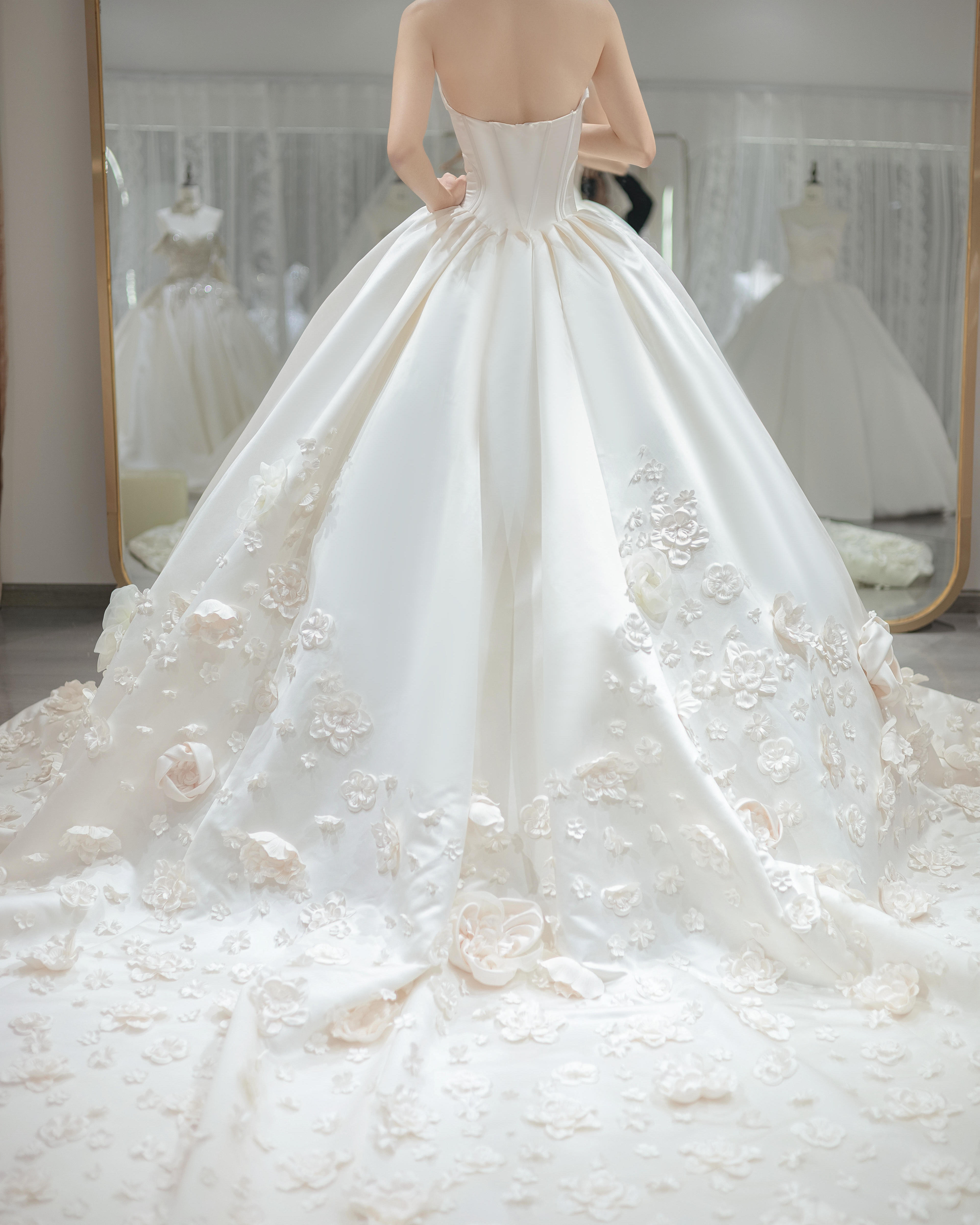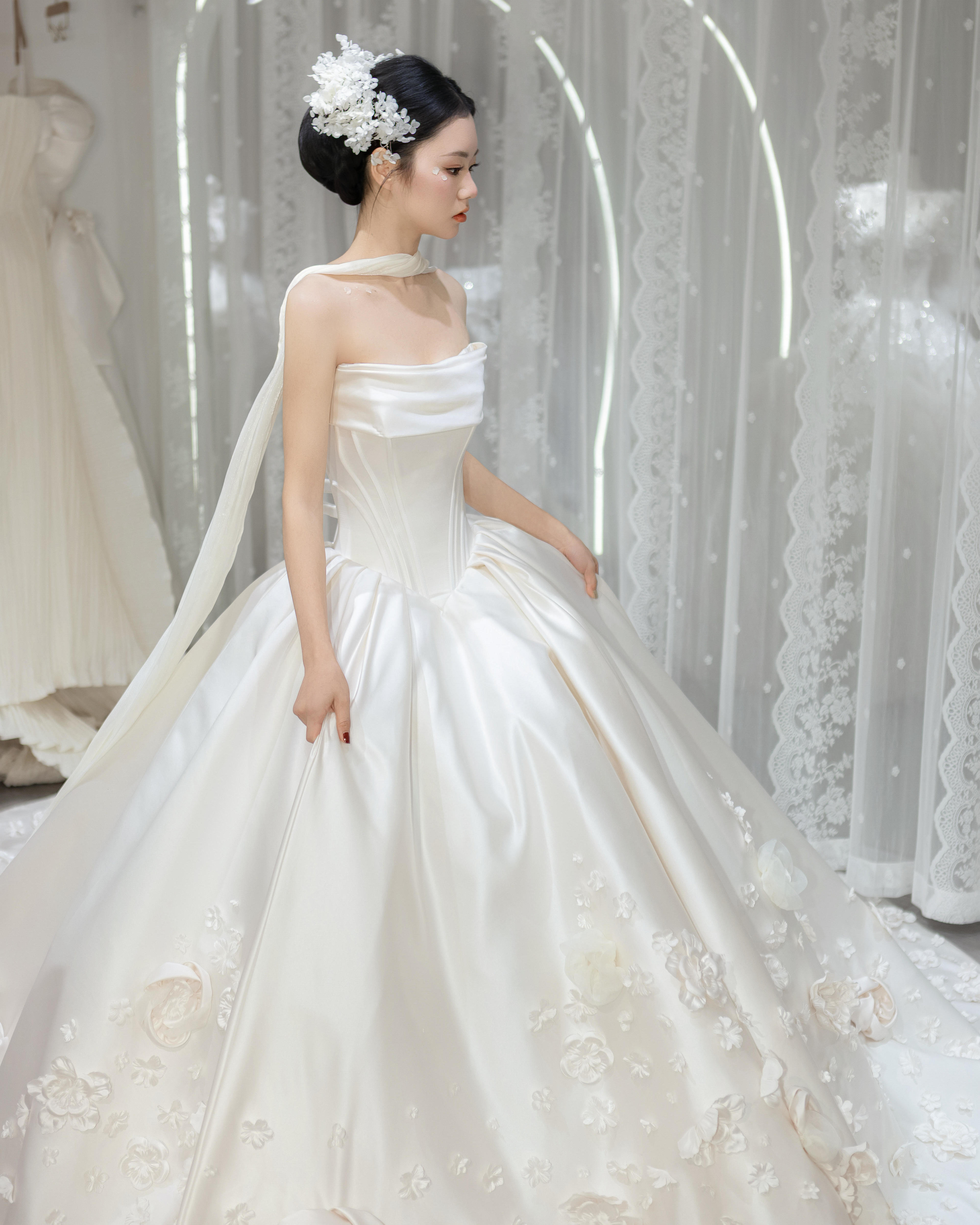 蜜丝新娘-缎面仪式纱(室内实拍)